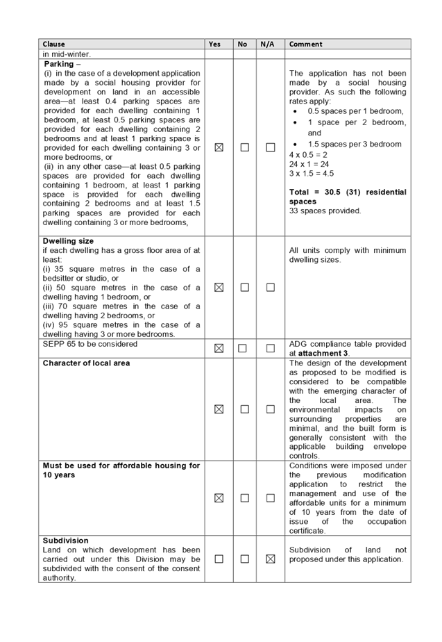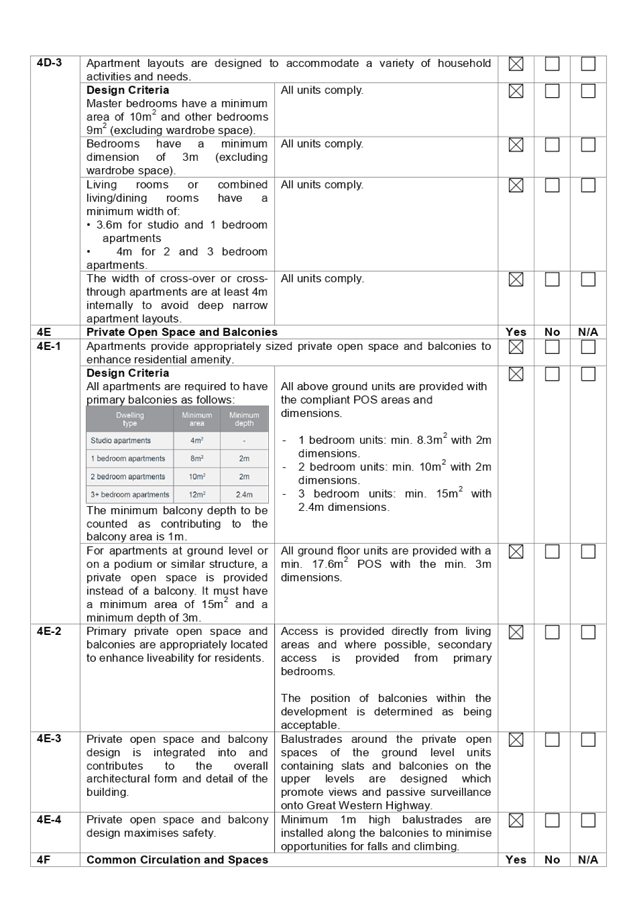 The following table highlights the DCP non-compliances. A comprehensive compliance table is provided at attachment 3.