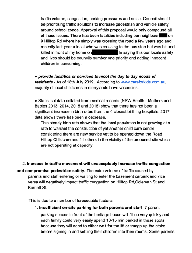 Hilltop Road is generally considered to be an unsuitable location for a child care centre in accordance with the Holroyd Development Control Plan 2013, however, subject to a reduction in the number of children as recommended, Council is satisfied that the centre will perform adequately in terms of traffic and safety impacts. |