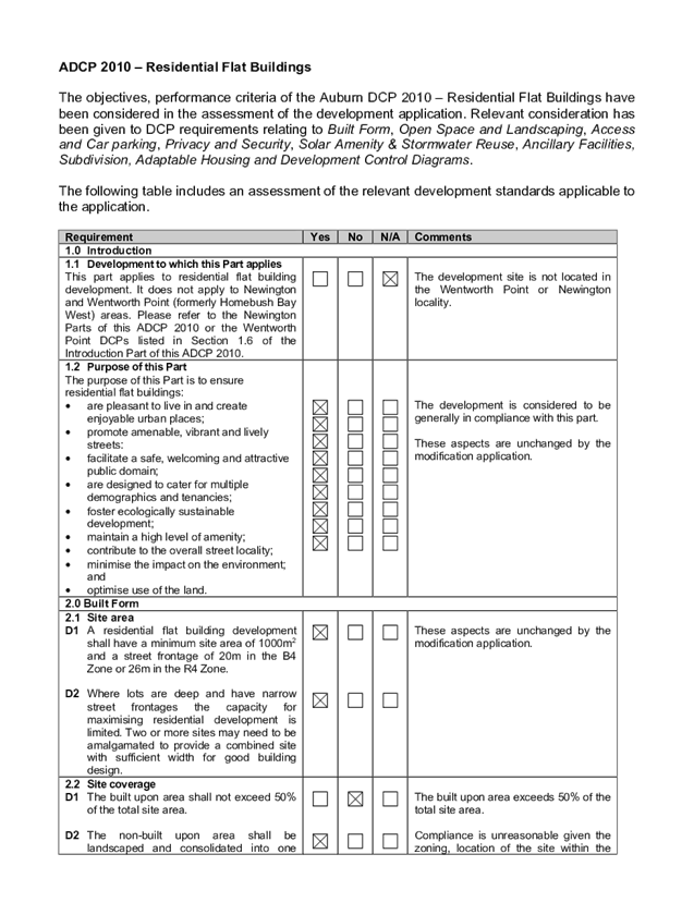 A comprehensive assessment and compliance table is provided at Attachment 2 which demonstrates the proposal’s compliance (as amended) with the relevant planning standards that are applicable to the site.