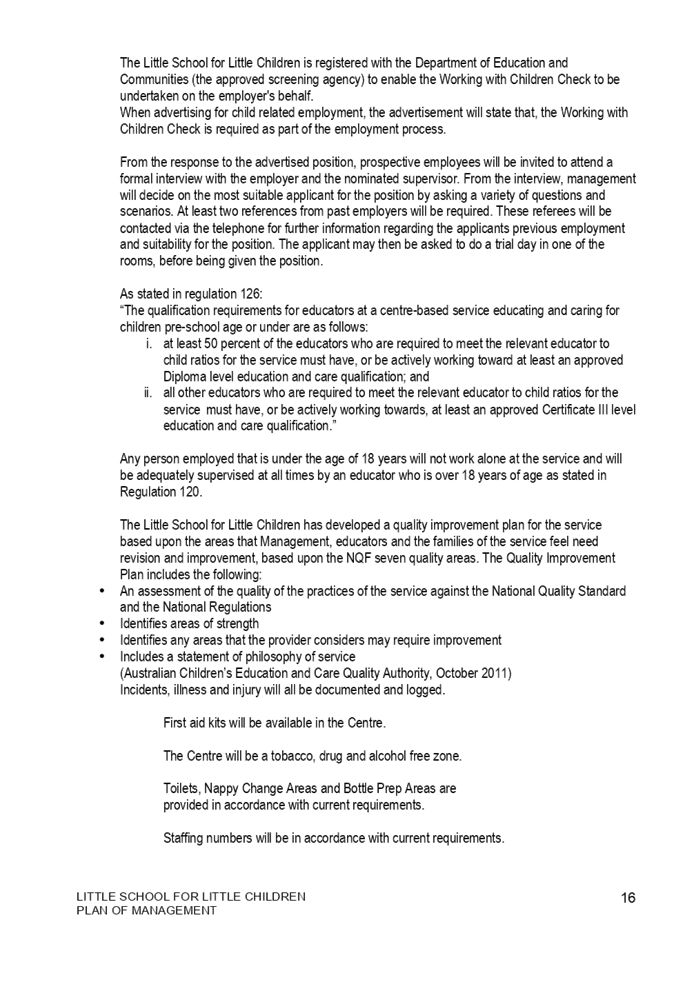 The Child Care Planning Guideline will override many of the controls specified and as such, the controls now have limited applicability to any childcare centre.