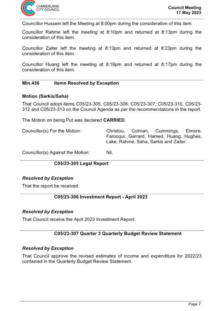 C06/23-326 Notice of Motion - Optimisation of Workforce Capacity of Existing Police Resources........................................................................................... 151