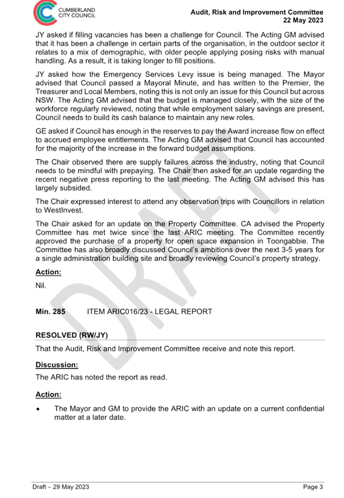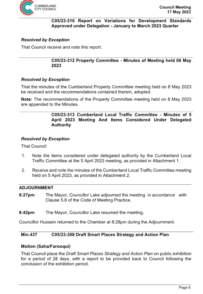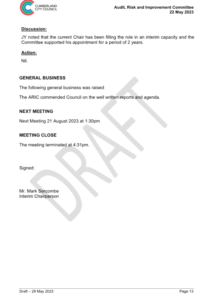 The minutes of this meeting will be formally adopted at the next Ordinary Committee meeting being held on 21 August 2023.
