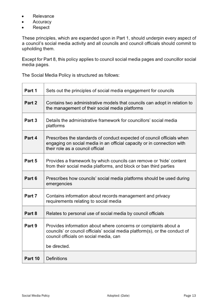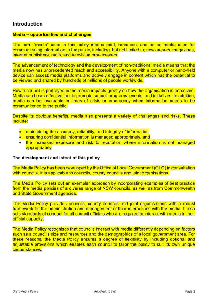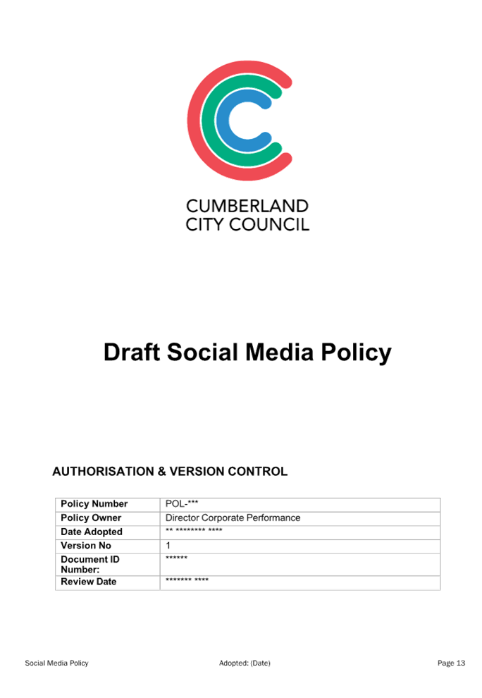 This report recommends the adoption of the Draft Social Media Policy and Draft Media Policy following a period of public exhibition.