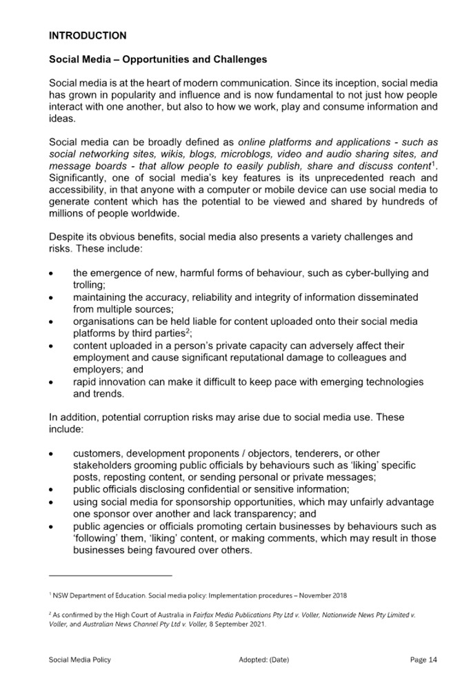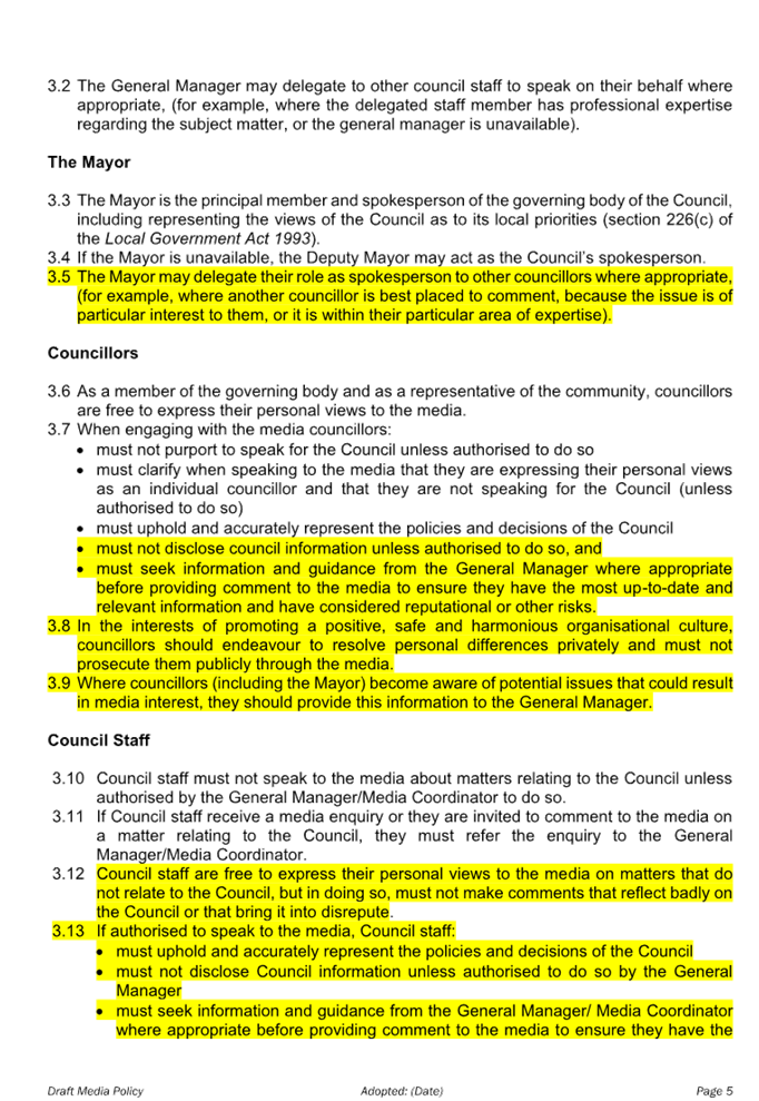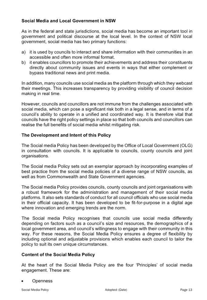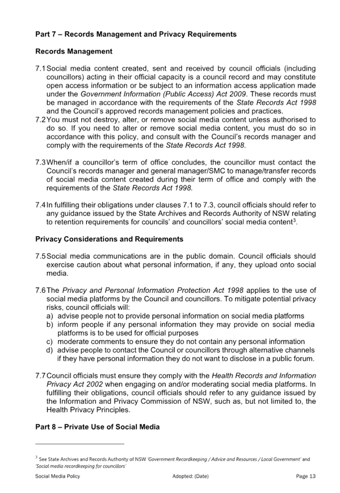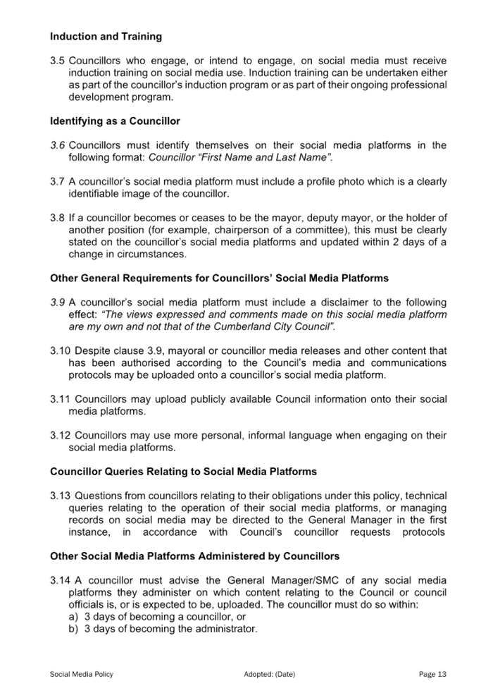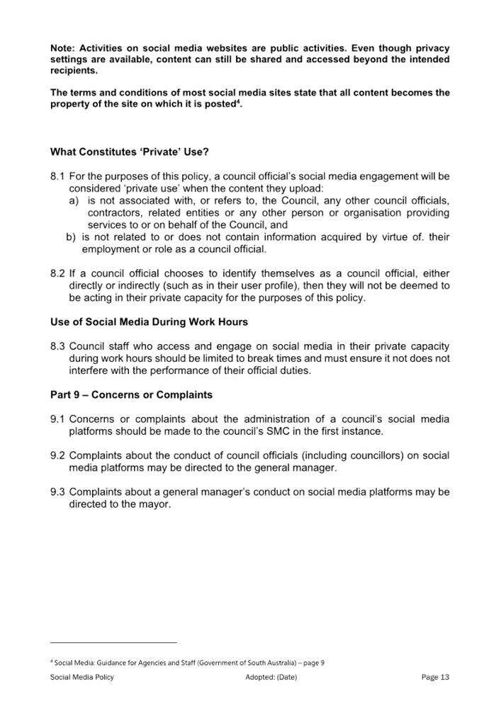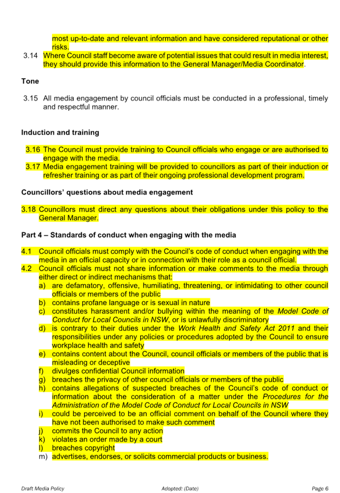 It should also be noted that Council also resolved to omit Clause 4.3(m) and remove the words ‘the Council or’ from Clause 5.4(e) from the Draft Social Media Policy (Min.298). Council subsequently received a Notice of Motion to alter the Council resolution at the Ordinary Meeting of Council held 21 December 2022, however, the Motion on being Put was lost.