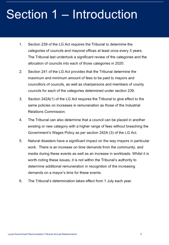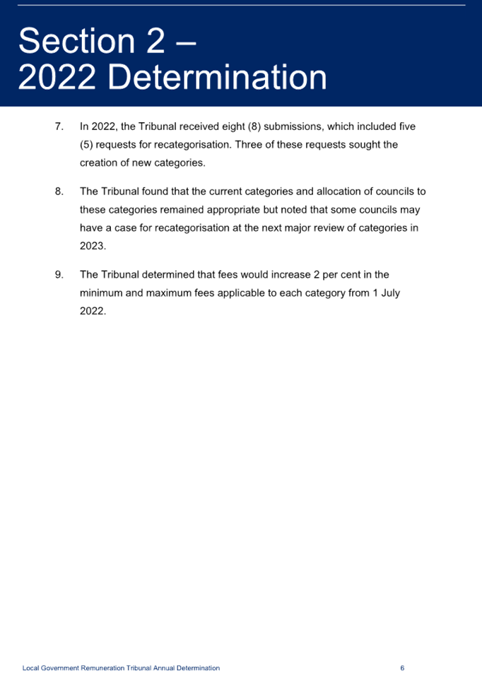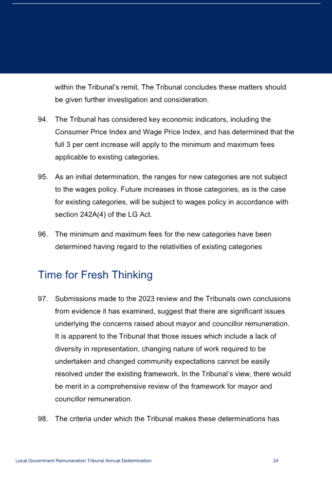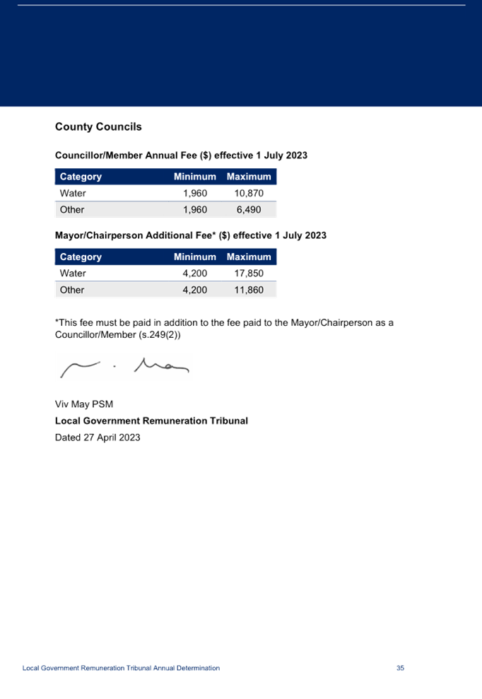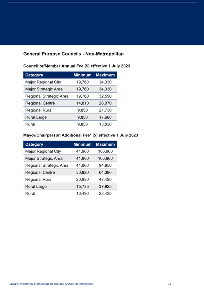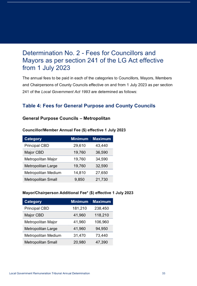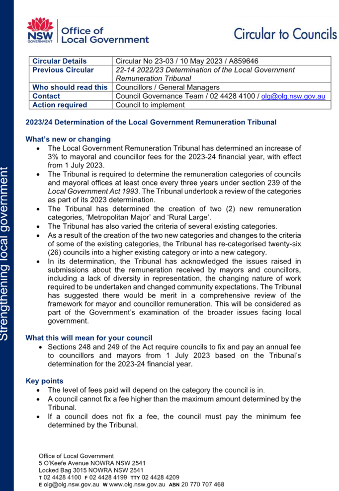 C06/23-322 Local Government Remuneration Tribunal Determination - Mayor and Councillor Remuneration 2023/24........................................................................ 53