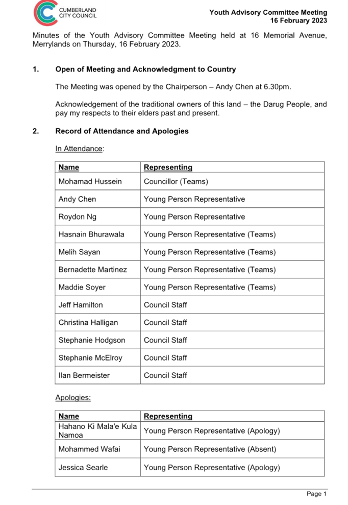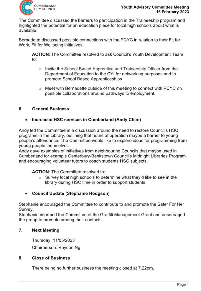 Minutes - Youth Advisory Committee Meeting 16 February 2023