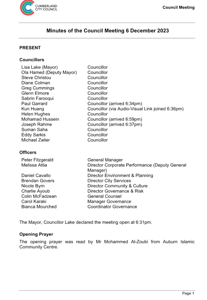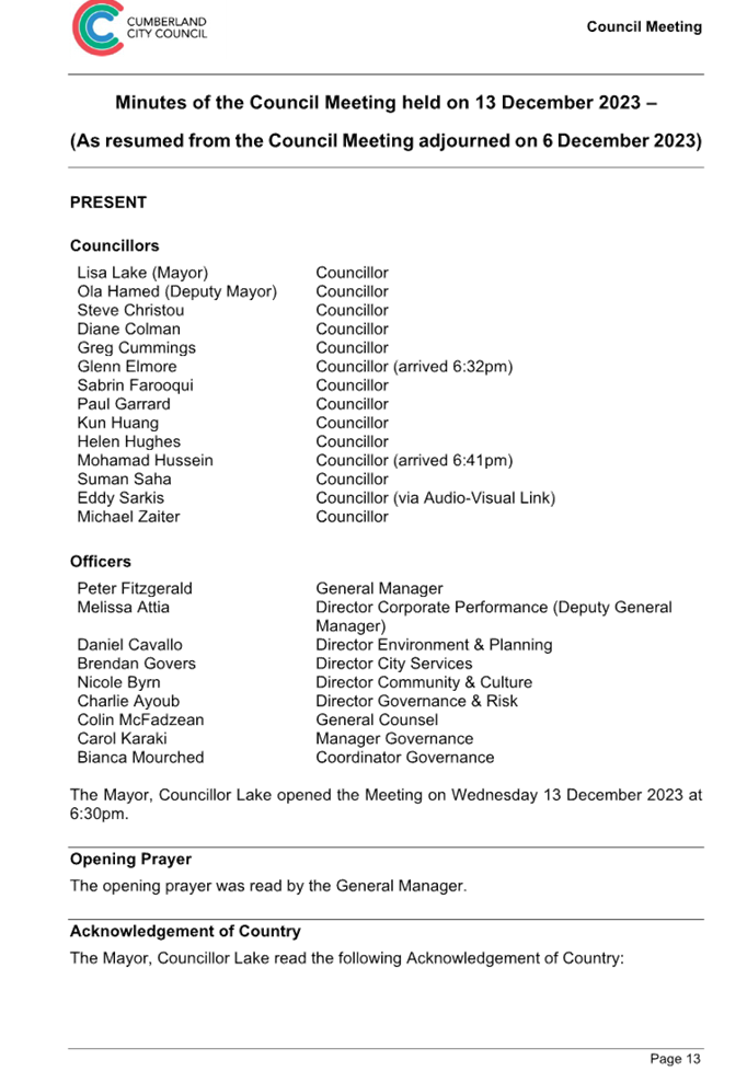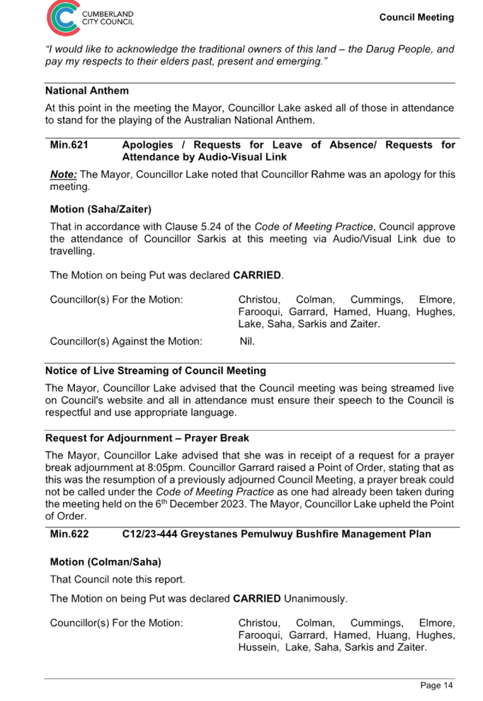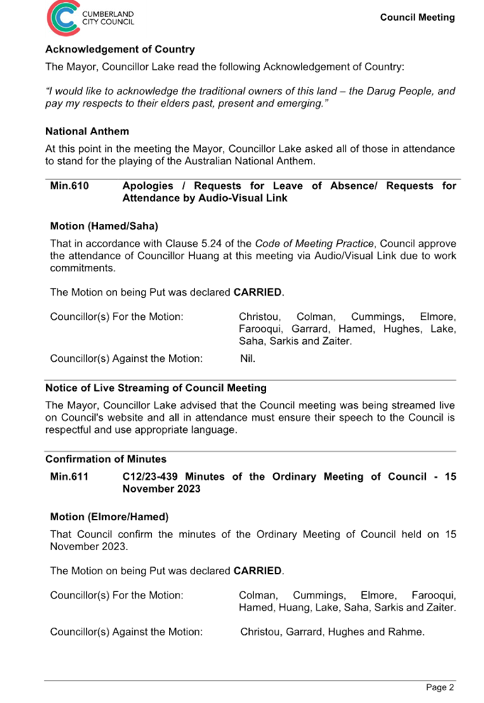 2 Opening Prayer / Acknowledgement of Country / National Anthem