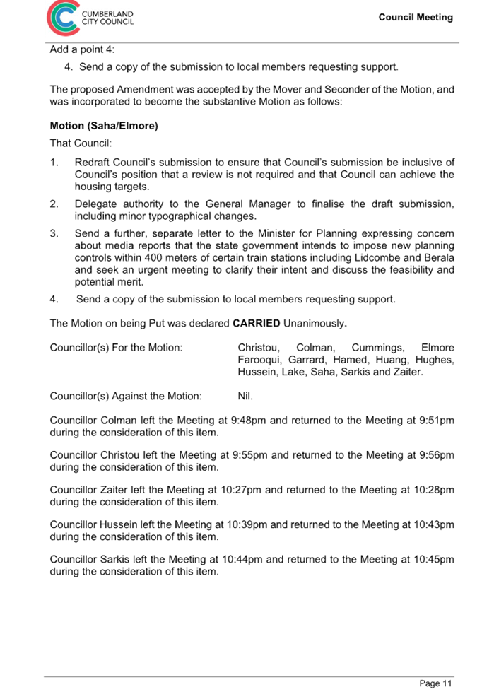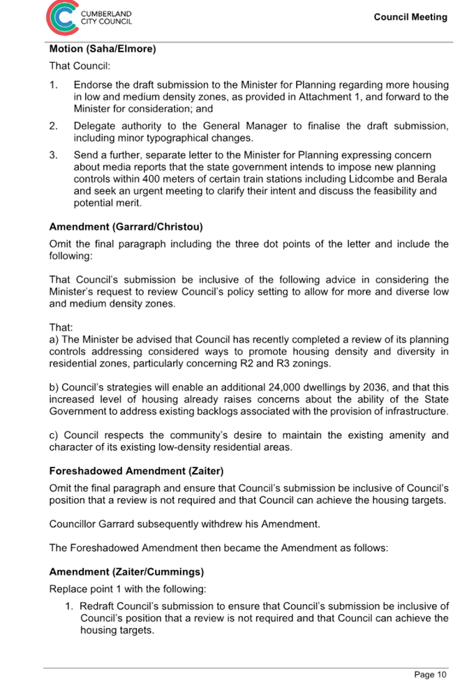 That with respect to the recently proposed changes to planning policy for parts of Berala and Lidcombe, Council: