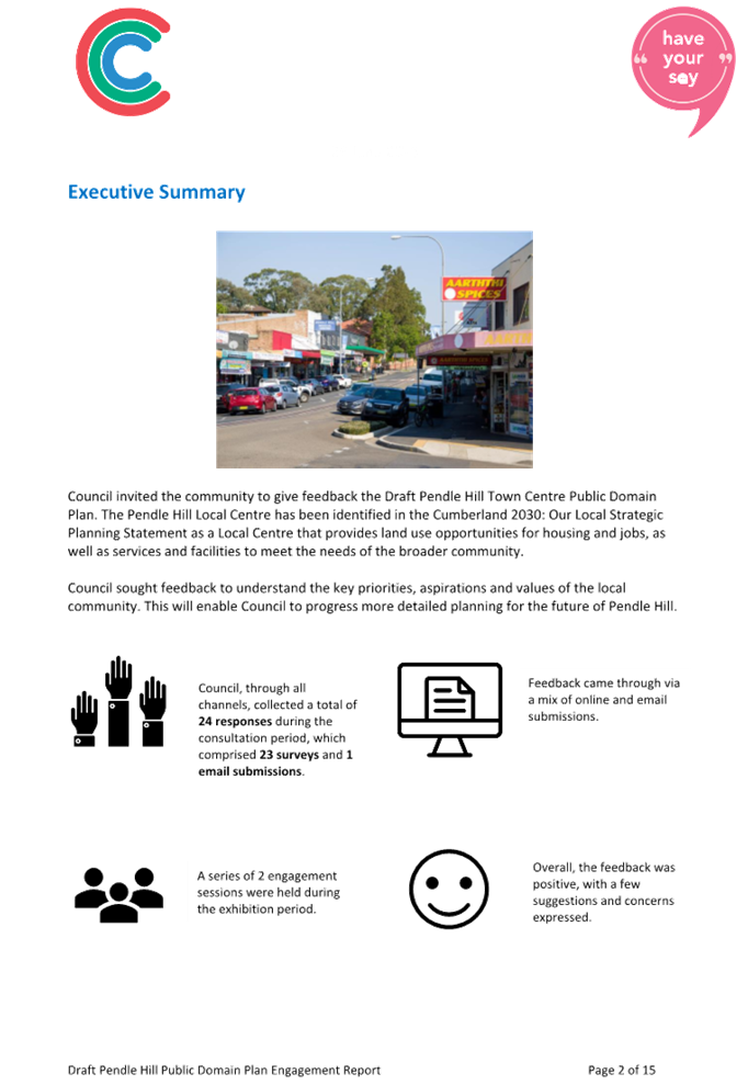 2. Draft Pendle Hill Town Centre Public Domain Plan - Engagement Evaluation Report
