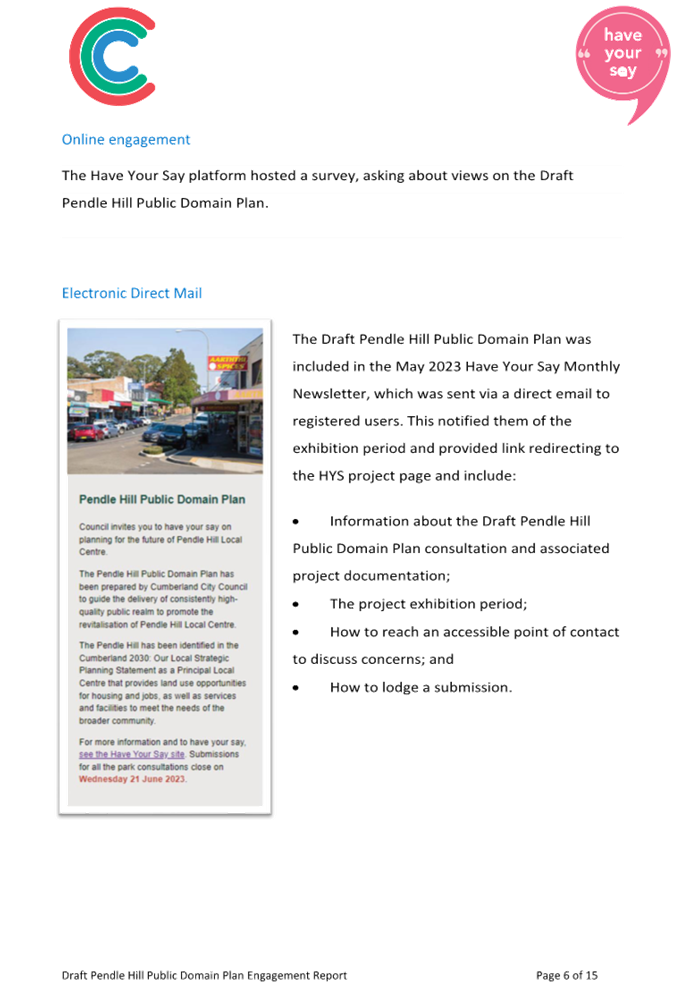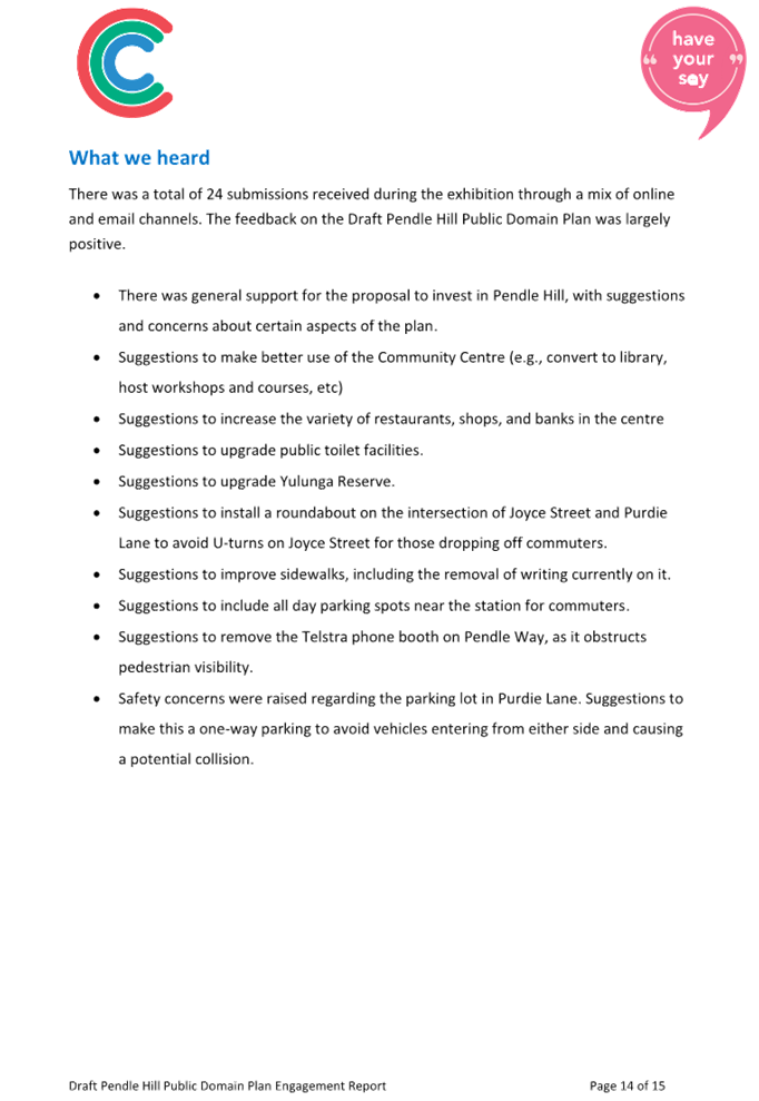 Draft Pendle Hill Town Centre Public Domain Plan - Engagement Evaluation Report
