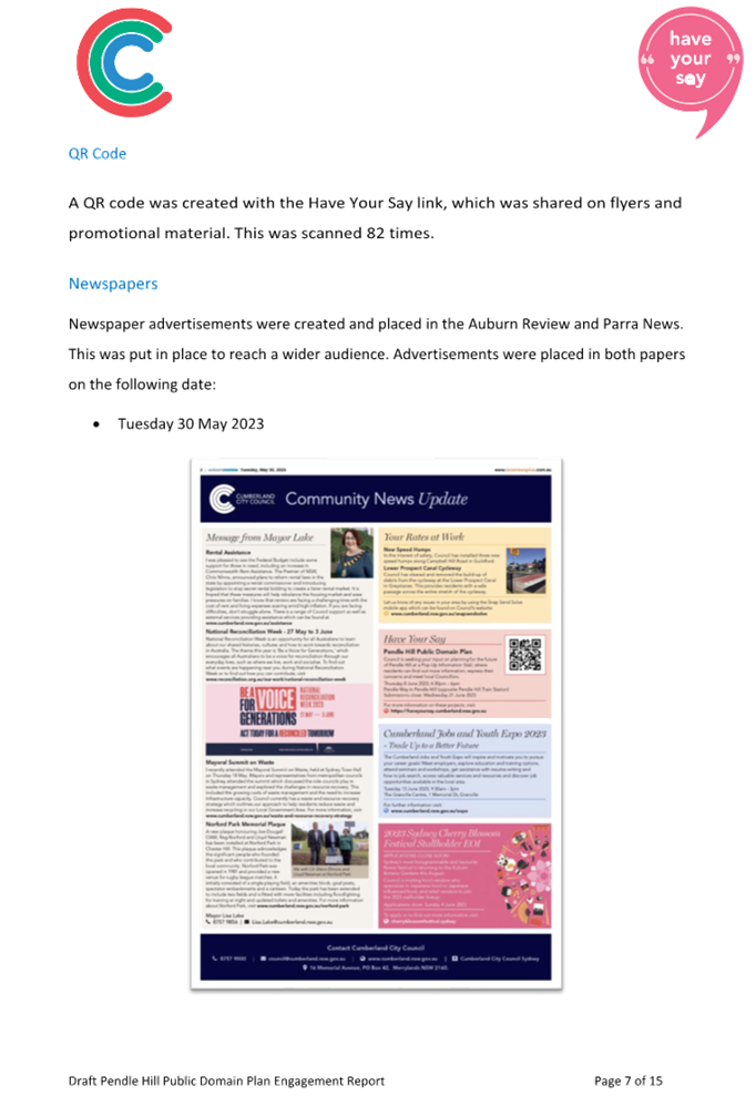 Notification of the proposal was included in the May 2023 Have Your Say Monthly Newsletter, which was sent to registered users, as well as the May episode of the Cumberland Conversations Podcast.