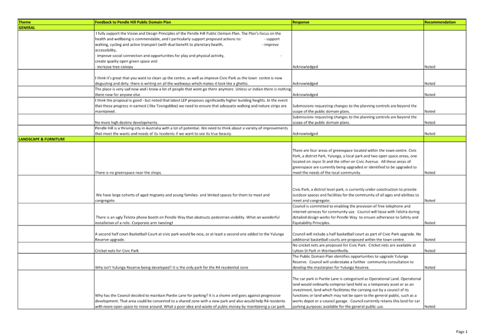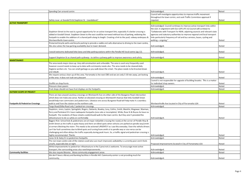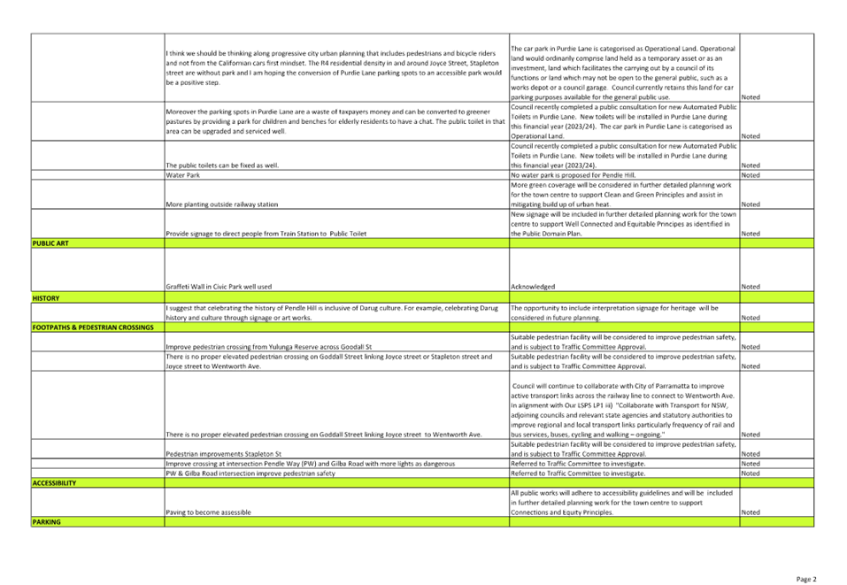 Draft Pendle Hill Town Centre Public Domain Plan - Response to Submissions