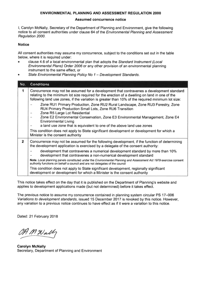 · A delegate of Council cannot assume the Secretary’s concurrence if the development contravenes a numerical standard by greater than 10%; or the variation is to a non-numerical standard.