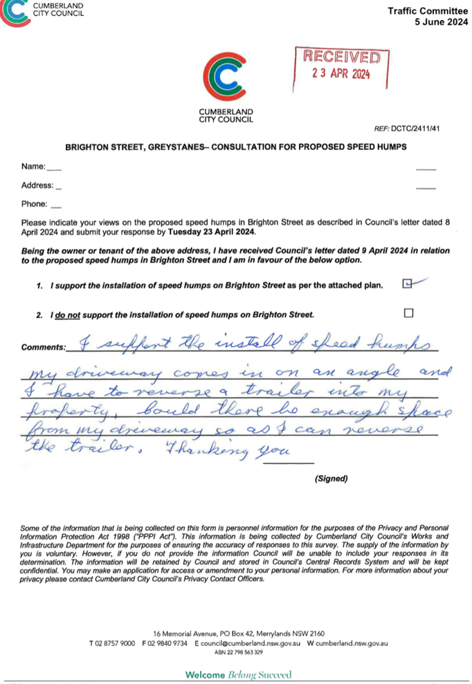 CTC-25-089 BRIGHTON STREET, GREYSTANES – ROAD SAFETY CONCERNS - CONSULTATION.................................................................................... 325