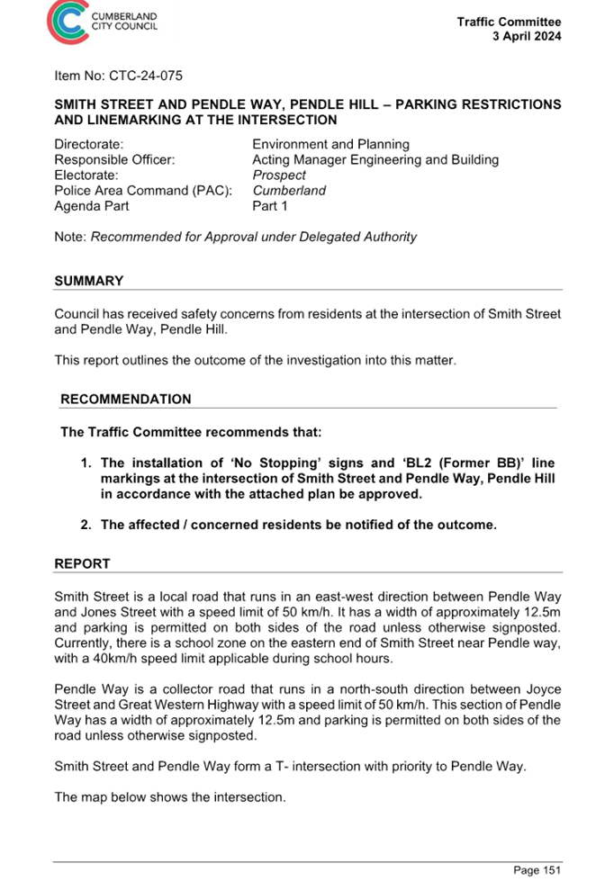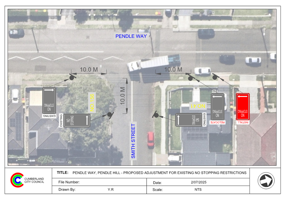 Attachment 1 Plan – Pendle Way, Pendle Hill – Proposed ‘No Stopping’ extension.. 11