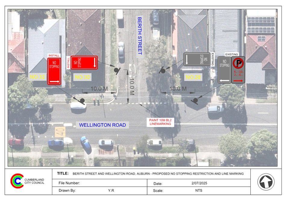 CLTF-25-188 WELLINGTON ROAD AND BERITH STREET, AUBURN – PROPOSED ‘NO STOPPING’ RESTRICTIONS AND LINE MARKING