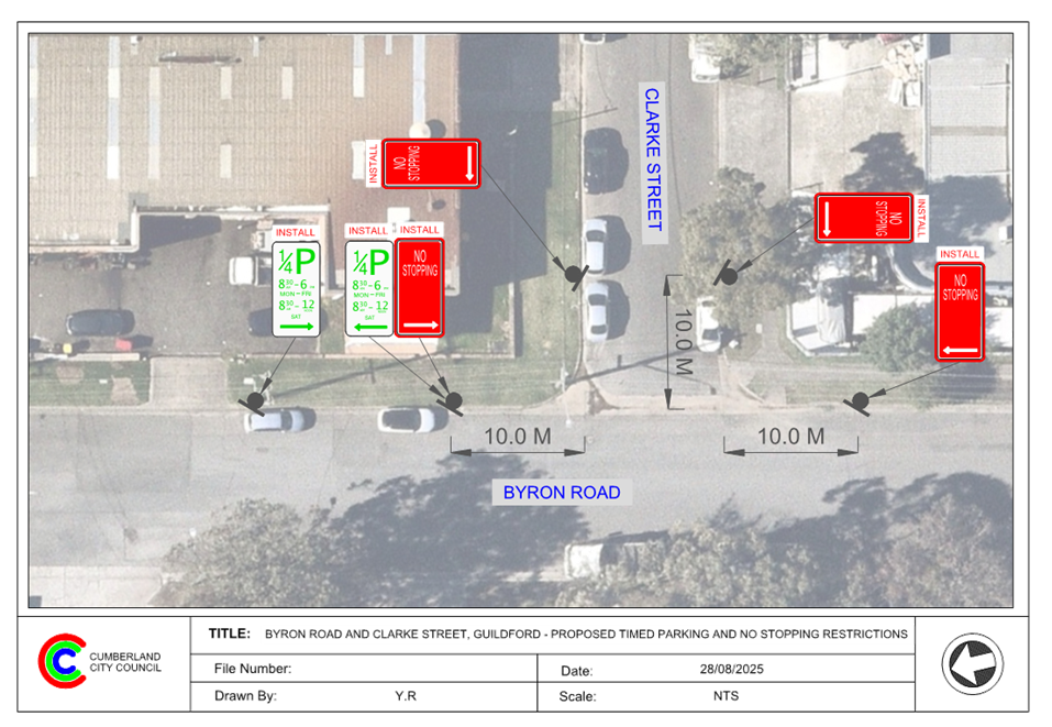 Attachment 1 Plan – Byron Road, Guildford – Proposed ‘1/4P’ Parking and ‘No Stopping’ Restrictions..................................................................................................... 27