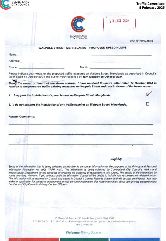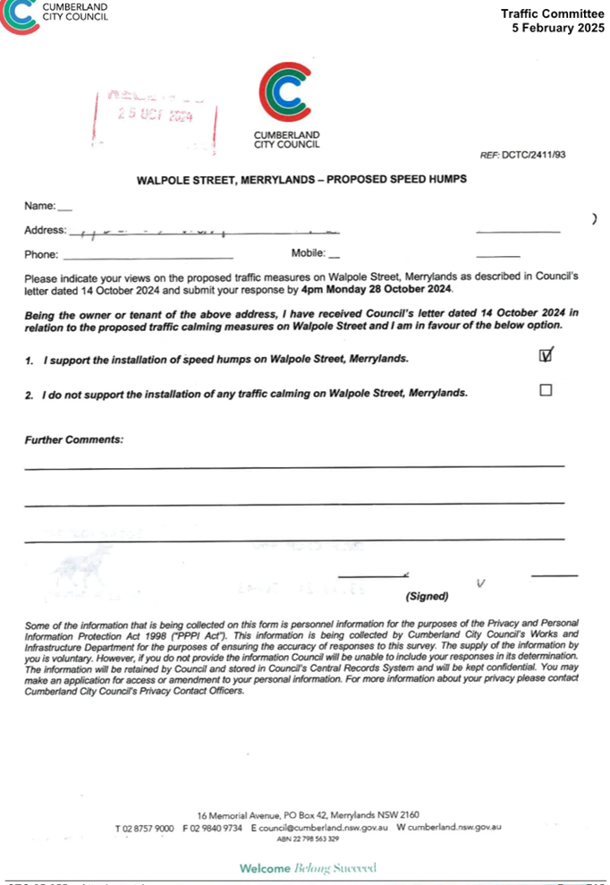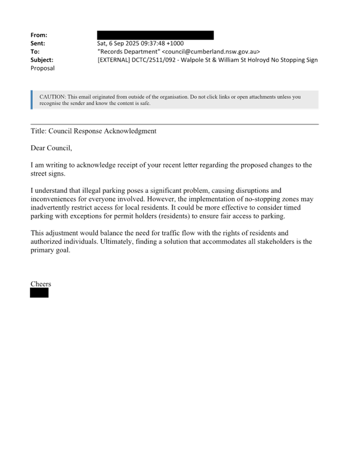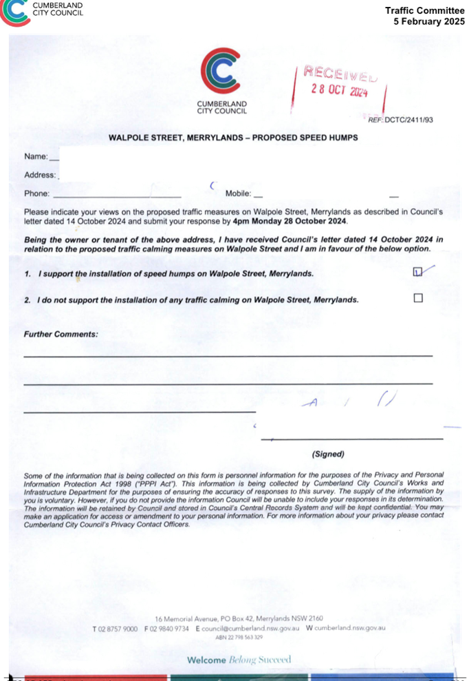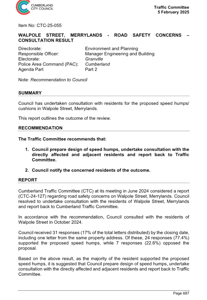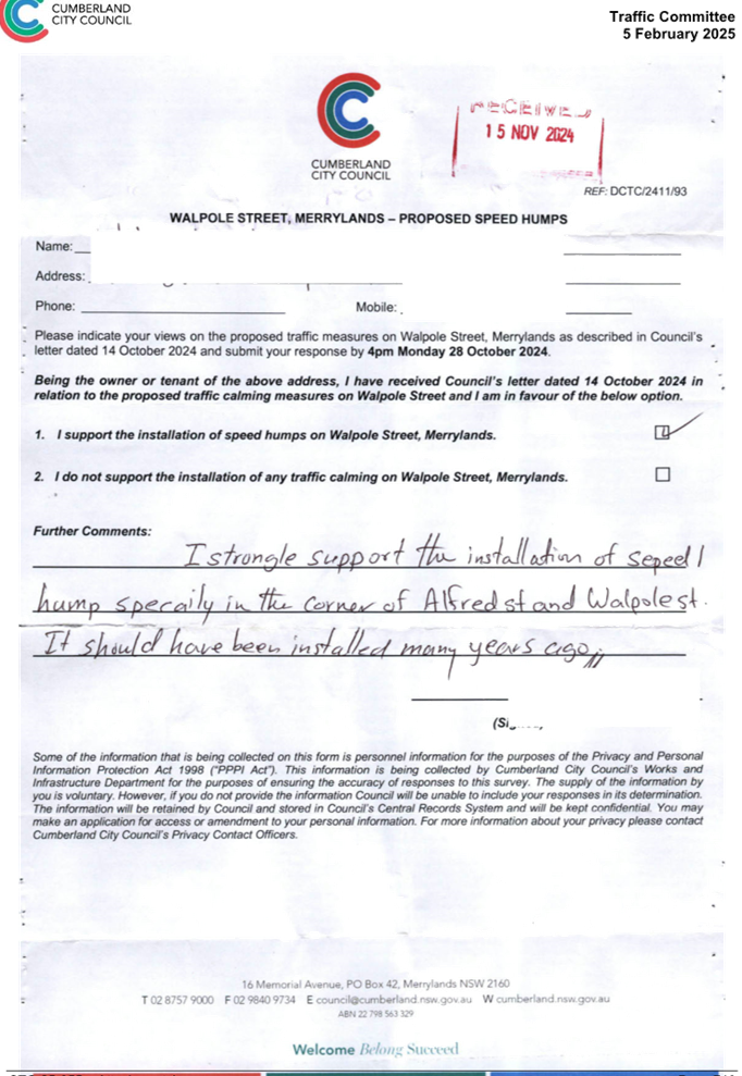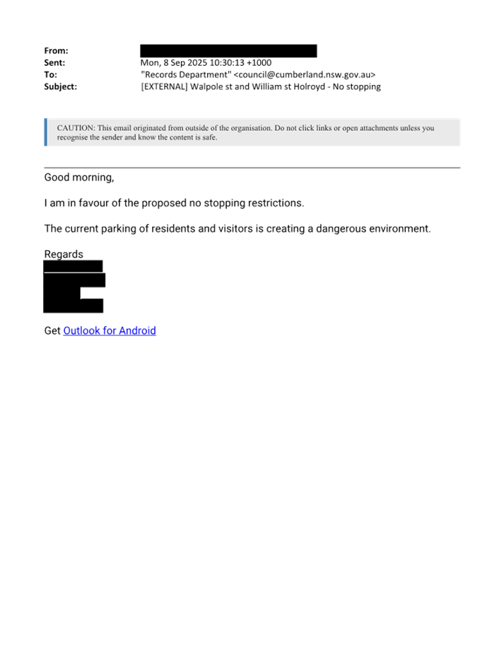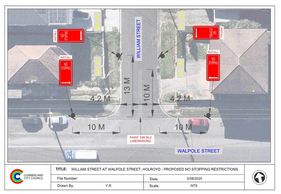 CLTF-25-193 WILLIAM STREET AND WALPOLE STREET, HOLROYD – PROPOSED ‘NO STOPPING’ RESTRICTIONS AND LINE MARKING