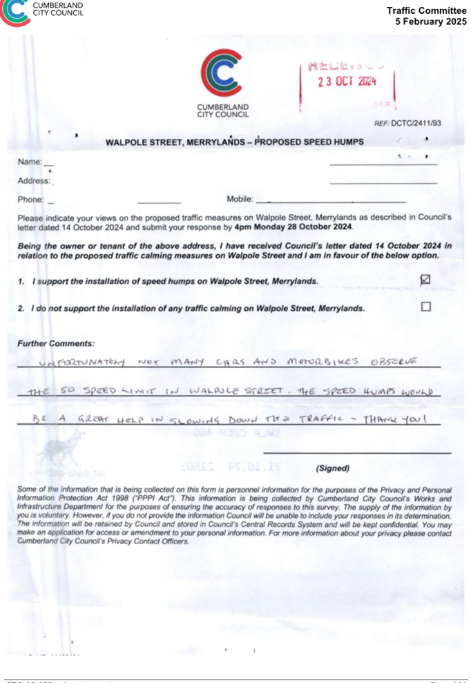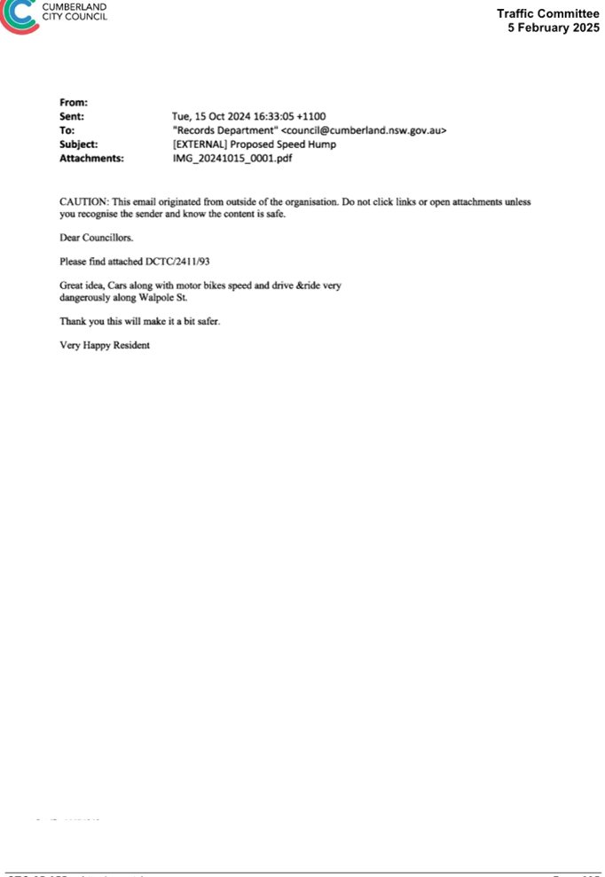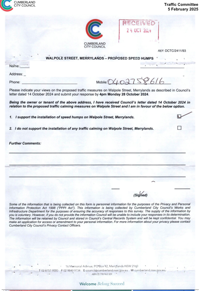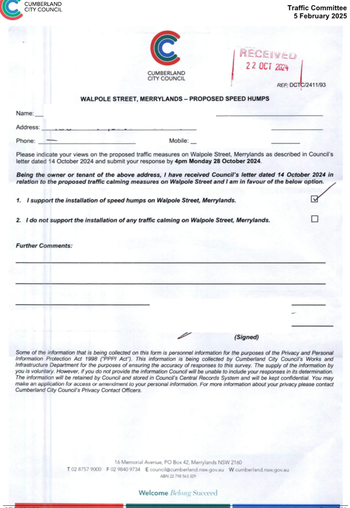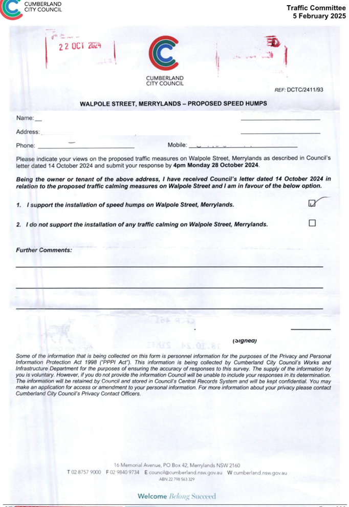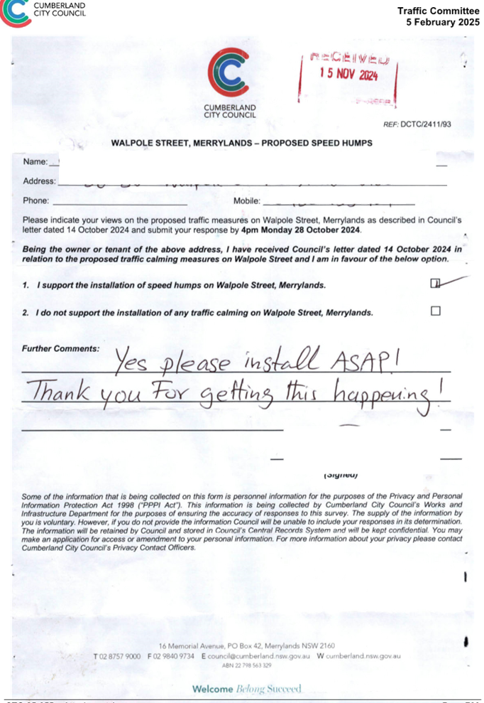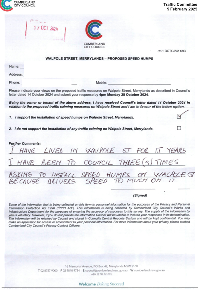 CLTF-25-193 WILLIAM STREET AND WALPOLE STREET, HOLROYD – PROPOSED ‘NO STOPPING’ RESTRICTIONS AND LINE MARKING