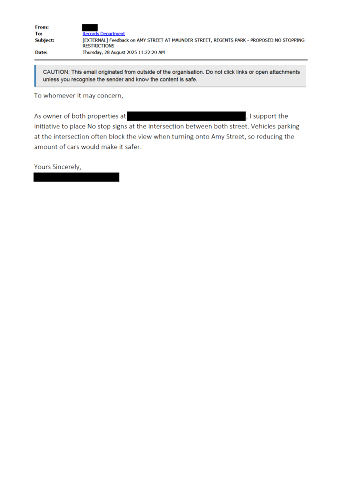 CLTF-25-196 AMY STREET AT MAUNDER STREET, REGENTS PARK – PROPOSED ‘NO STOPPING’ RESTRICTIONS
