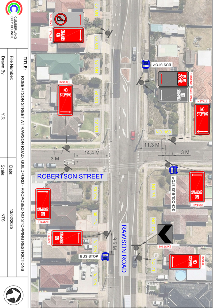 Plan – Robertson Street and Rawson Road, Guildford – Proposed ‘No Stopping’ restrictions