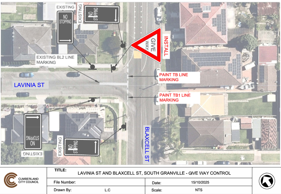 CLTF-25-202 LAVINIA STREET AND BLAXCELL STREET, GRANVILLE – PROPOSED ‘GIVE WAY’ SIGNAGE AND LINE MARKING