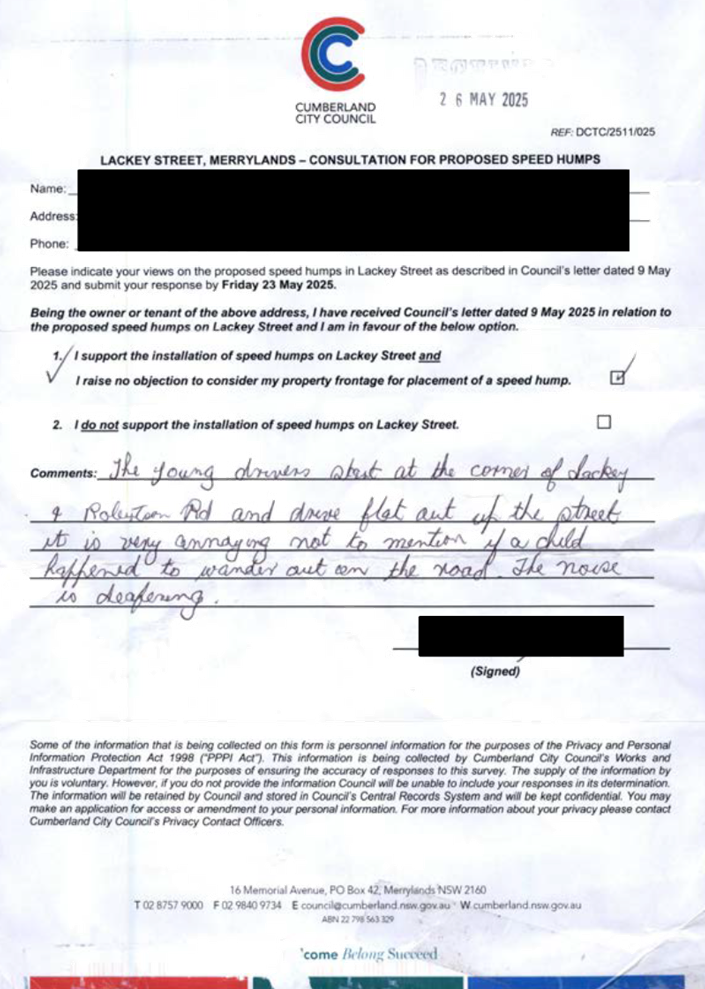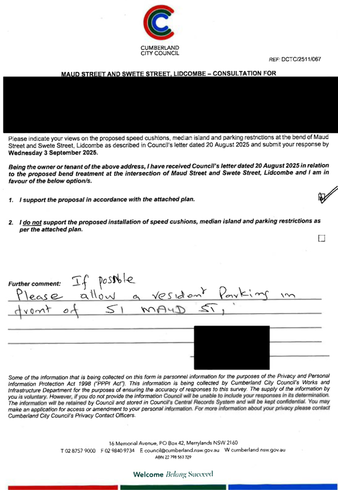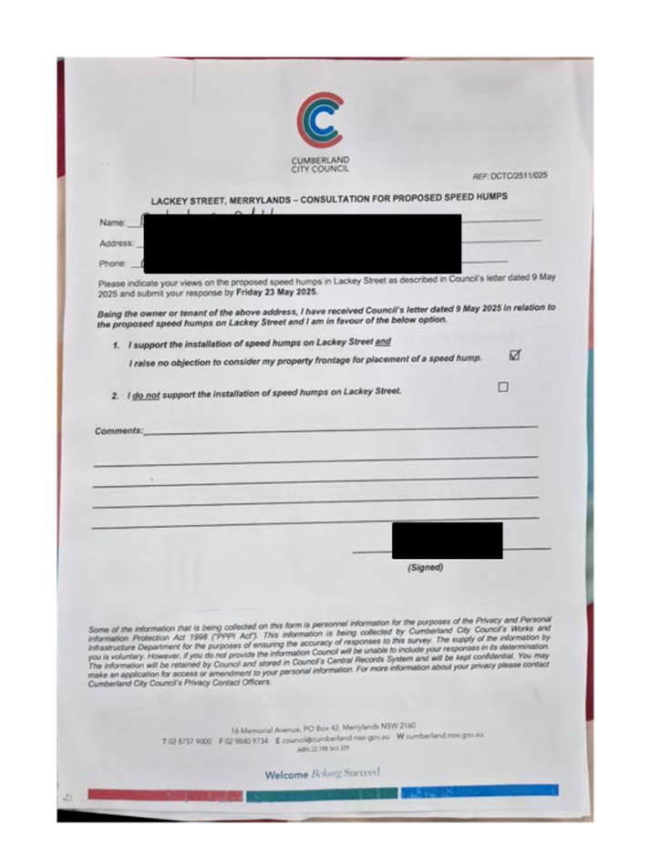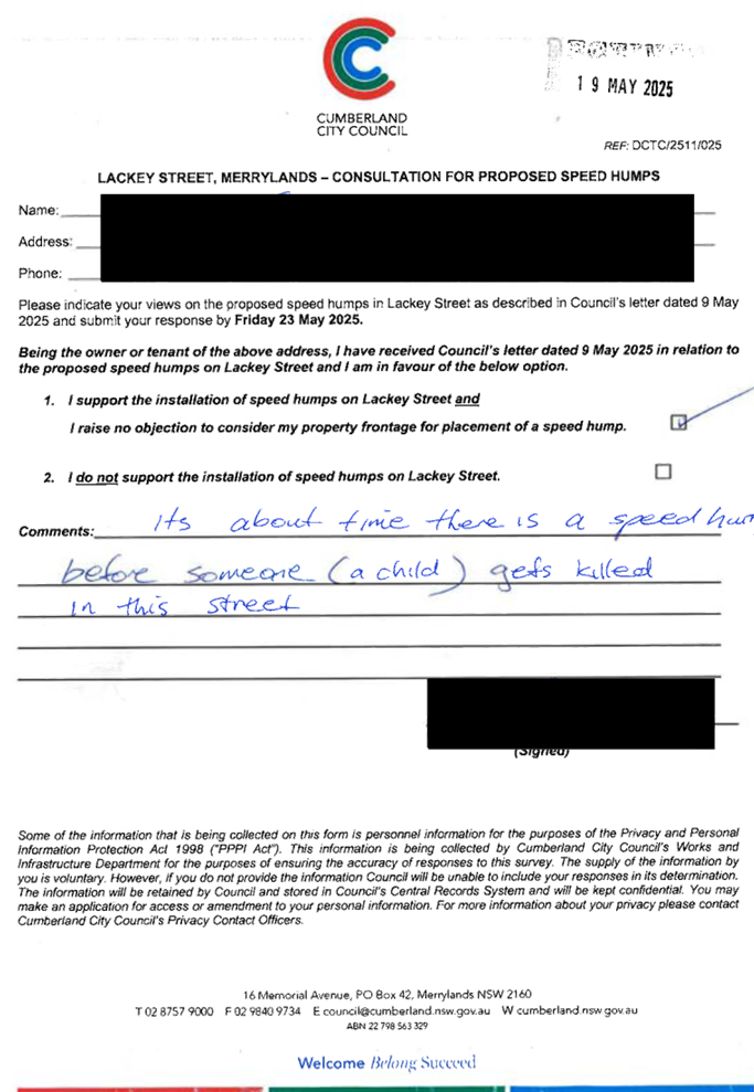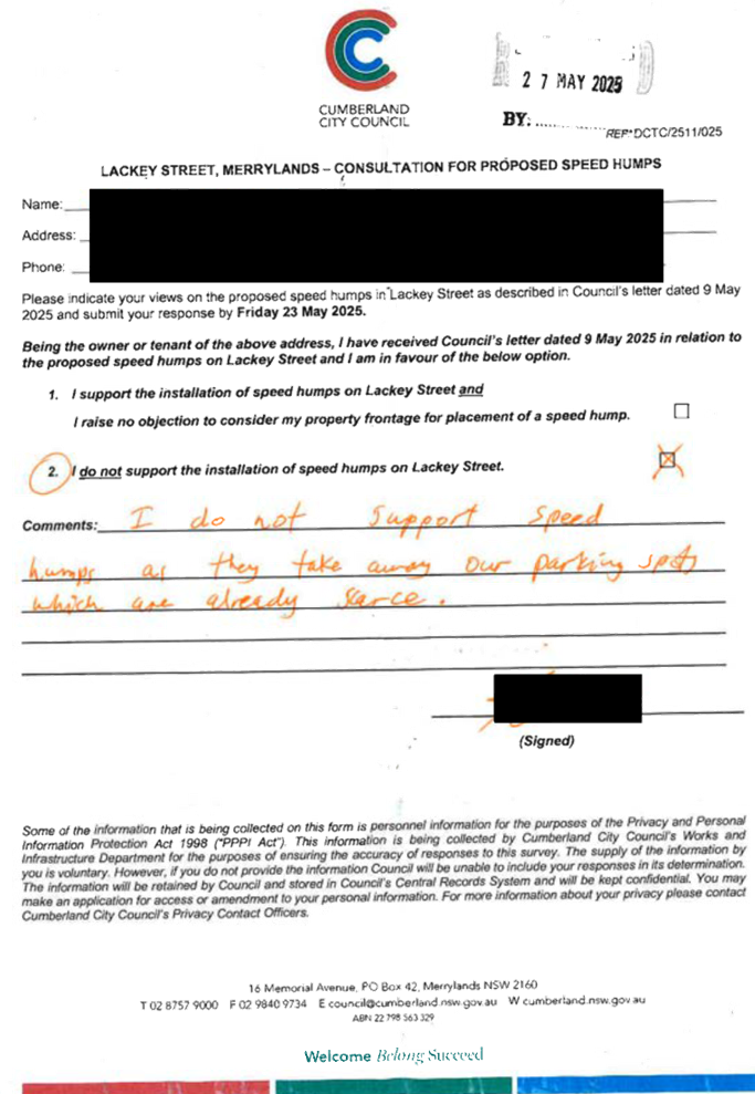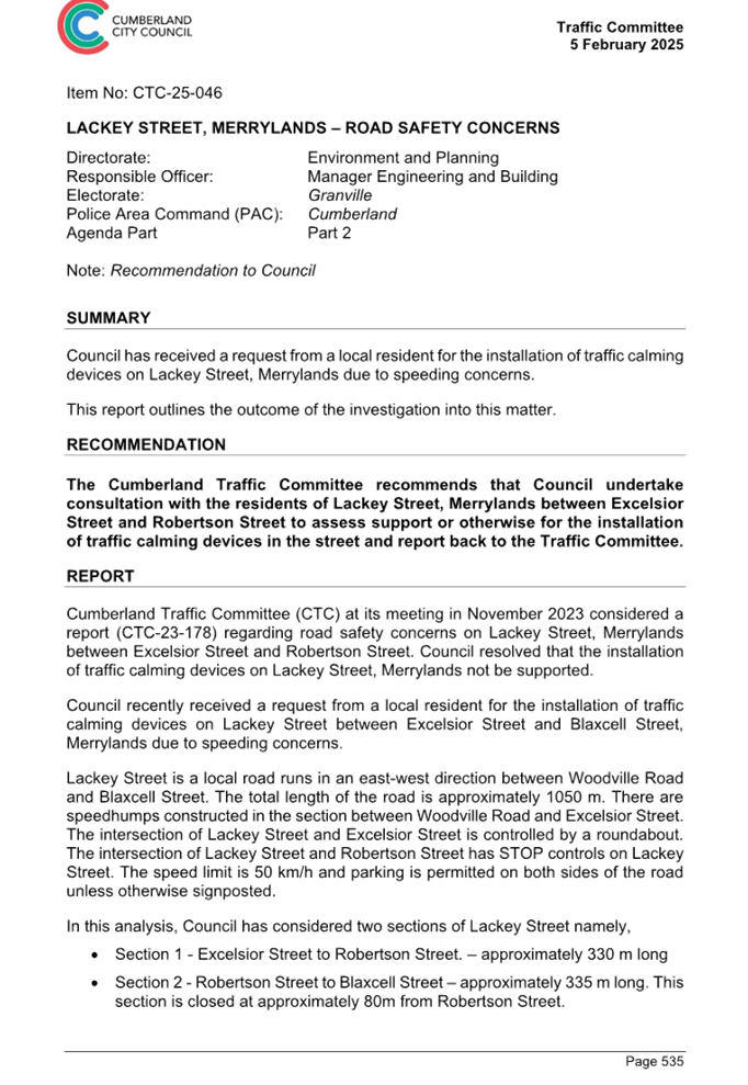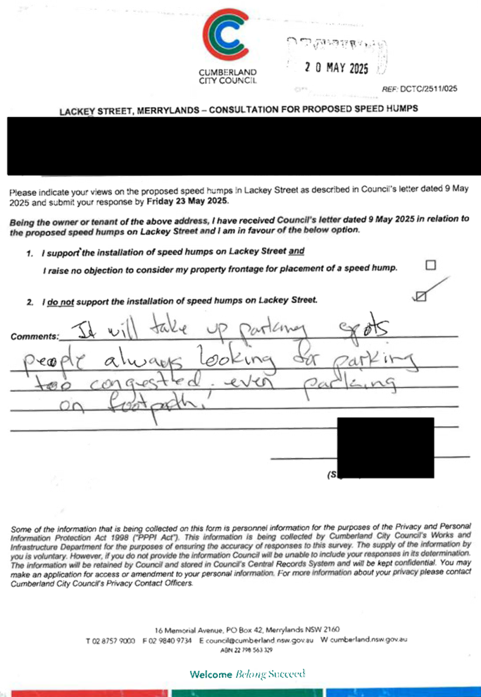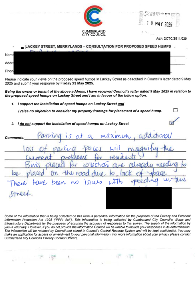 CLTF-25-203 LACKEY STREET, MERRYLANDS BETWEEN EXCELSIOR STREET AND ROBERTSON STREET – CONSULTATION RESULTS