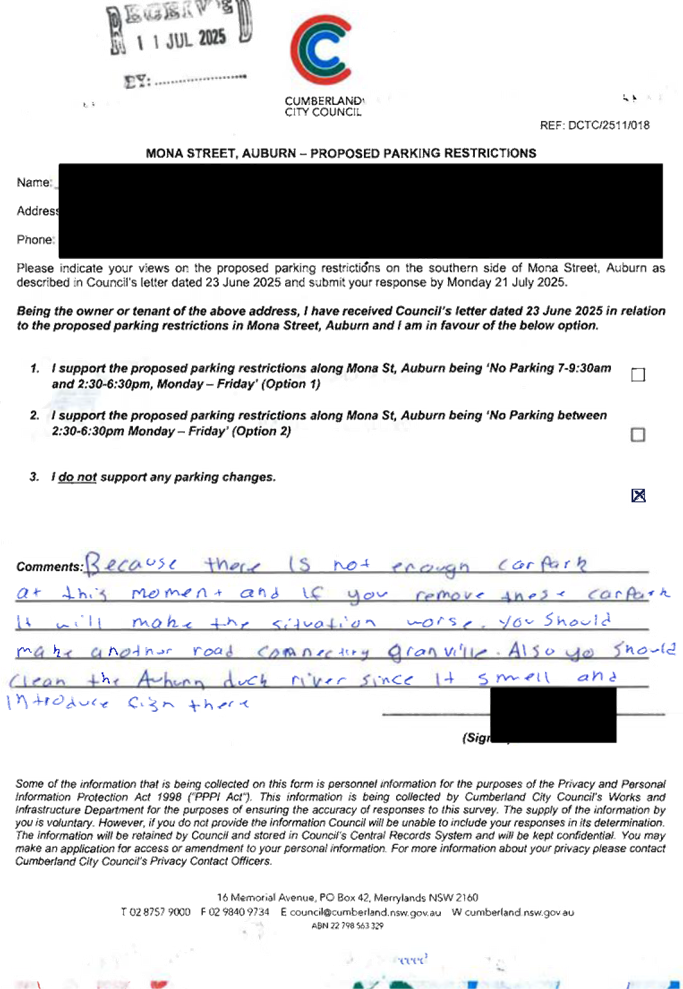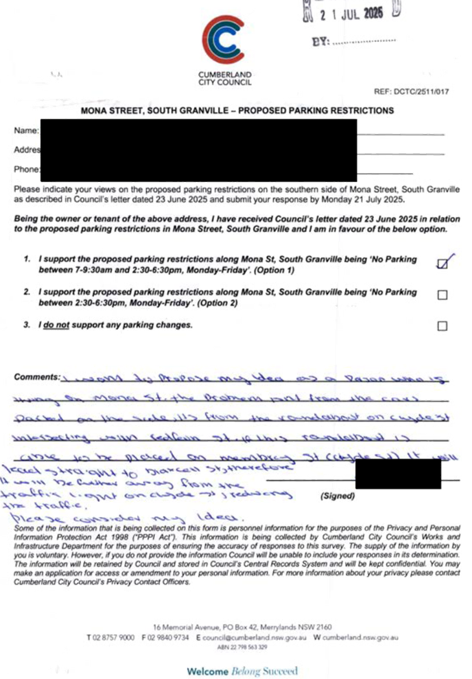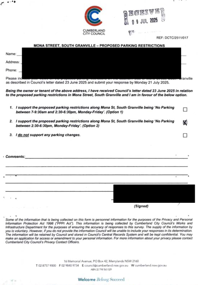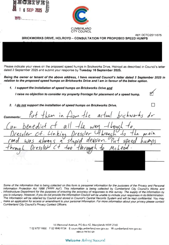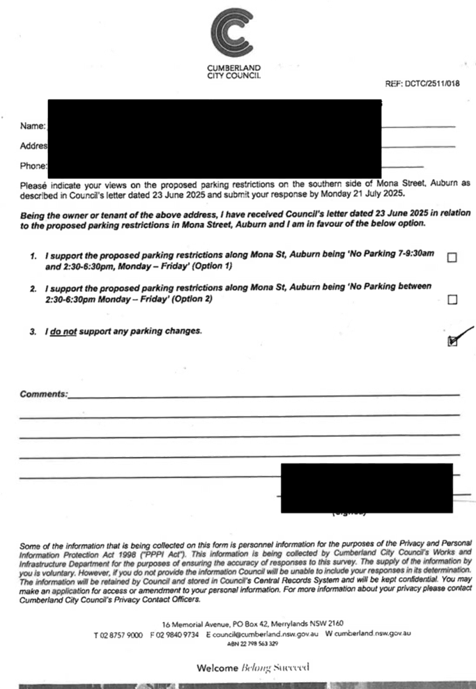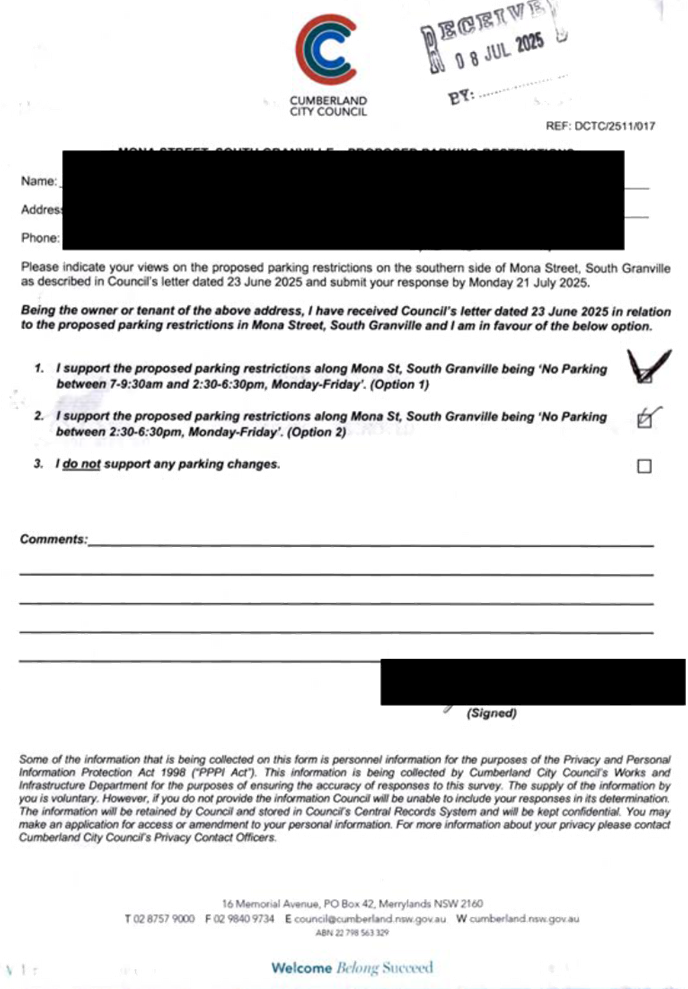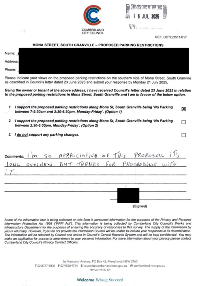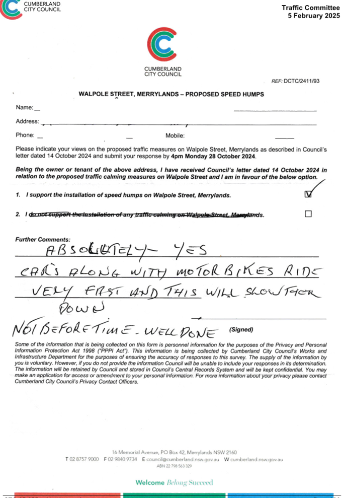 CLTF-25-203 LACKEY STREET, MERRYLANDS BETWEEN EXCELSIOR STREET AND ROBERTSON STREET – CONSULTATION RESULTS