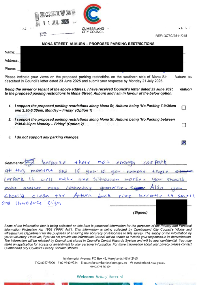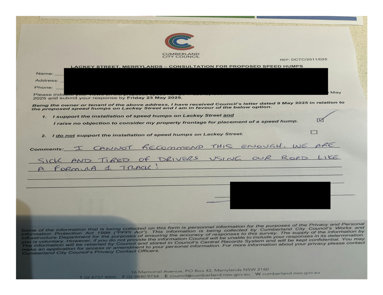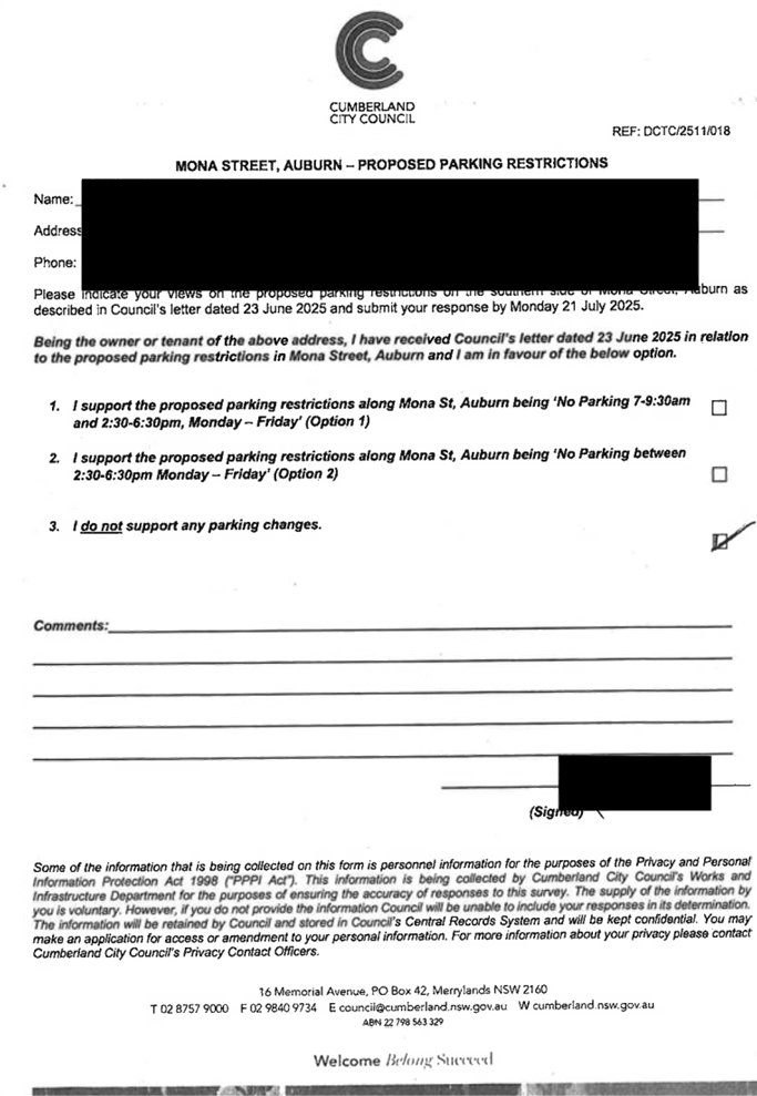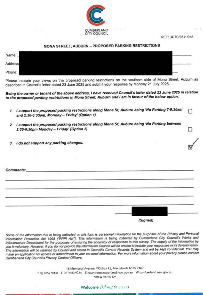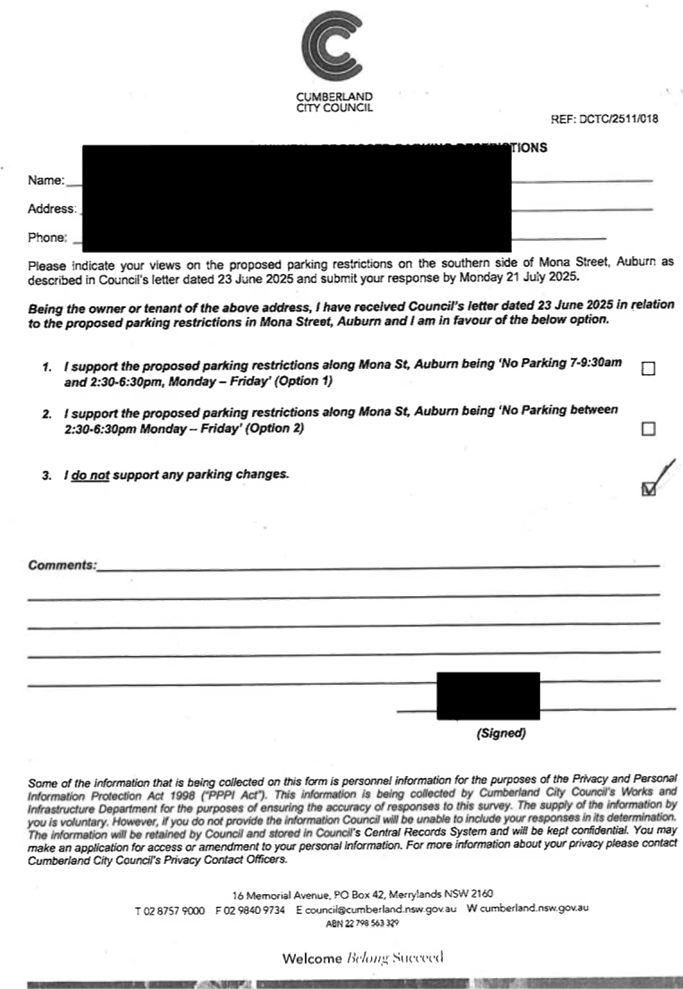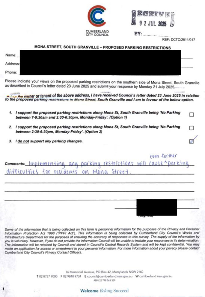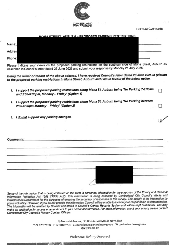 CLTF-25-203 LACKEY STREET, MERRYLANDS BETWEEN EXCELSIOR STREET AND ROBERTSON STREET – CONSULTATION RESULTS