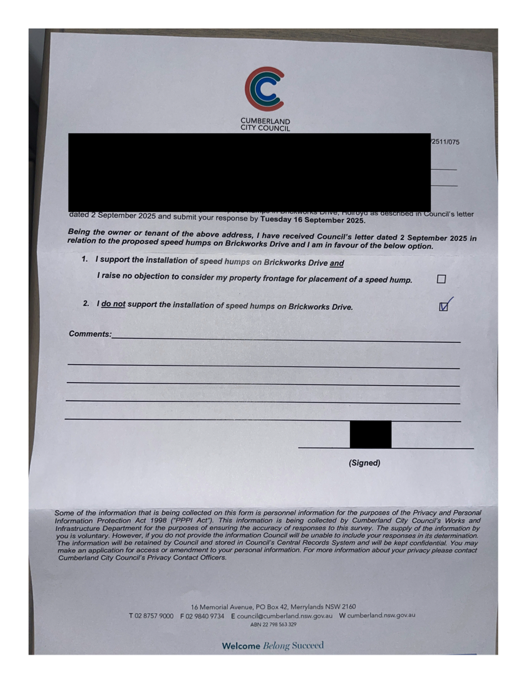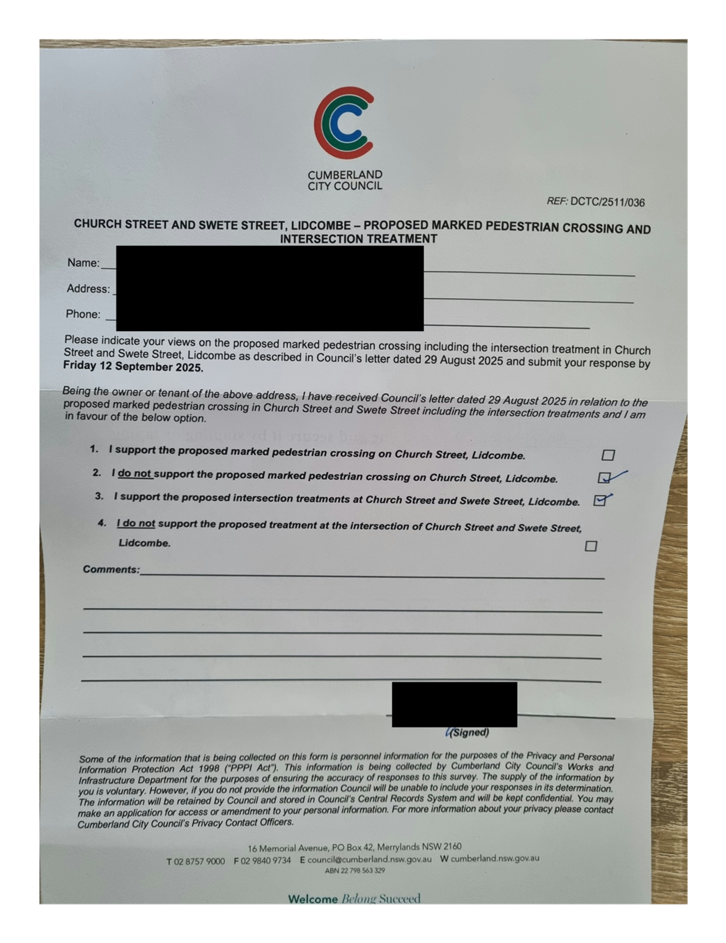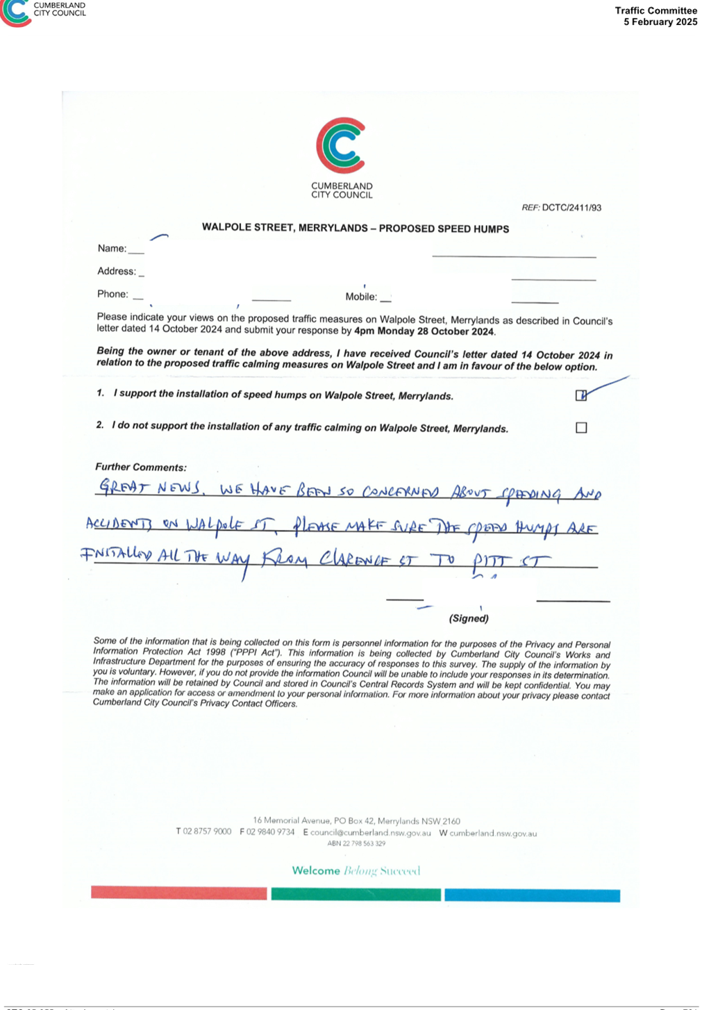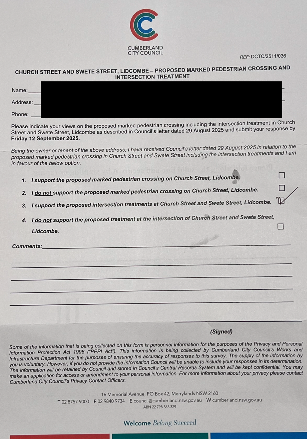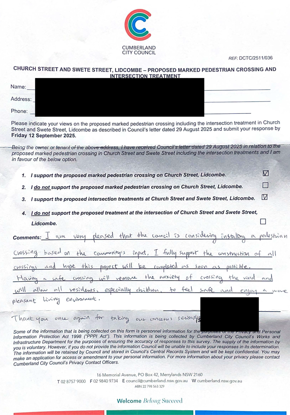 CLTF-25-203 LACKEY STREET, MERRYLANDS BETWEEN EXCELSIOR STREET AND ROBERTSON STREET – CONSULTATION RESULTS