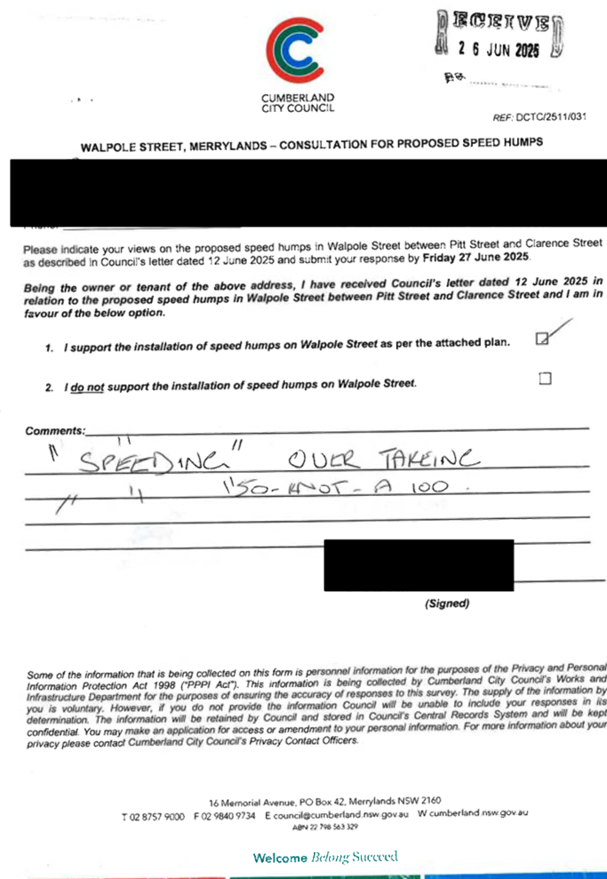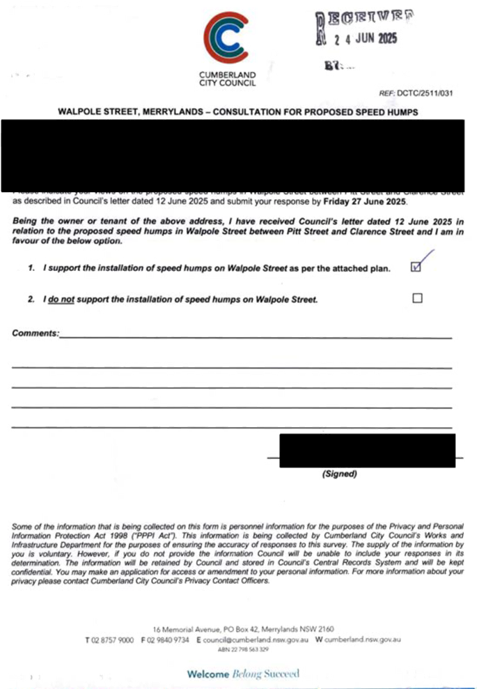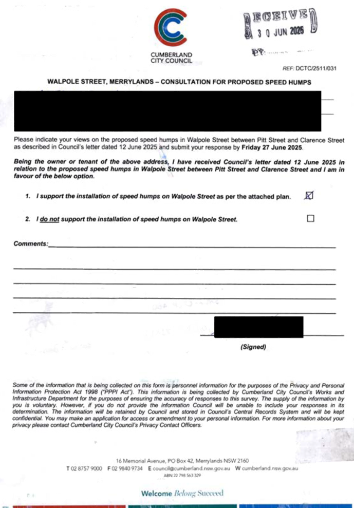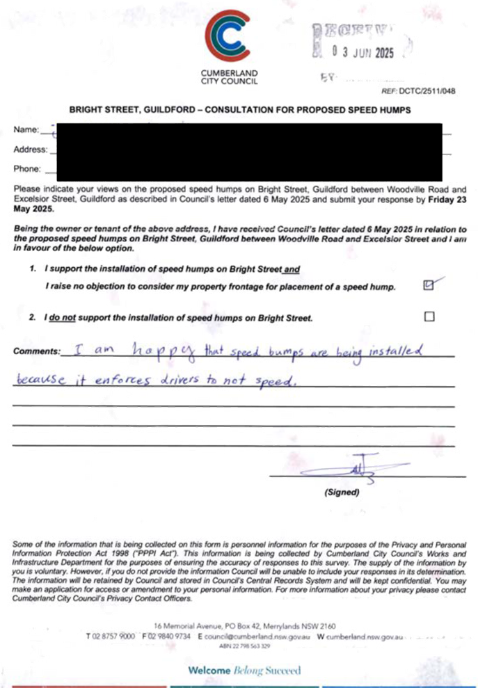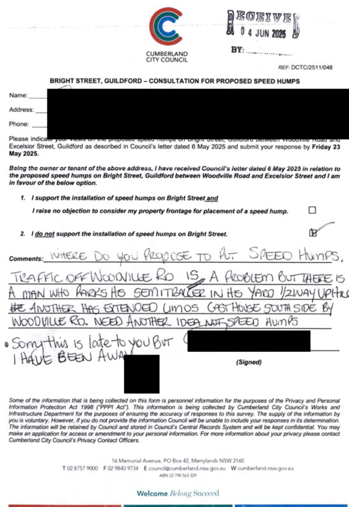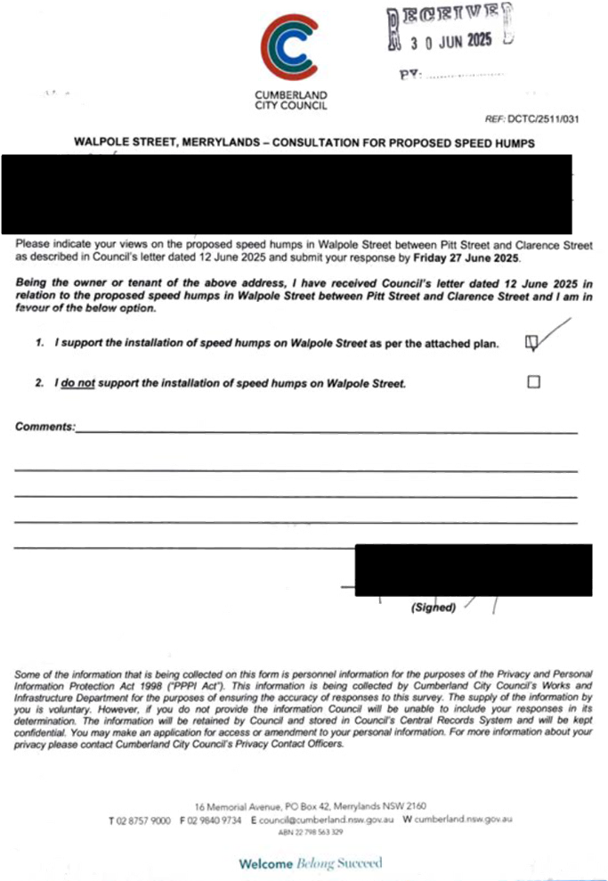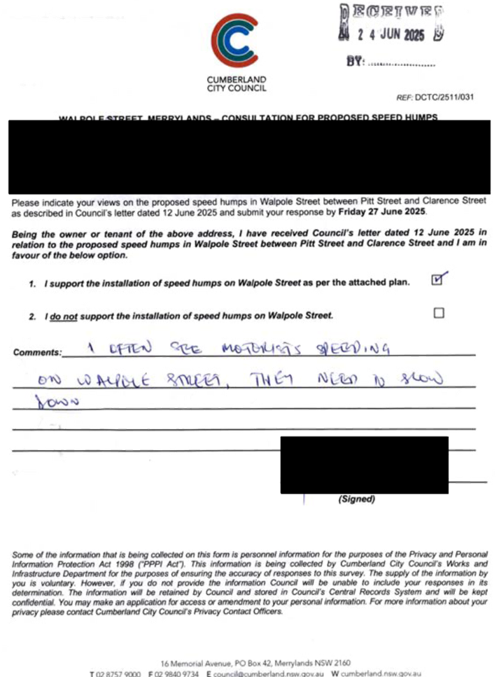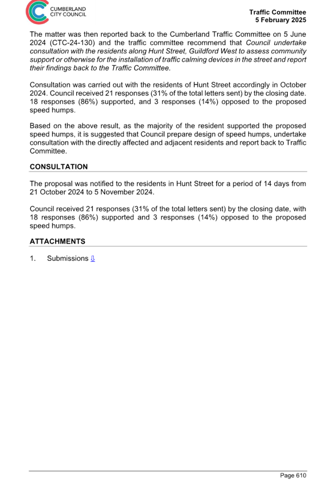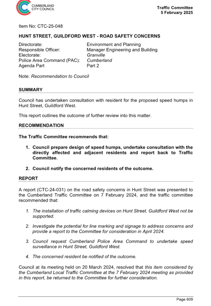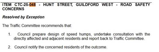CLTF-25-205 HUNT STREET, GUILDFORD WEST - ROAD SAFETY CONCERNS – CONSULTATION RESULT
