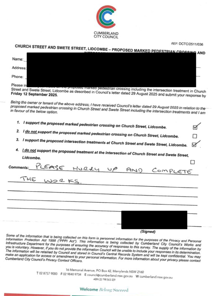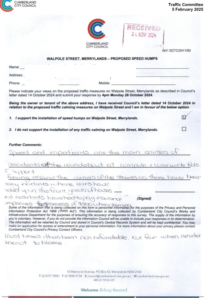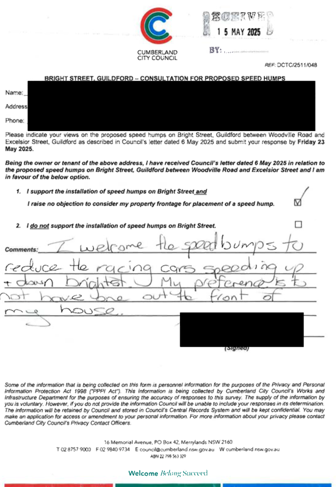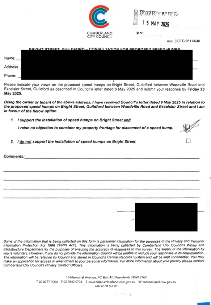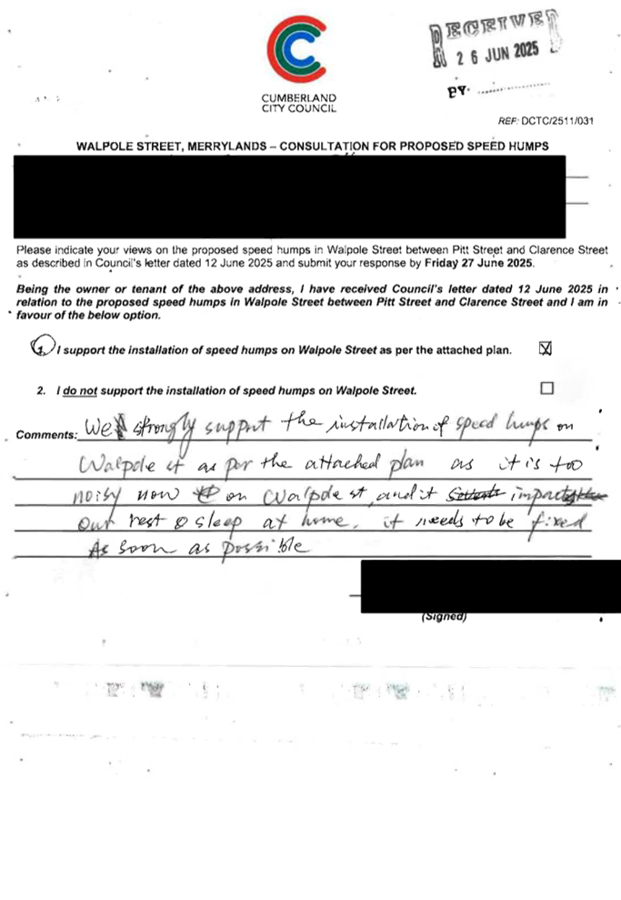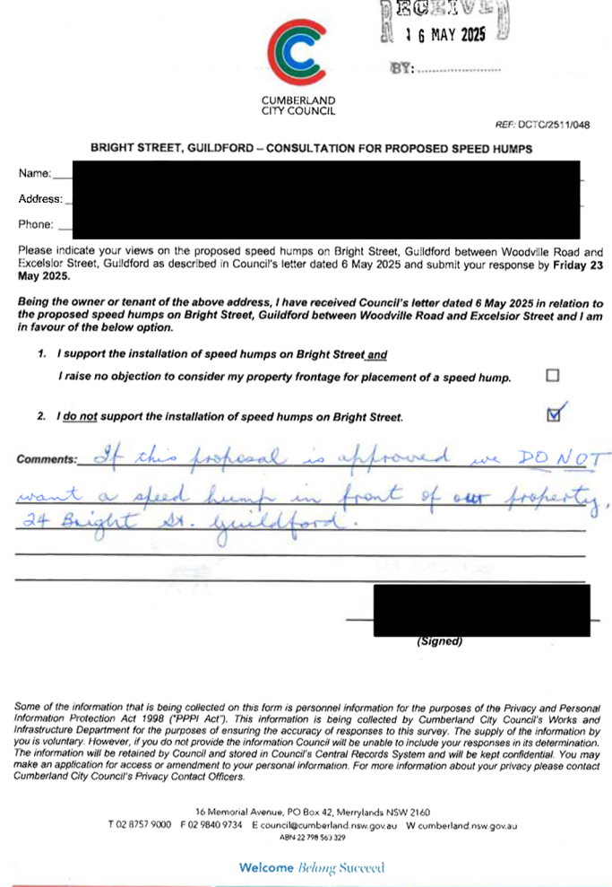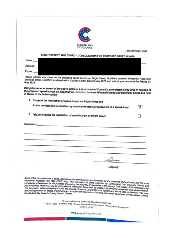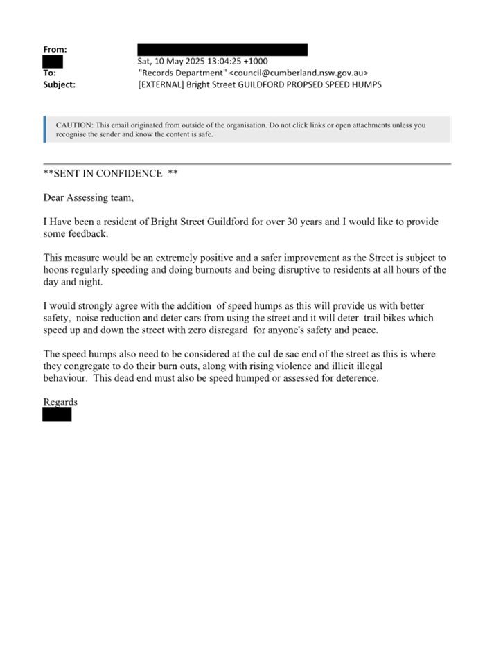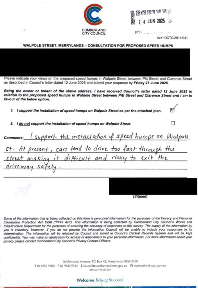 CLTF-25-205 HUNT STREET, GUILDFORD WEST - ROAD SAFETY CONCERNS – CONSULTATION RESULT