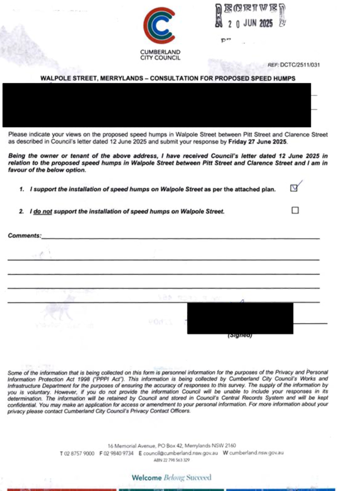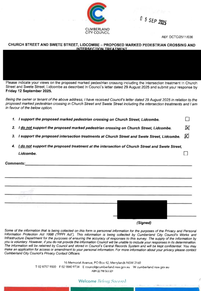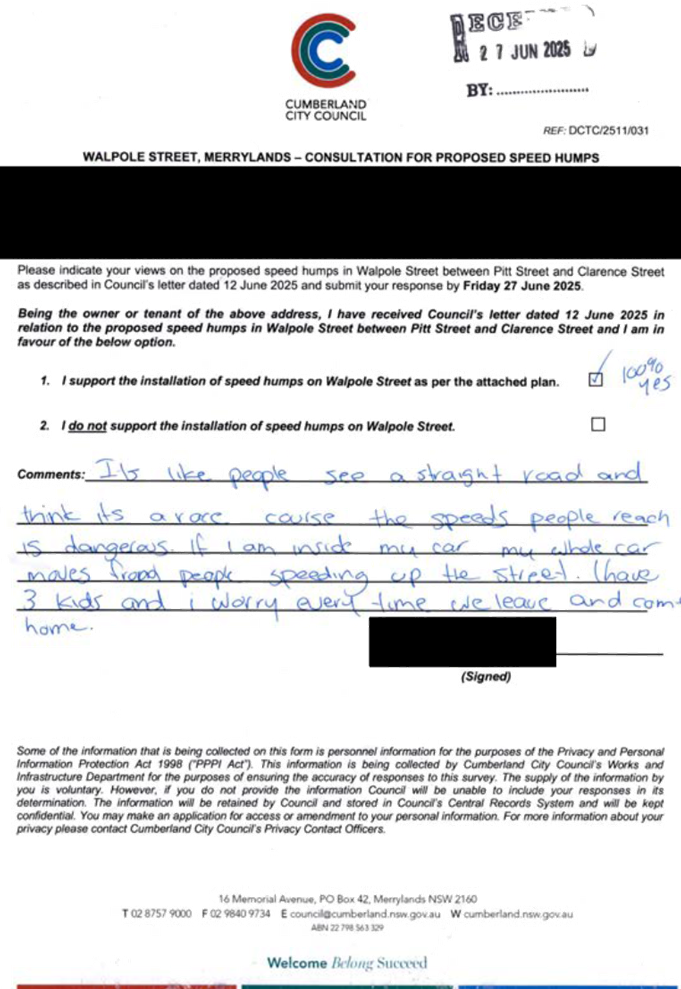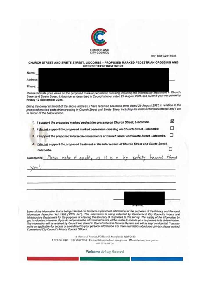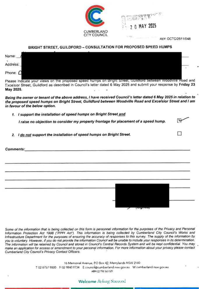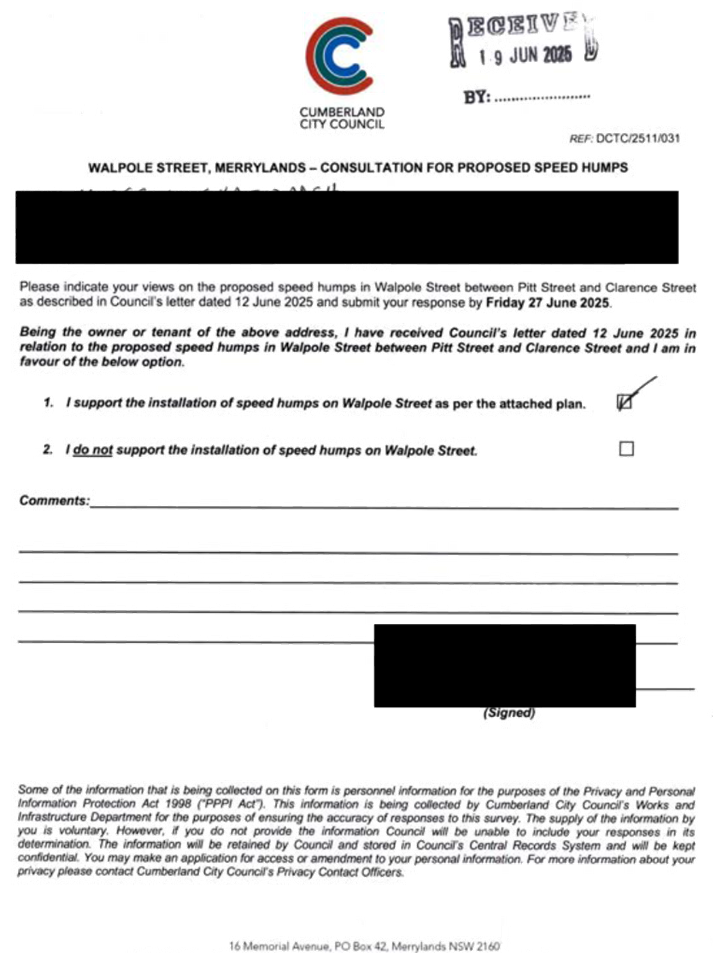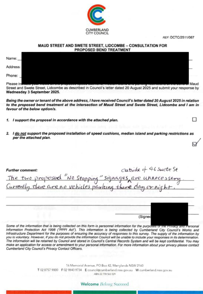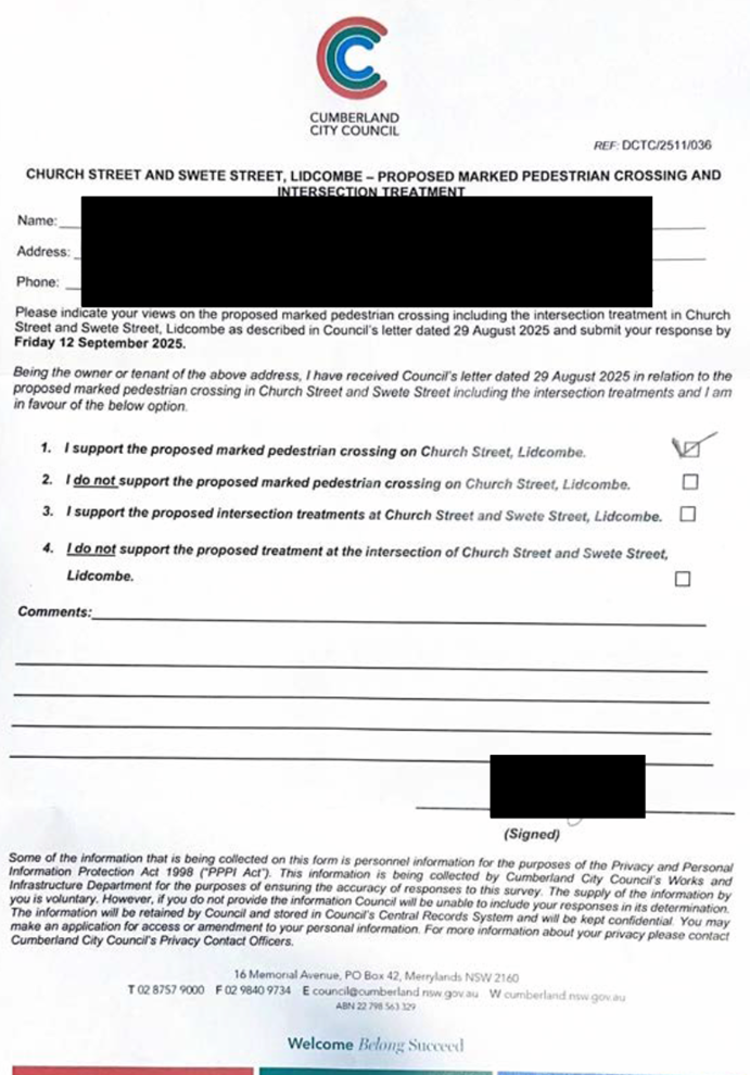 CLTF-25-205 HUNT STREET, GUILDFORD WEST - ROAD SAFETY CONCERNS – CONSULTATION RESULT