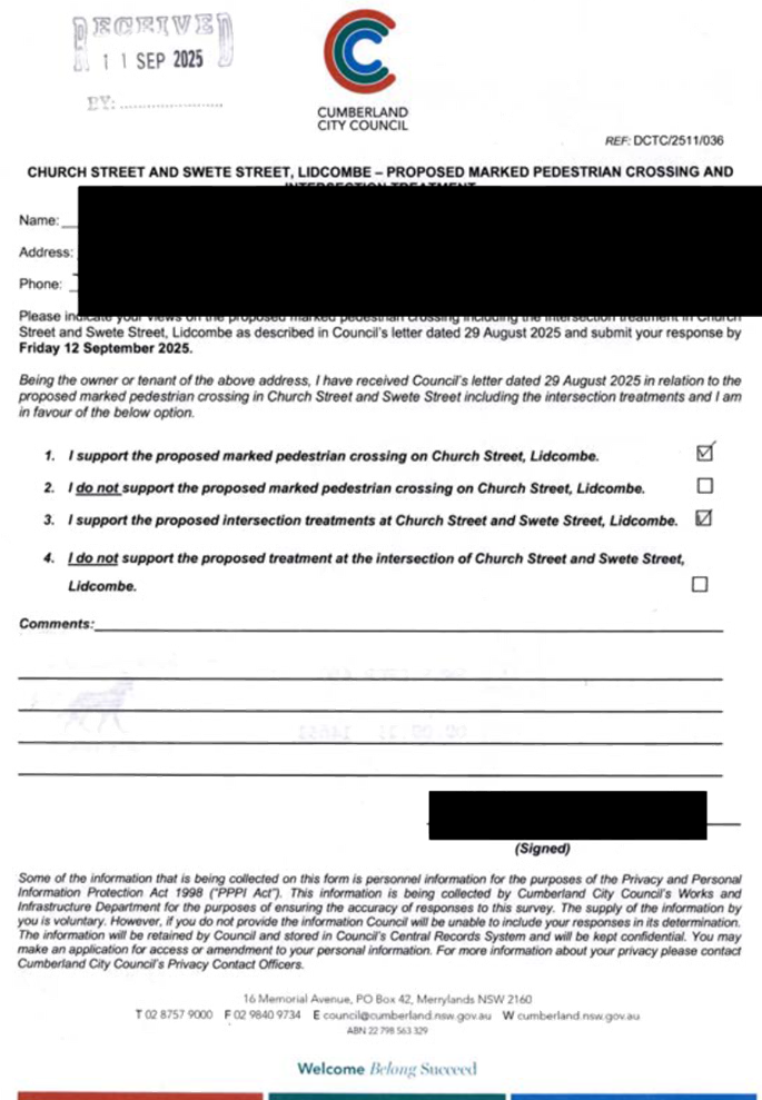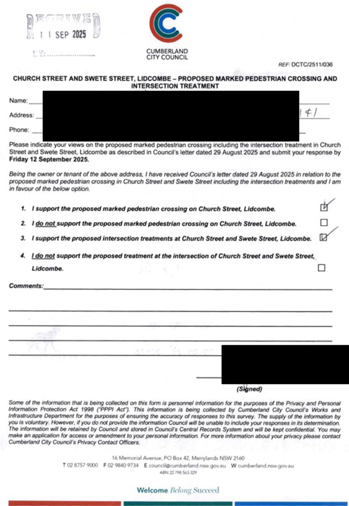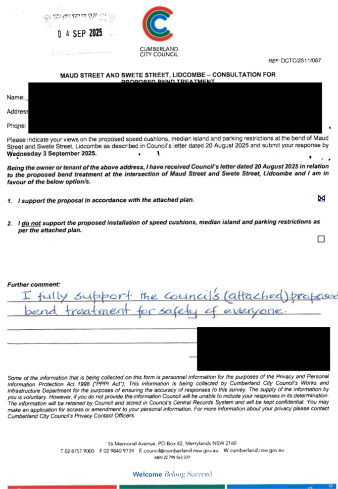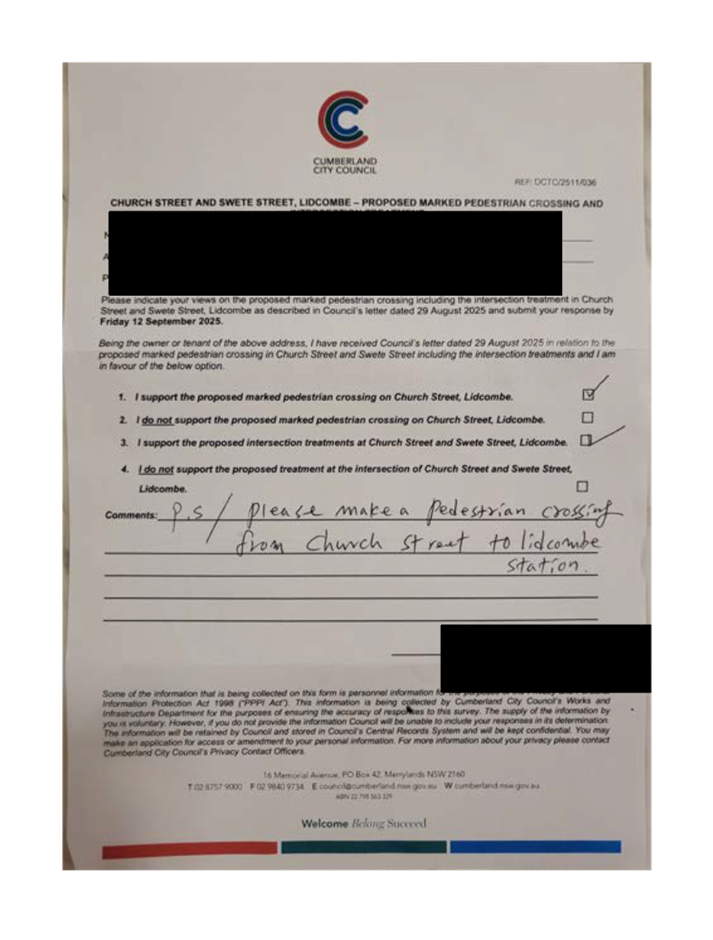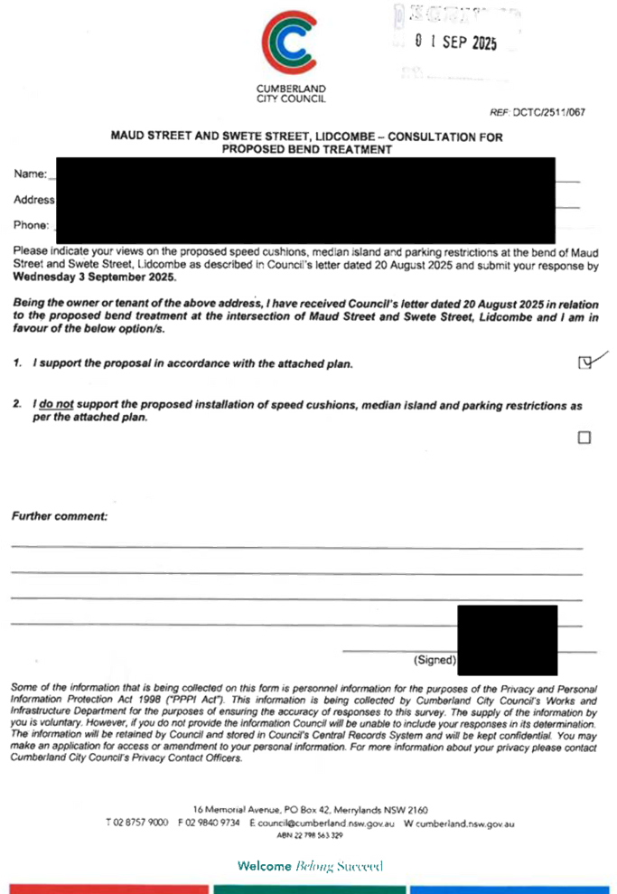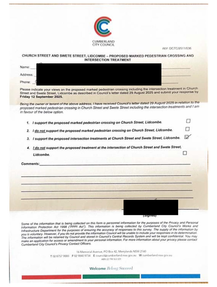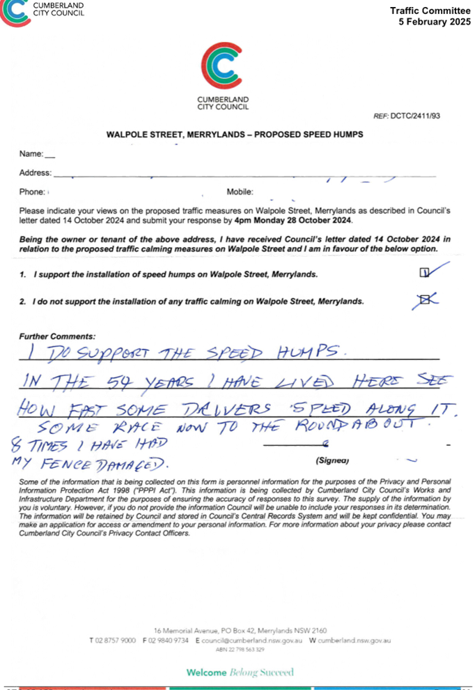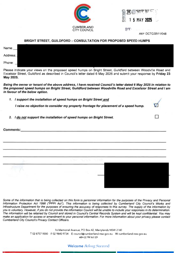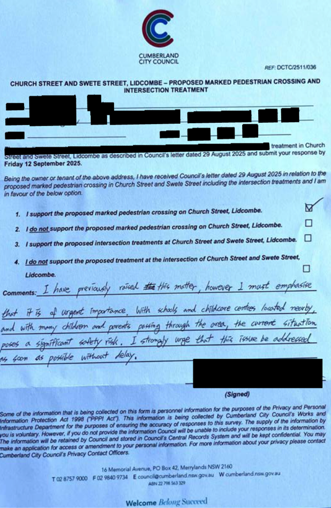 CLTF-25-205 HUNT STREET, GUILDFORD WEST - ROAD SAFETY CONCERNS – CONSULTATION RESULT