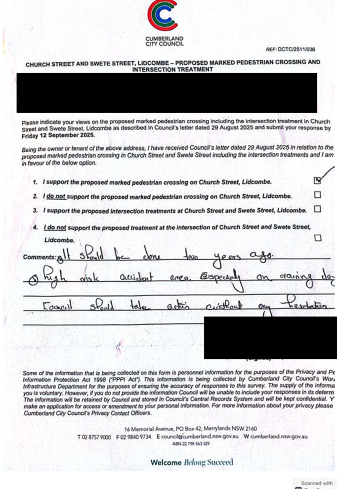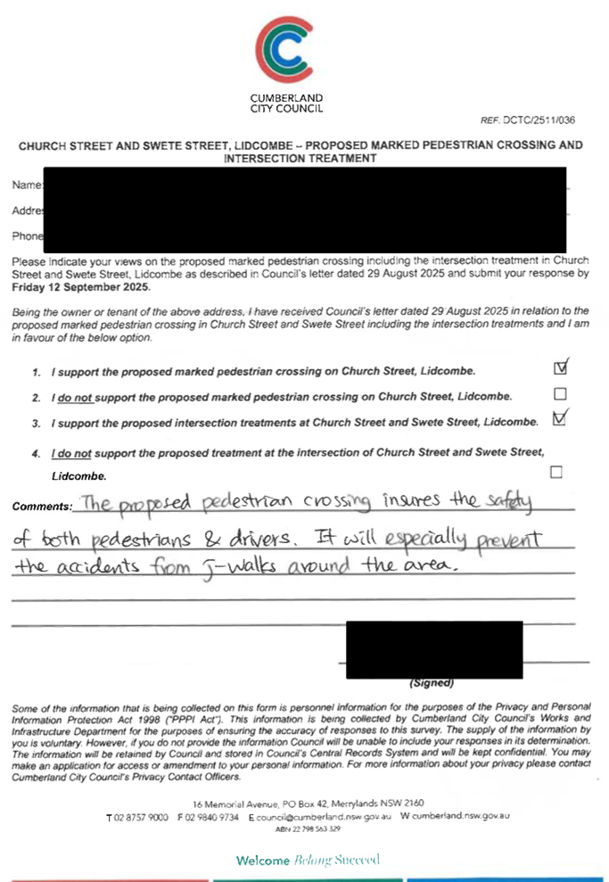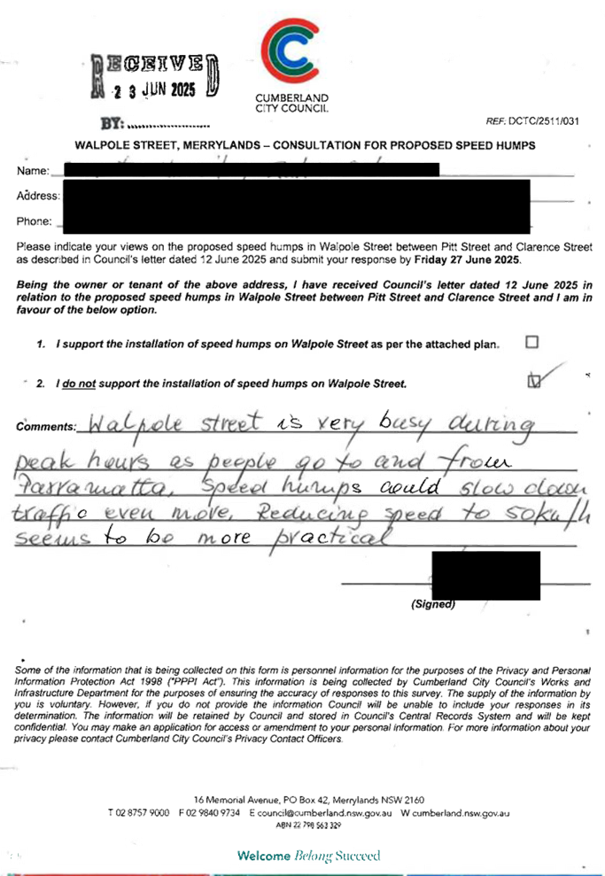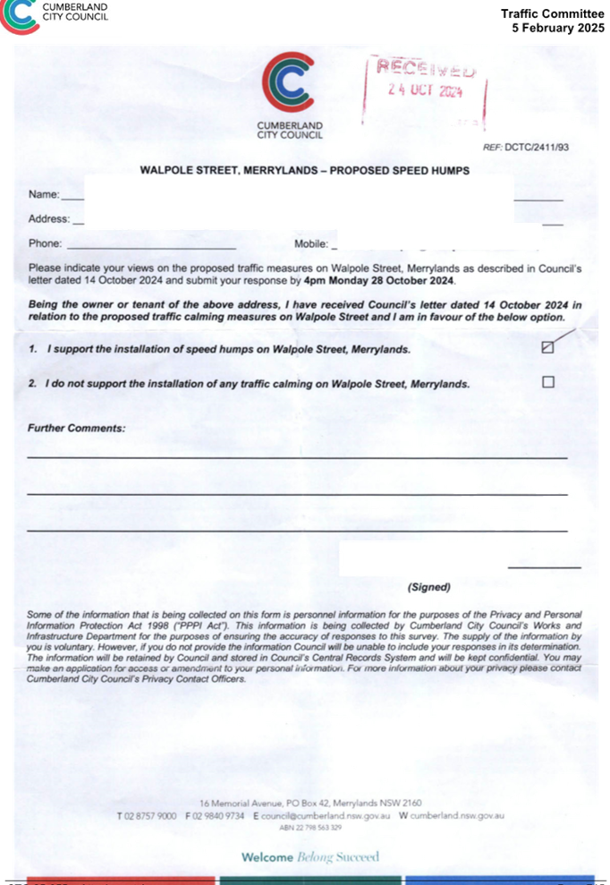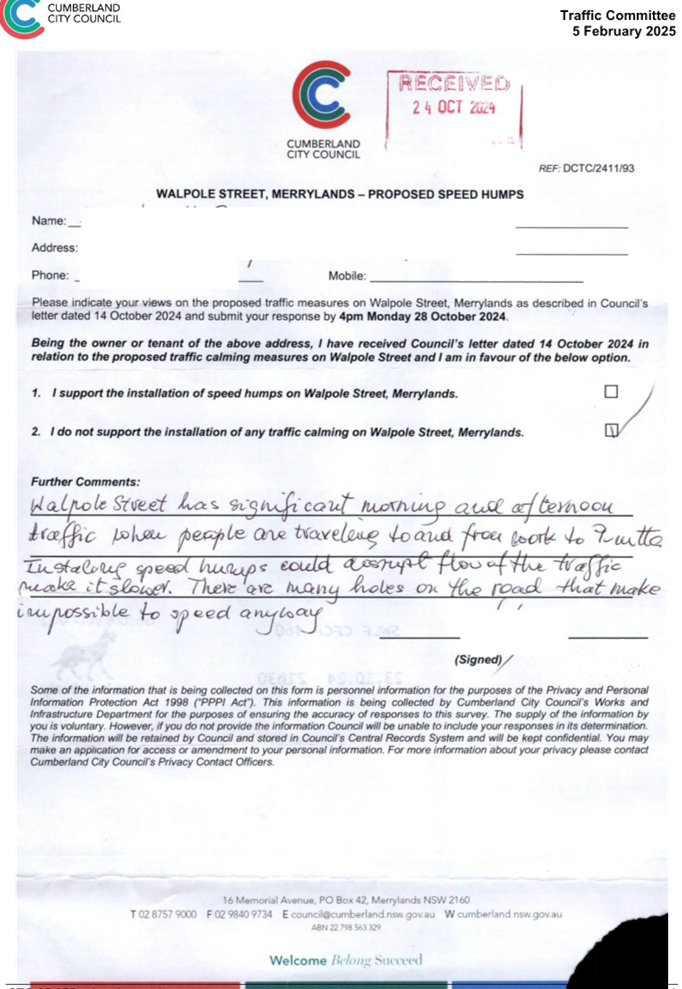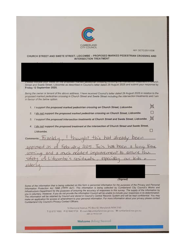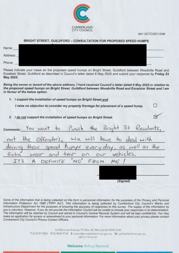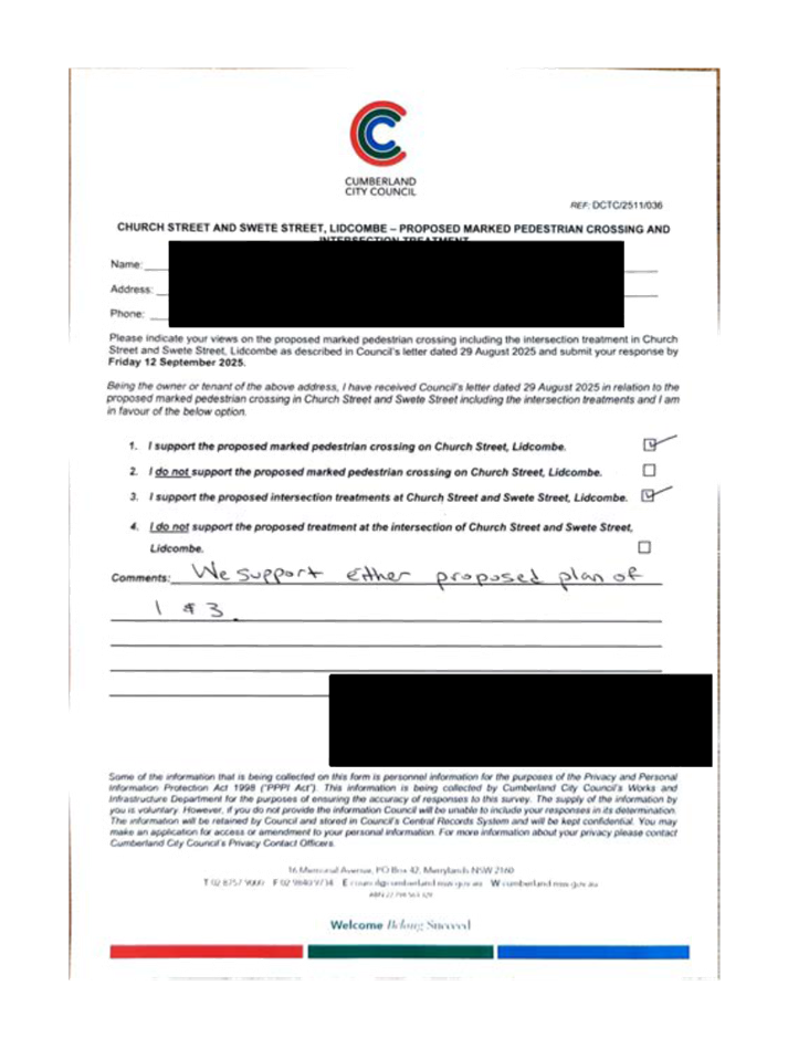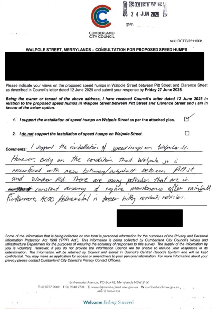 CLTF-25-205 HUNT STREET, GUILDFORD WEST - ROAD SAFETY CONCERNS – CONSULTATION RESULT