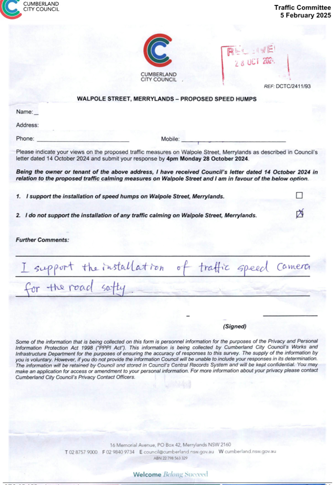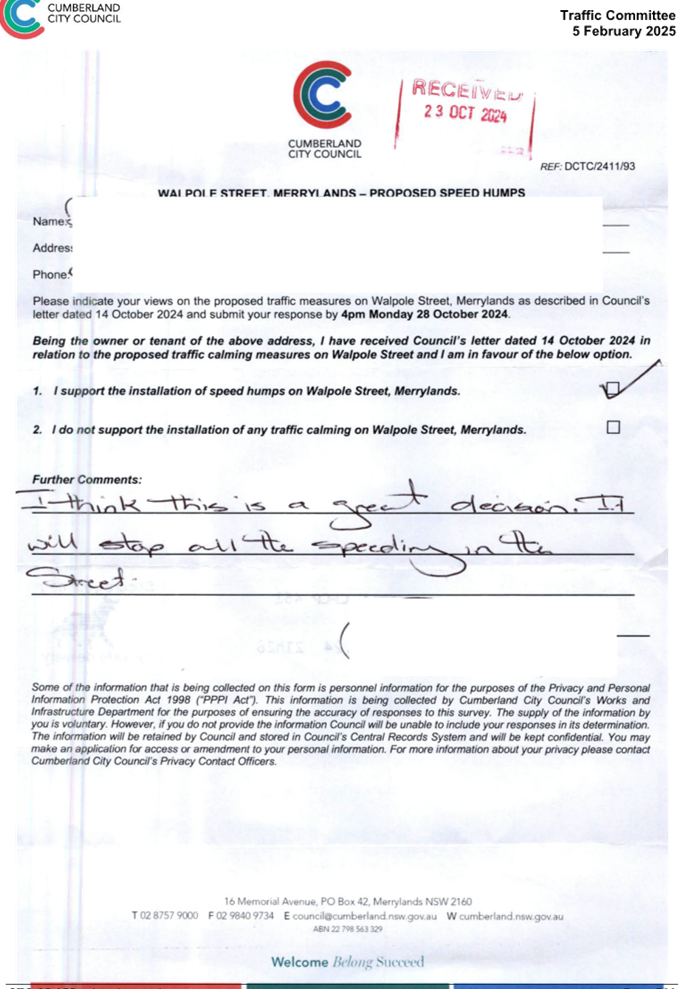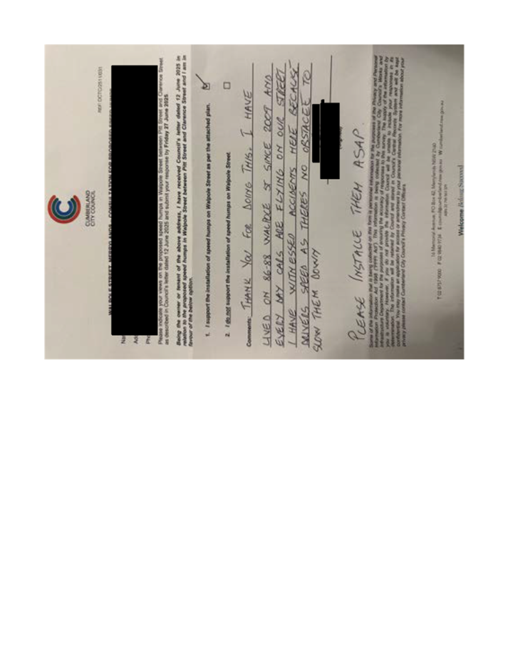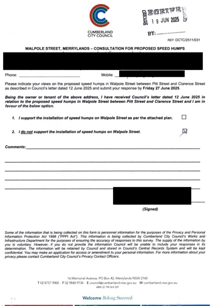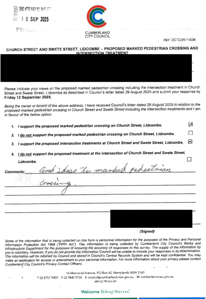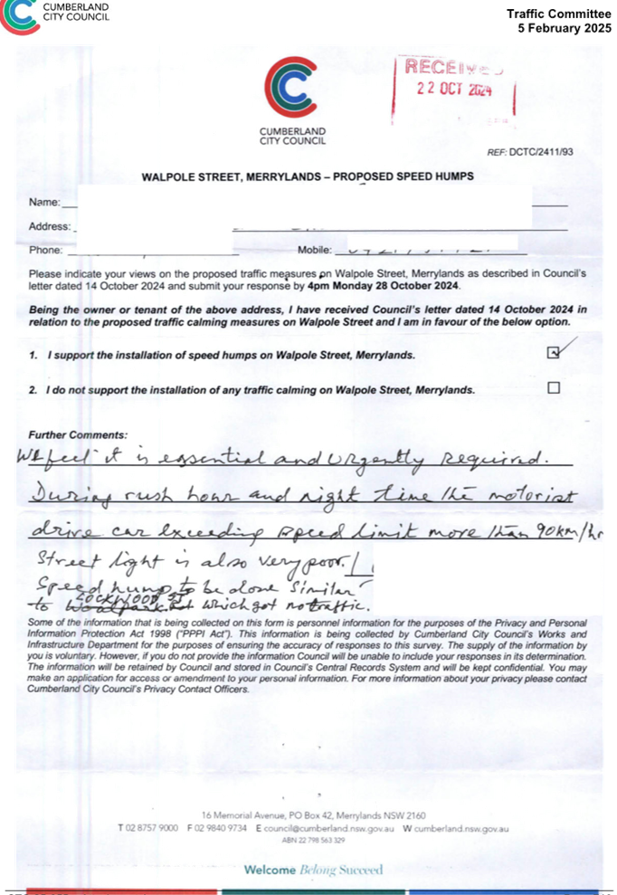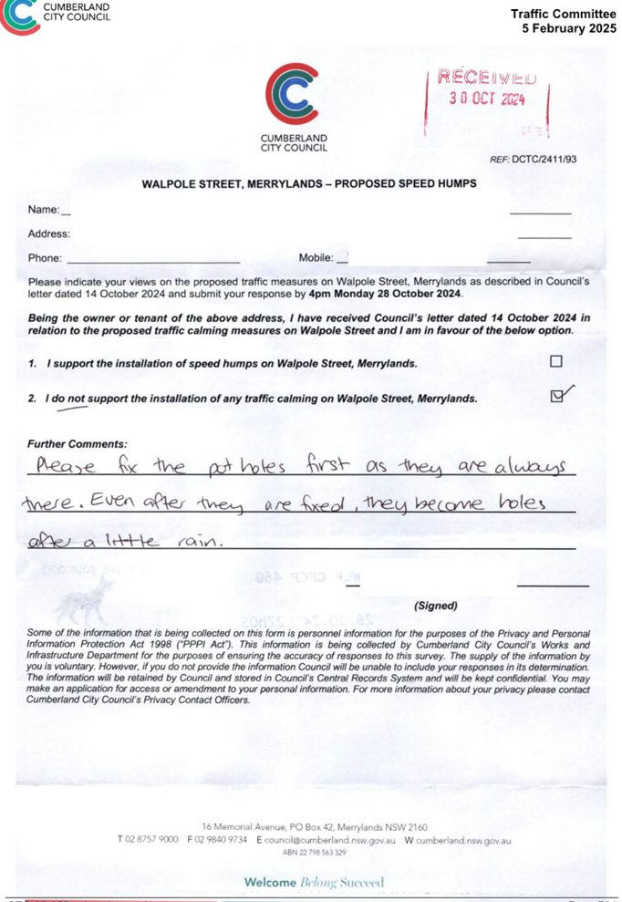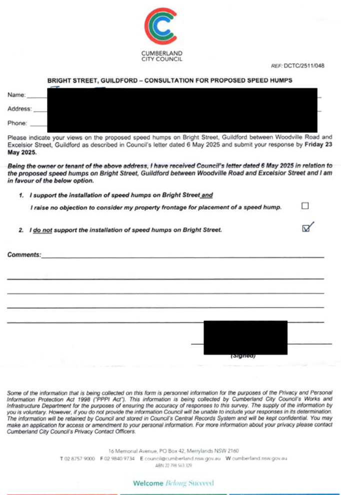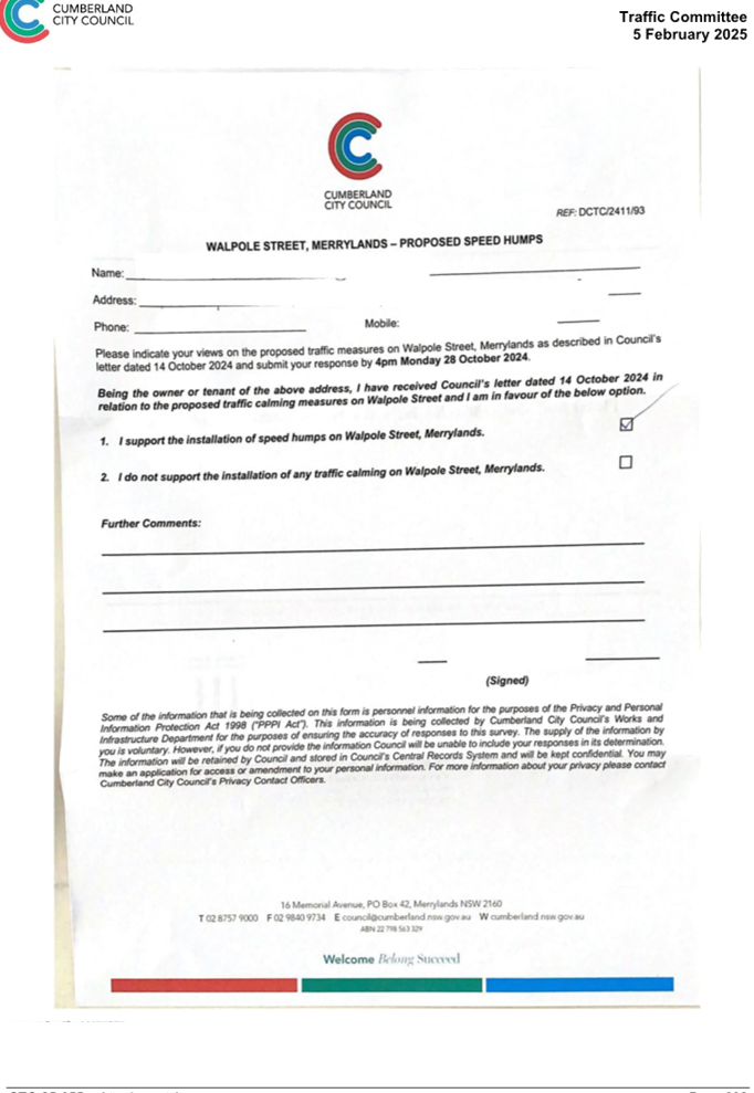 CLTF-25-205 HUNT STREET, GUILDFORD WEST - ROAD SAFETY CONCERNS – CONSULTATION RESULT