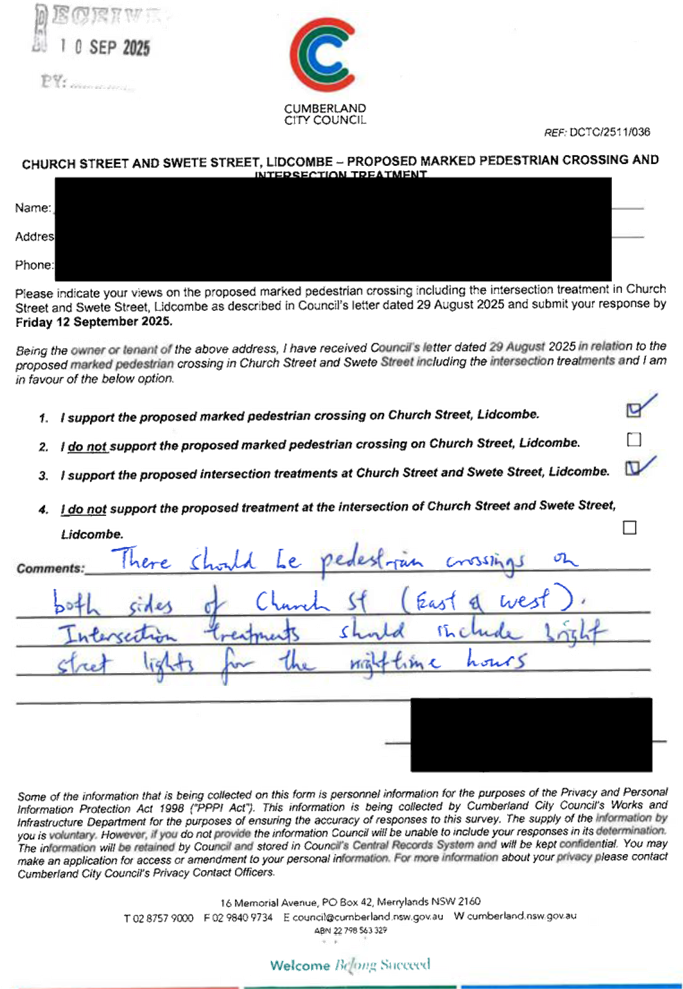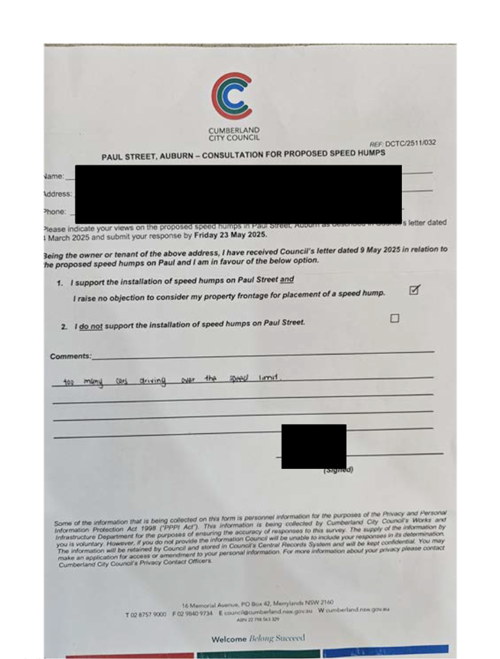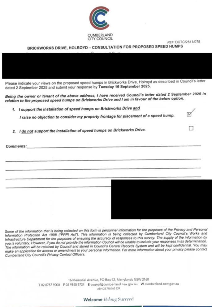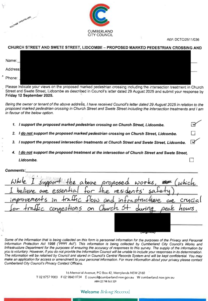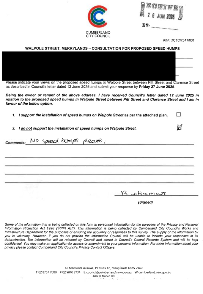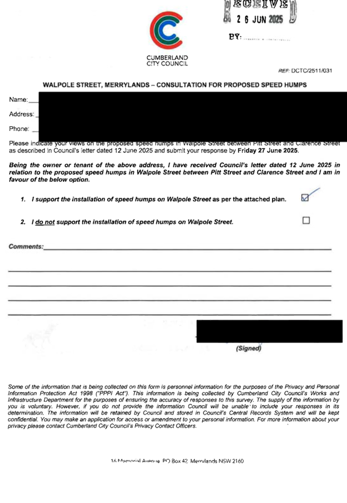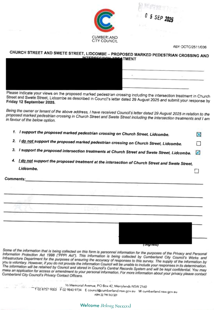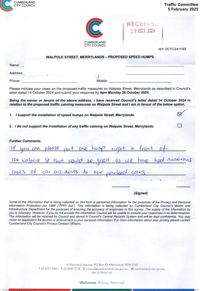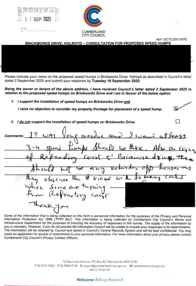 CLTF-25-205 HUNT STREET, GUILDFORD WEST - ROAD SAFETY CONCERNS – CONSULTATION RESULT