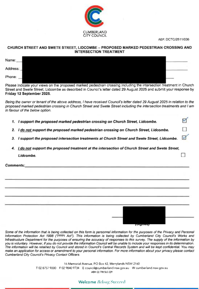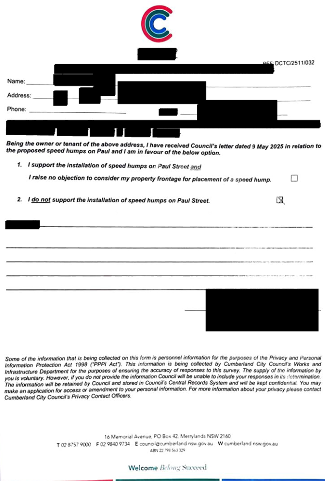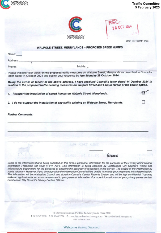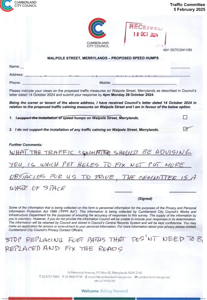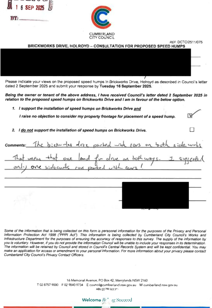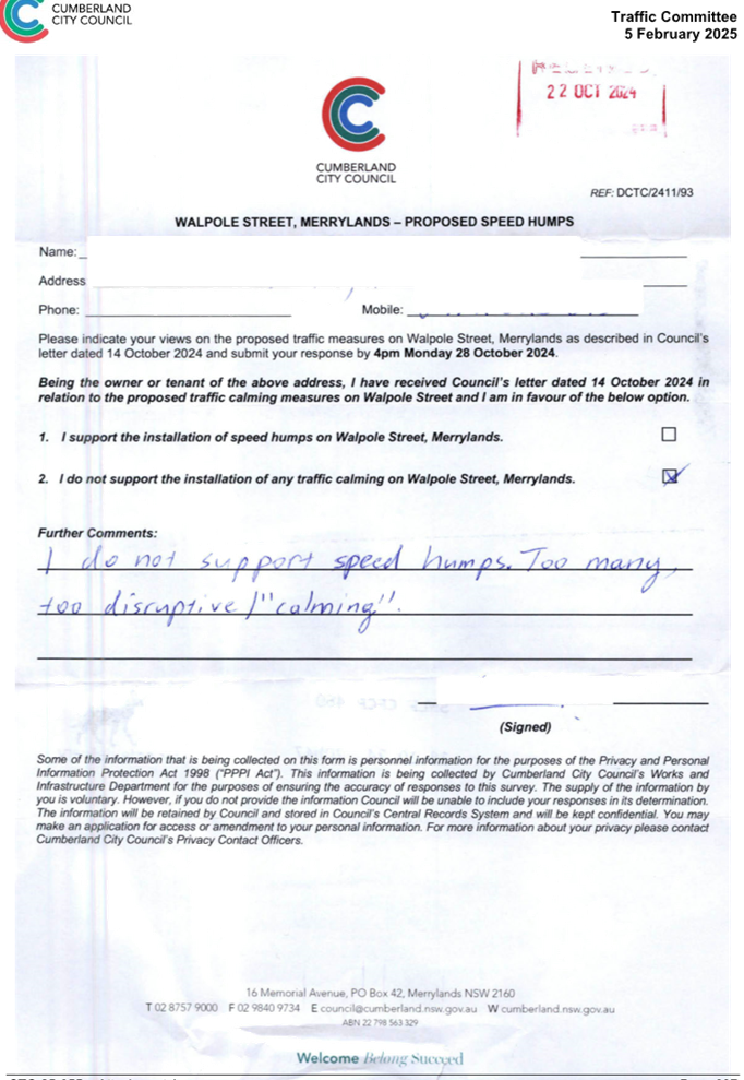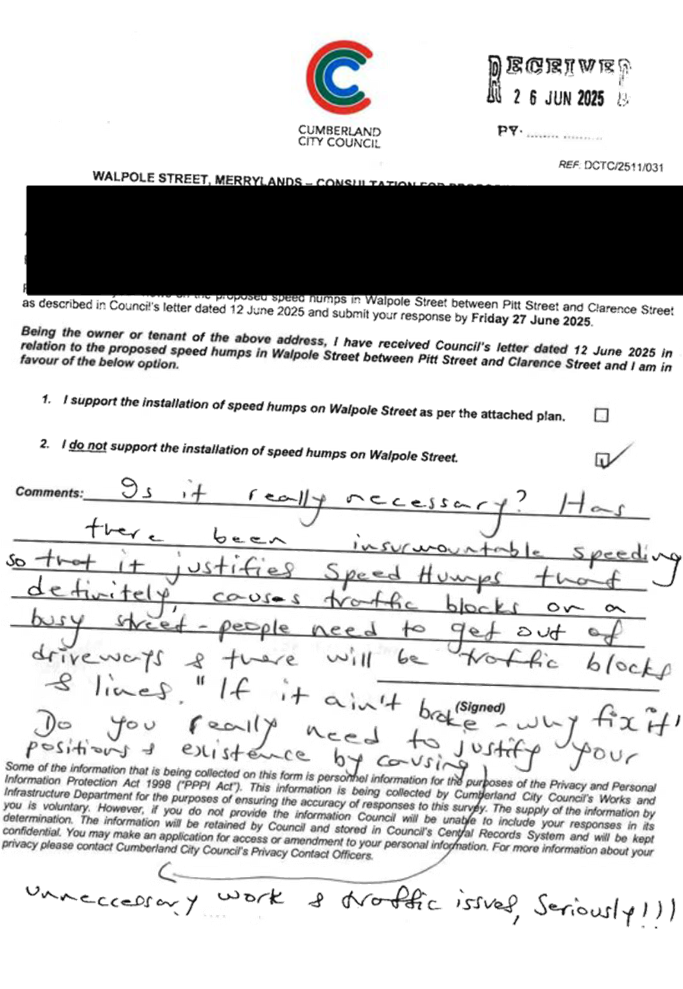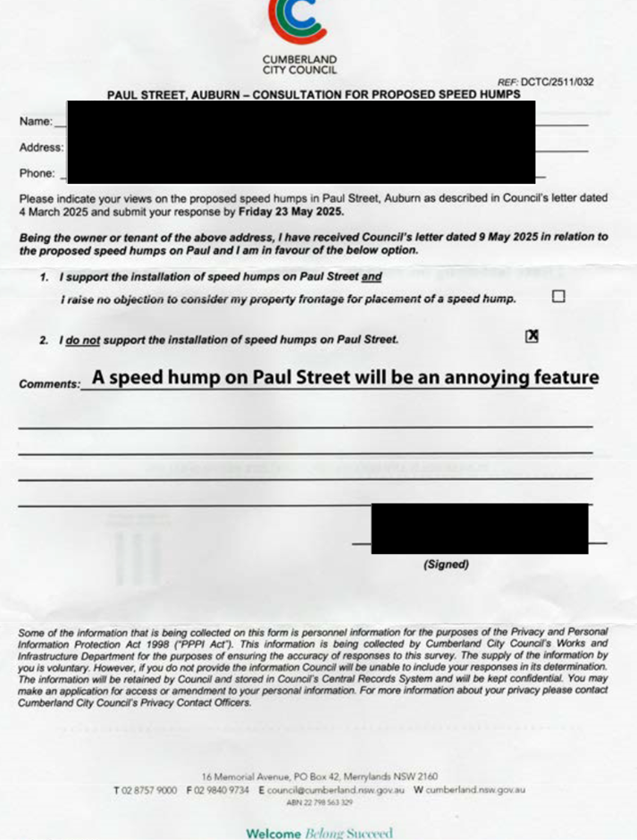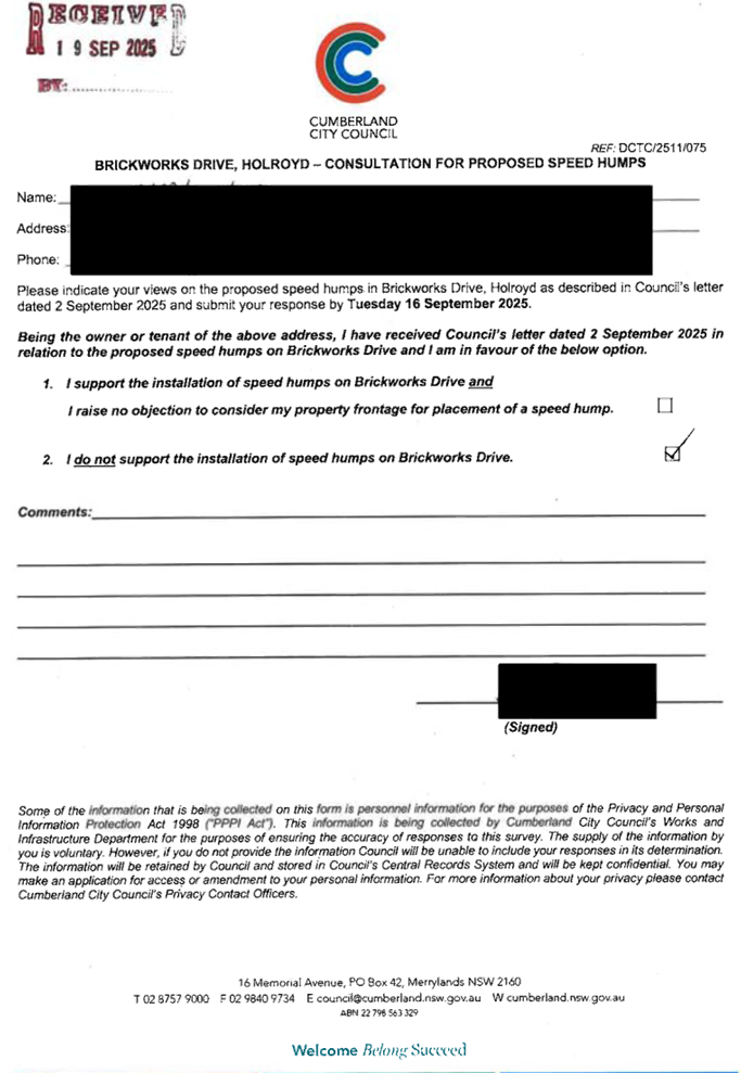CLTF-25-205 HUNT STREET, GUILDFORD WEST - ROAD SAFETY CONCERNS – CONSULTATION RESULT