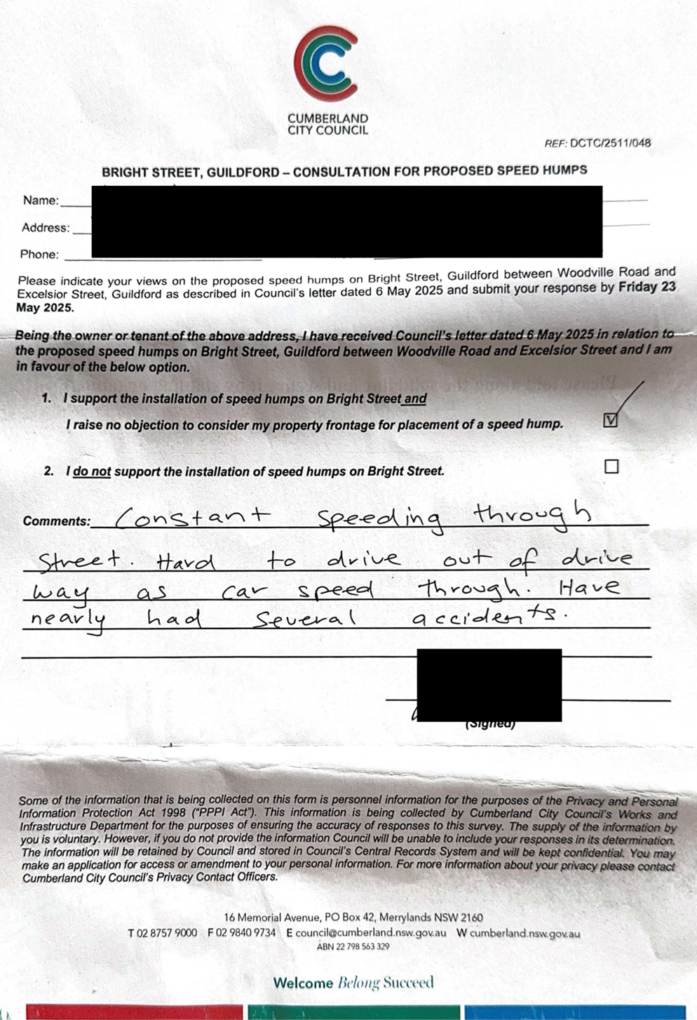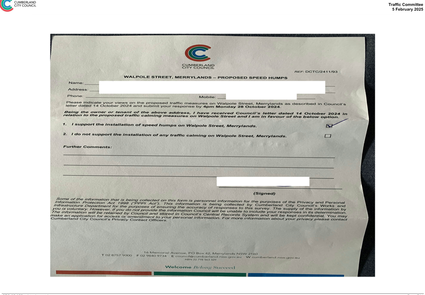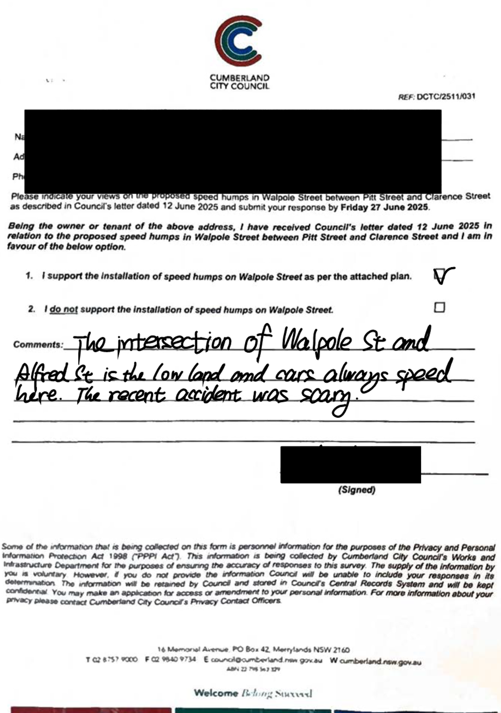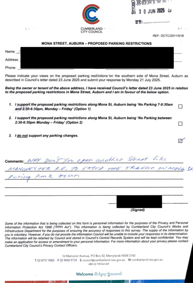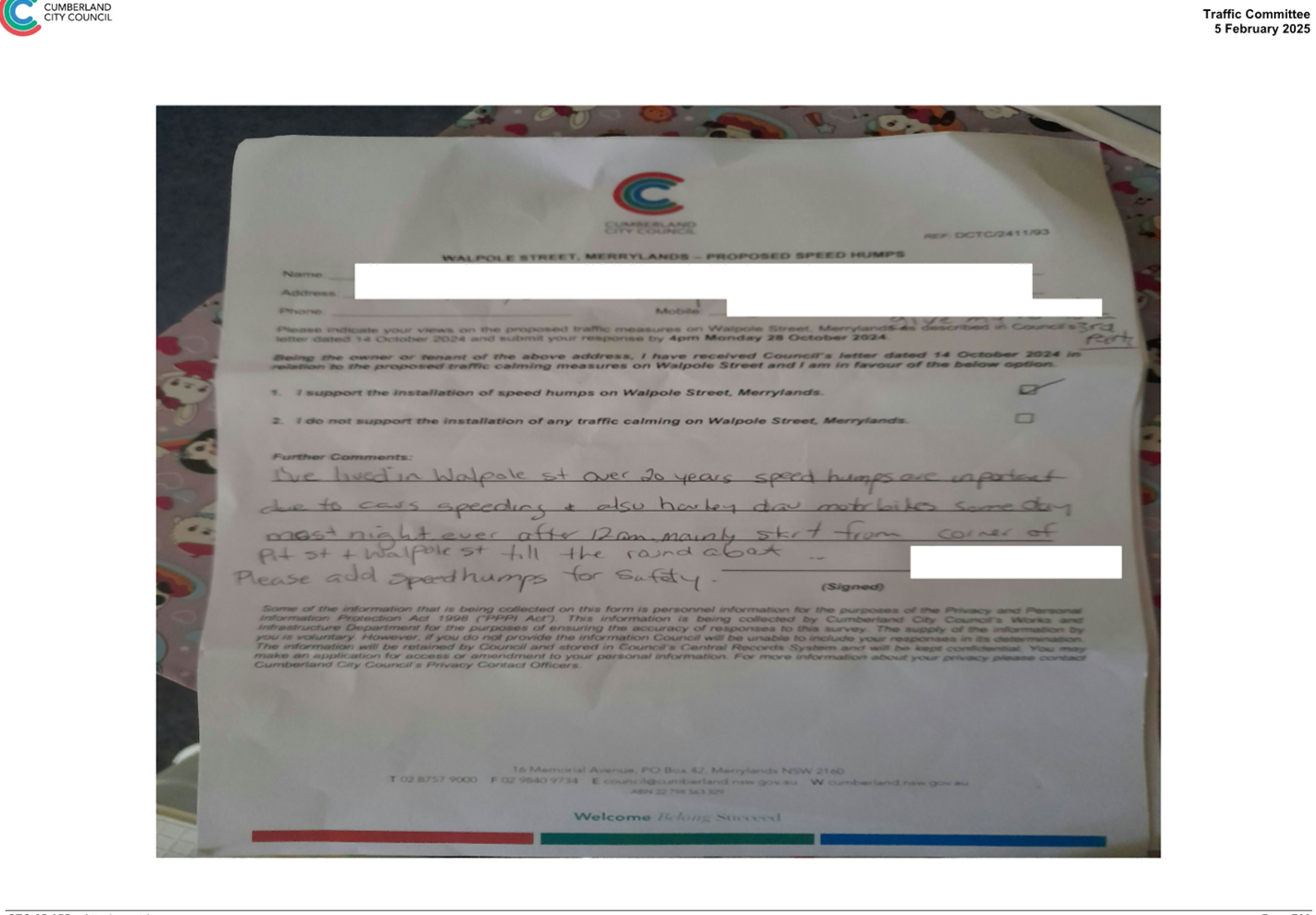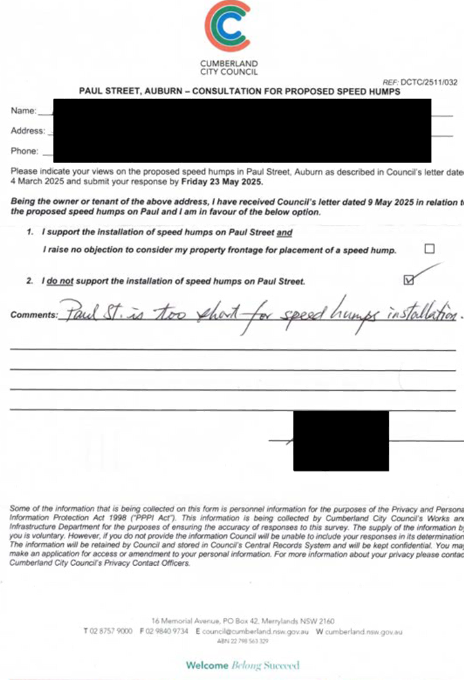CLTF-25-205 HUNT STREET, GUILDFORD WEST - ROAD SAFETY CONCERNS – CONSULTATION RESULT