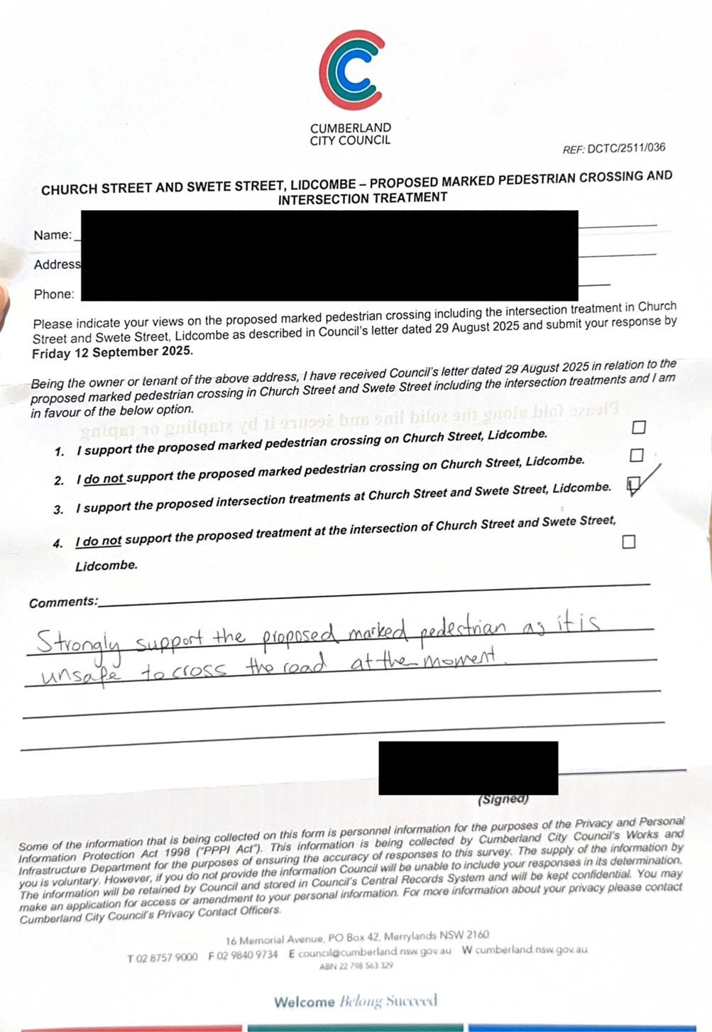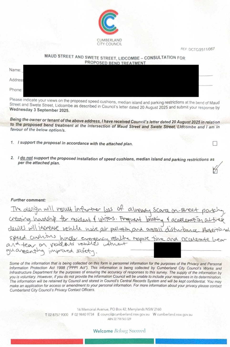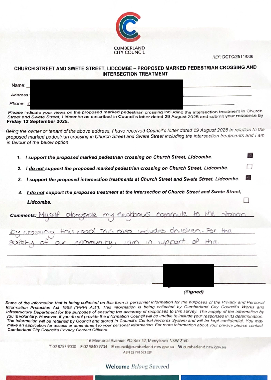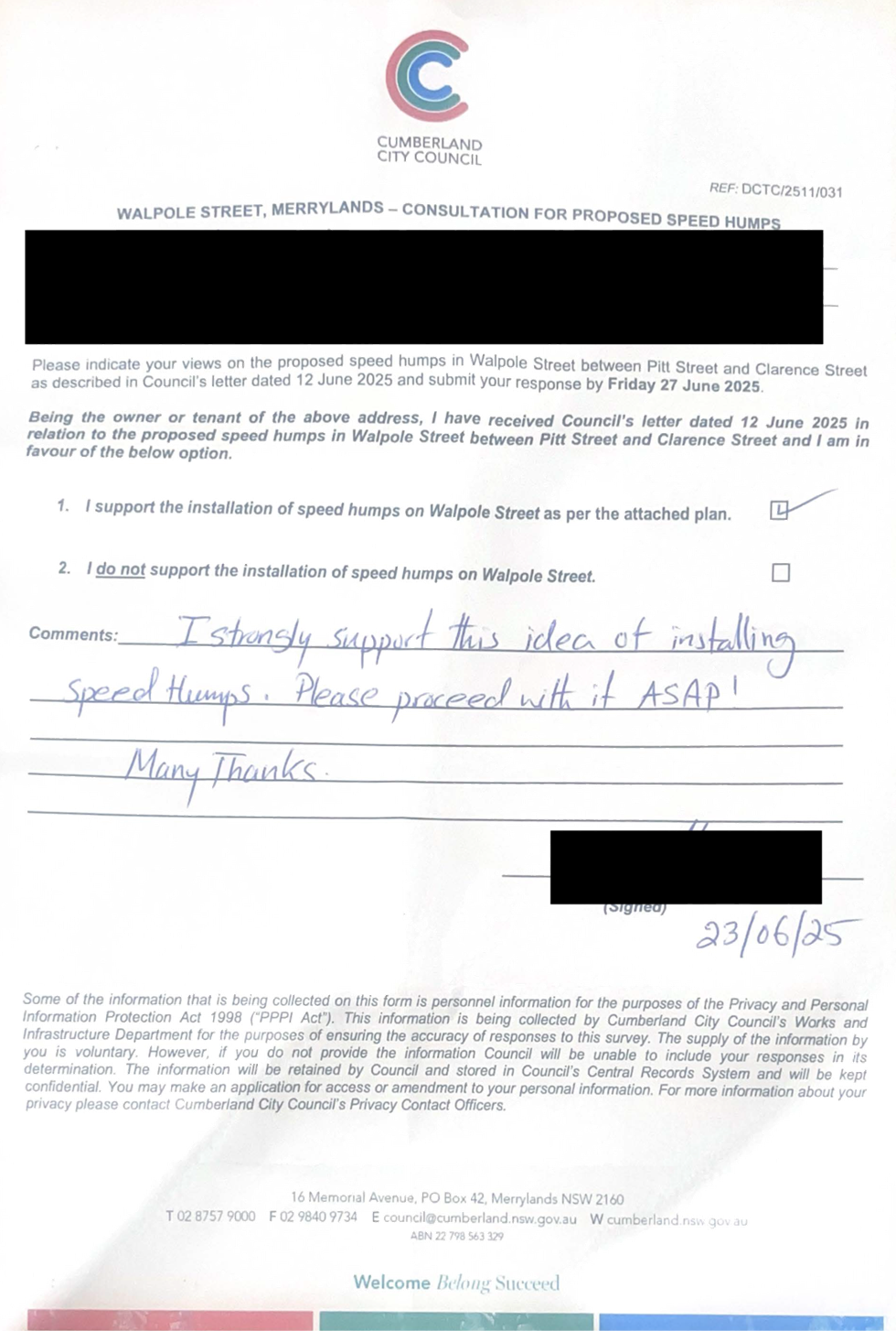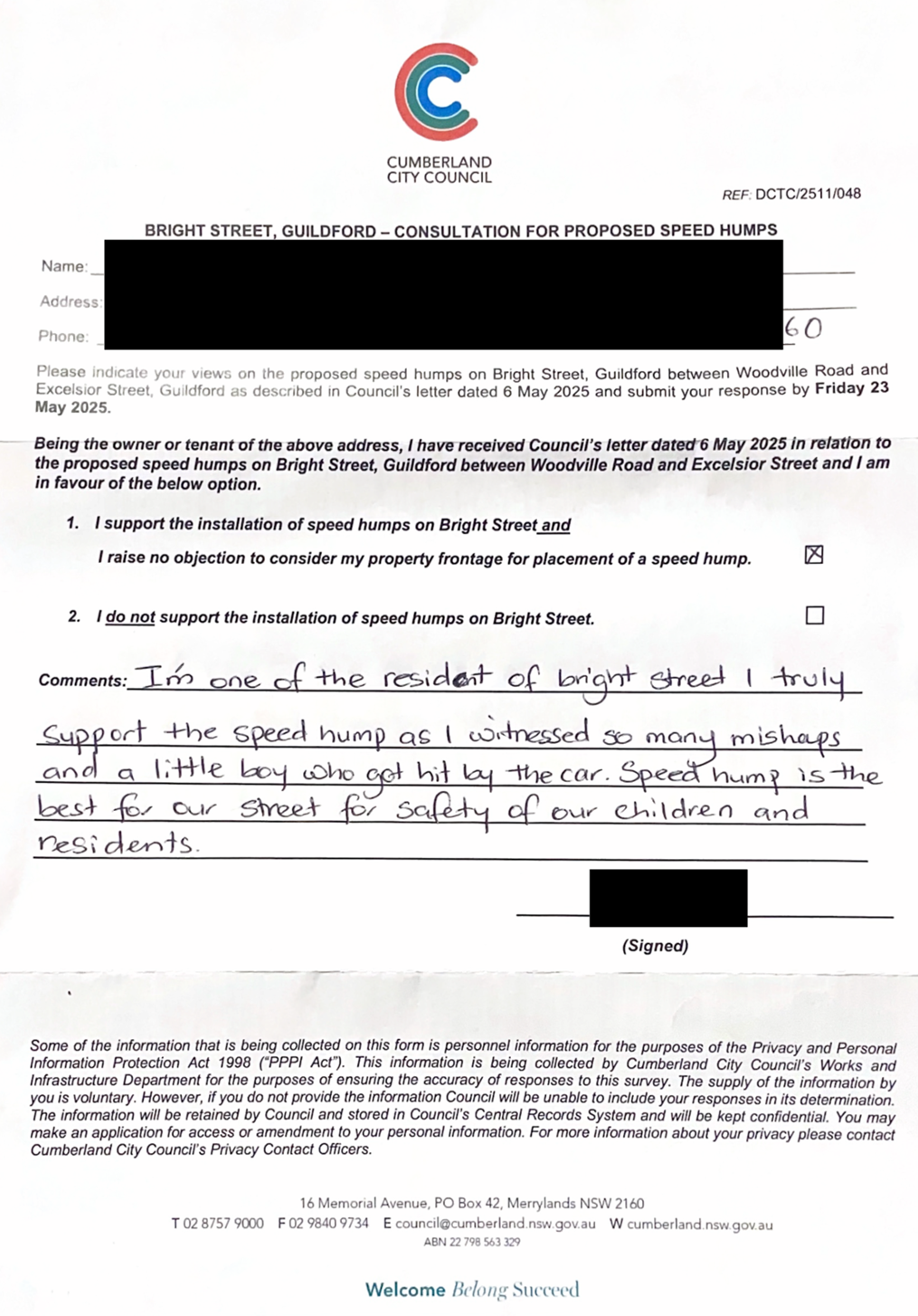 CLTF-25-205 HUNT STREET, GUILDFORD WEST - ROAD SAFETY CONCERNS – CONSULTATION RESULT