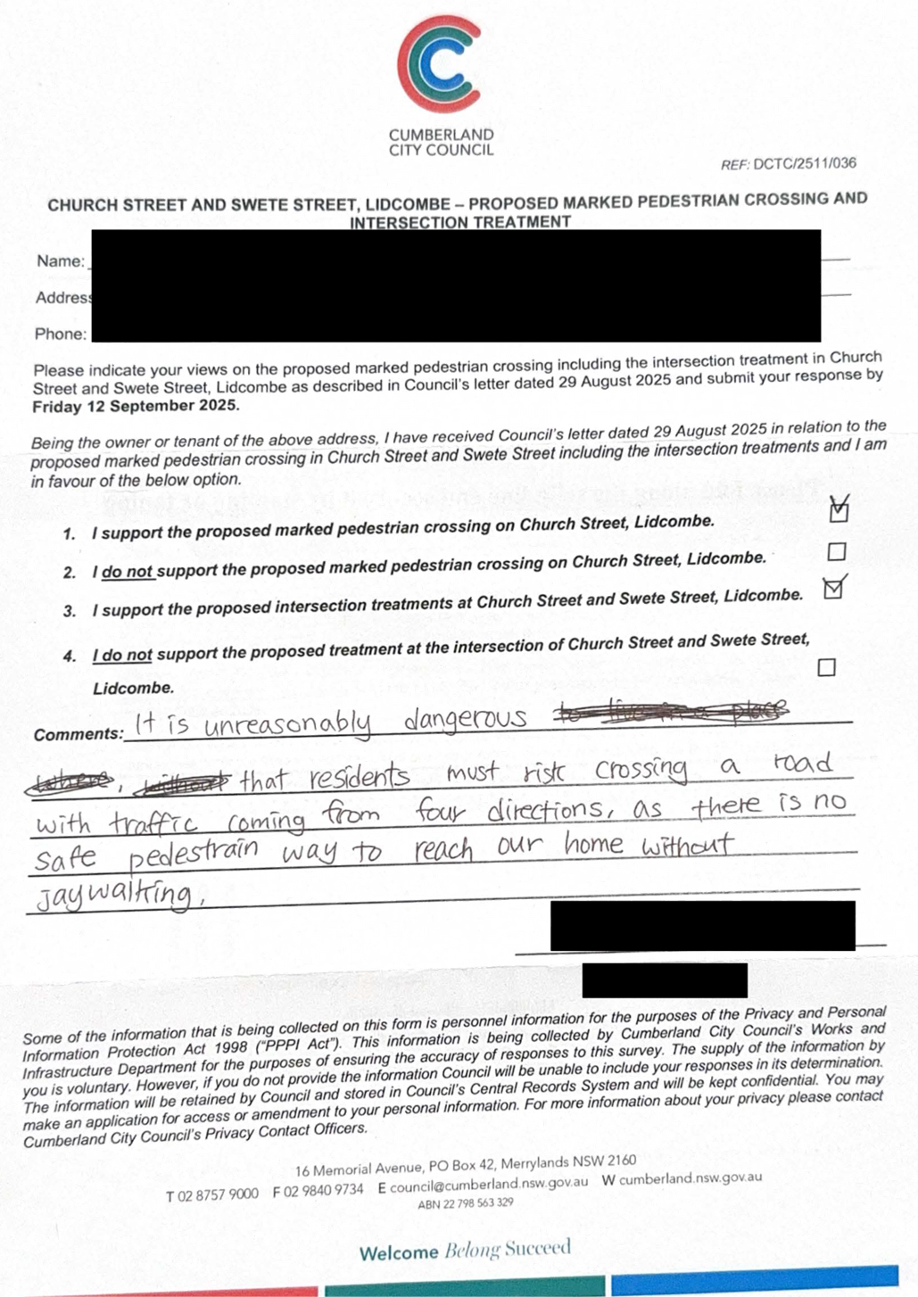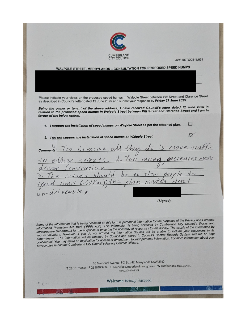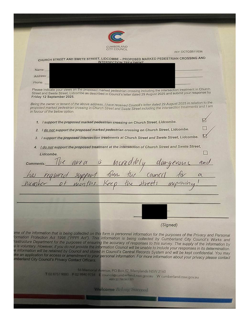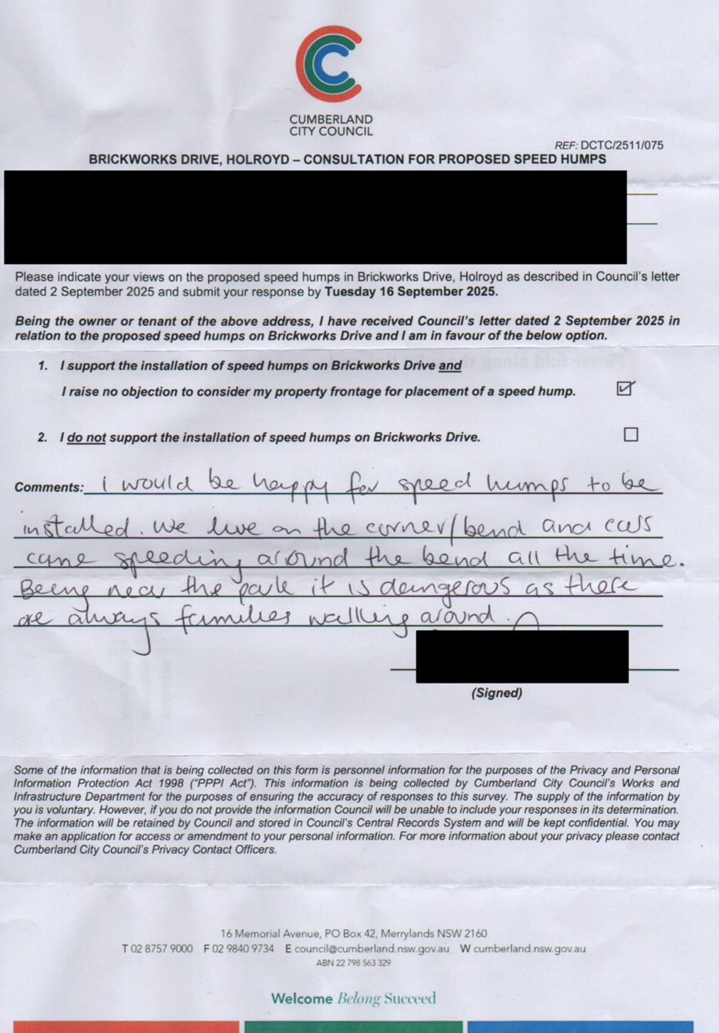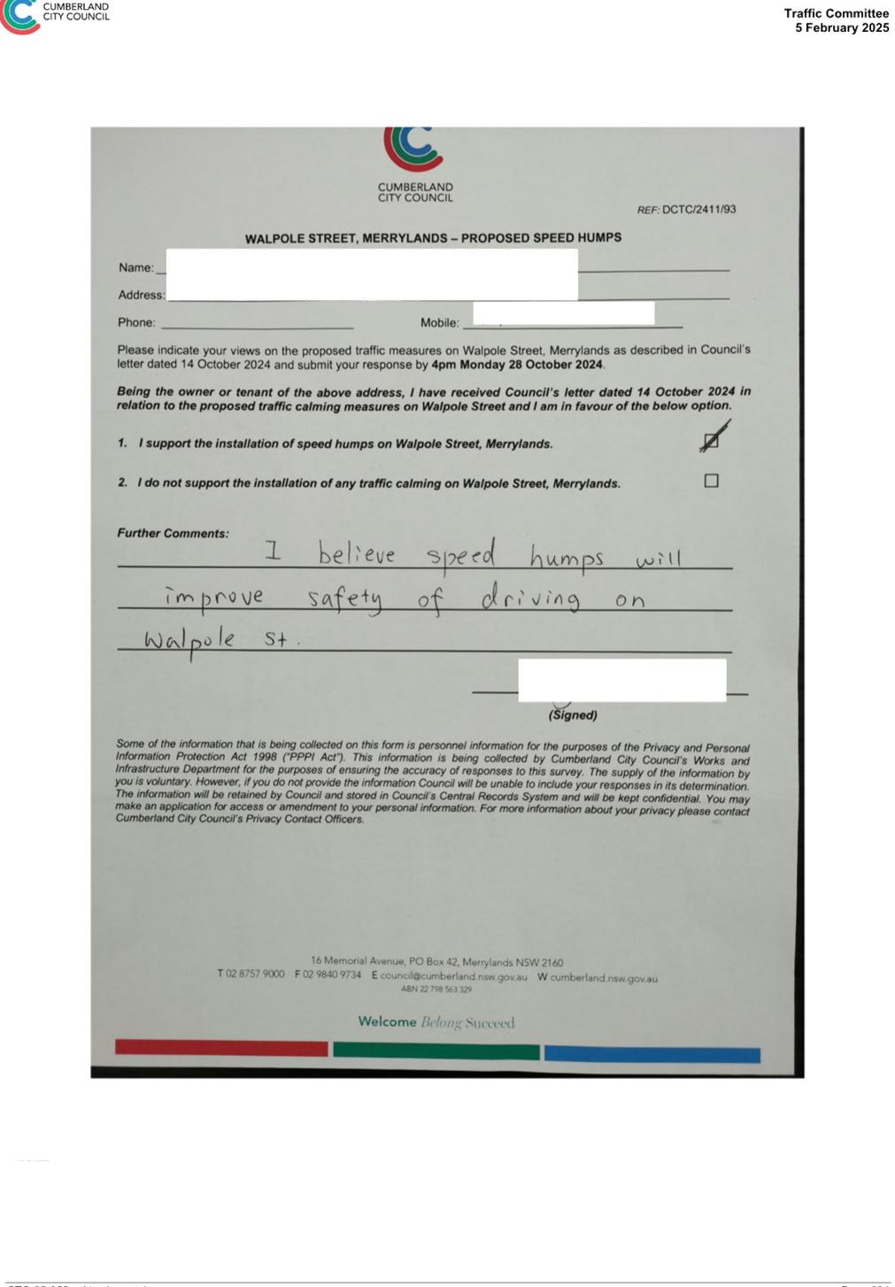 CLTF-25-205 HUNT STREET, GUILDFORD WEST - ROAD SAFETY CONCERNS – CONSULTATION RESULT