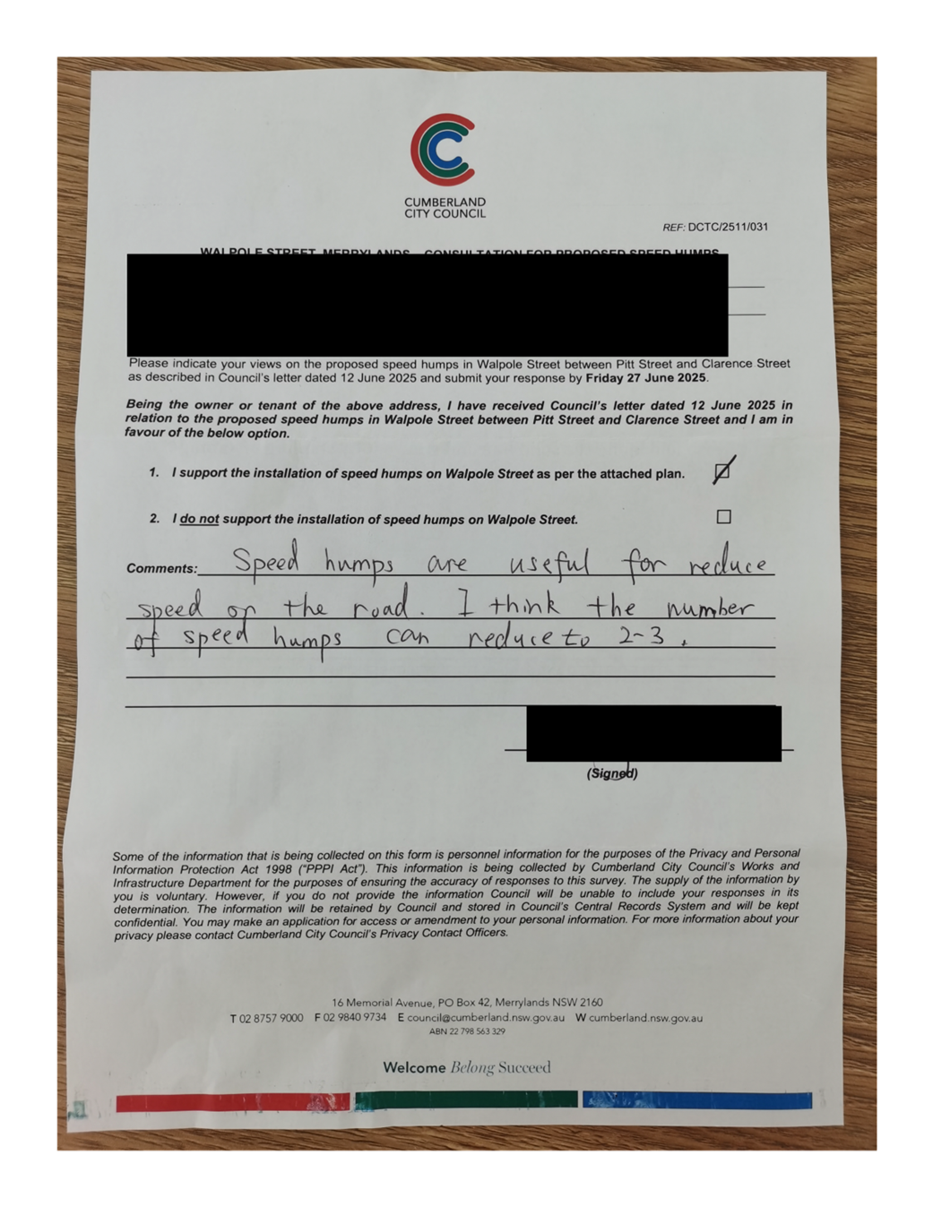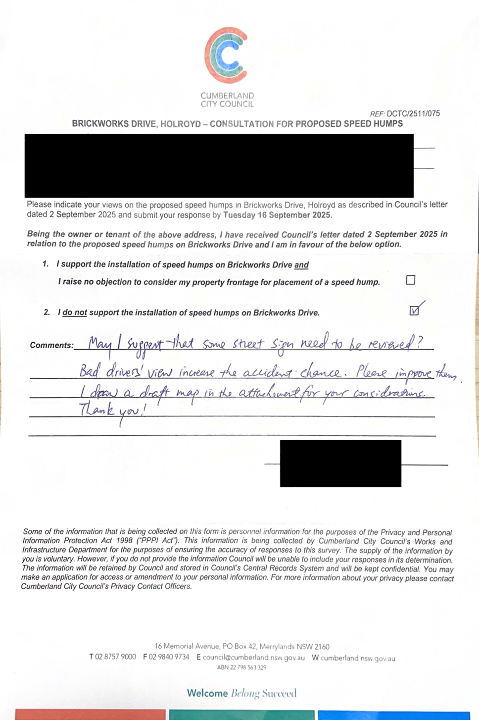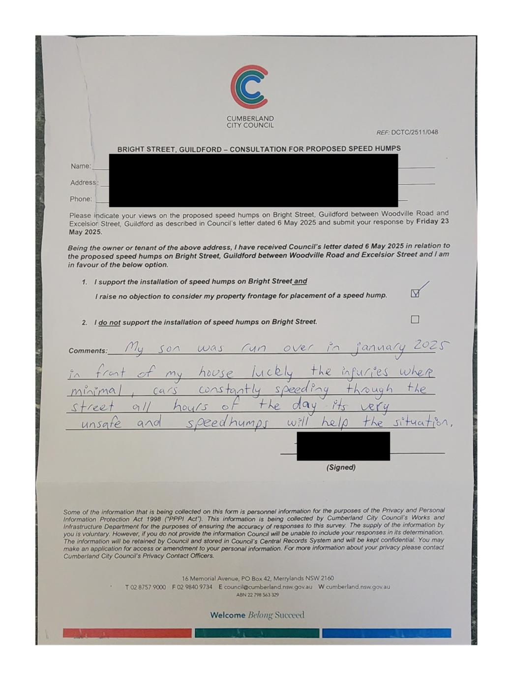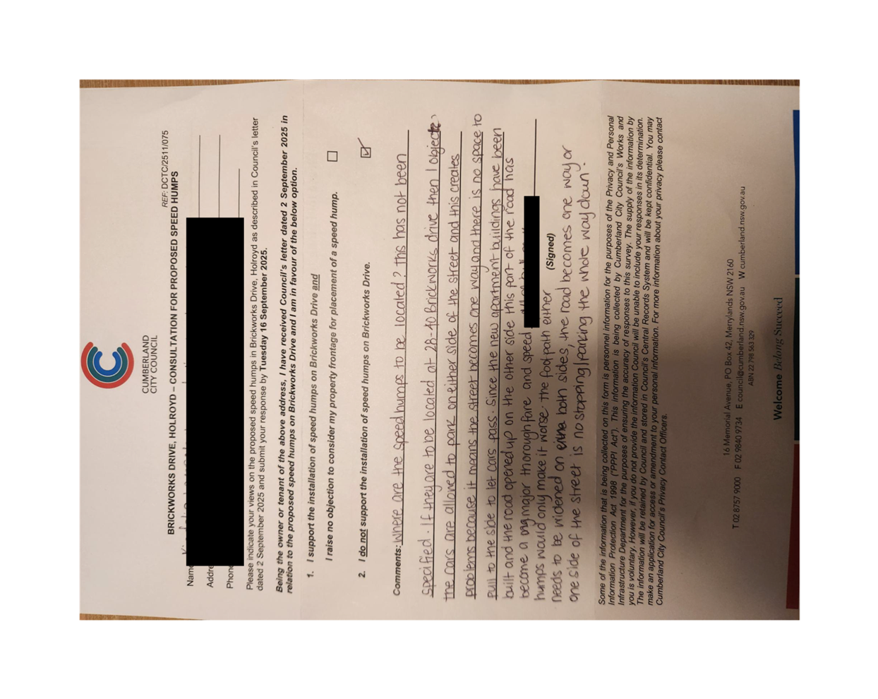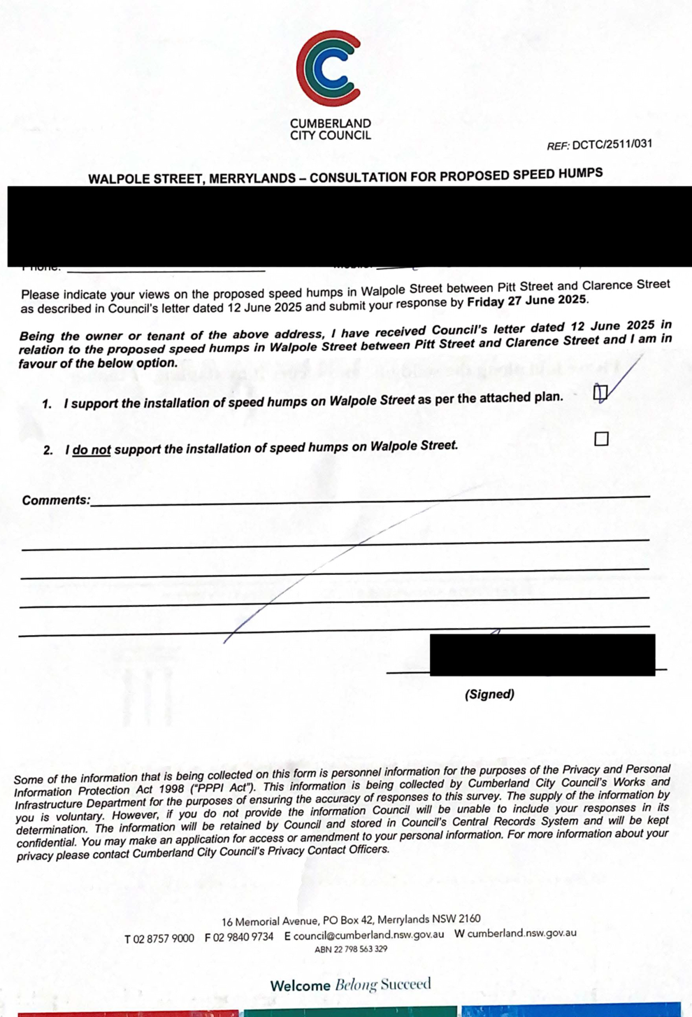 CLTF-25-205 HUNT STREET, GUILDFORD WEST - ROAD SAFETY CONCERNS – CONSULTATION RESULT
