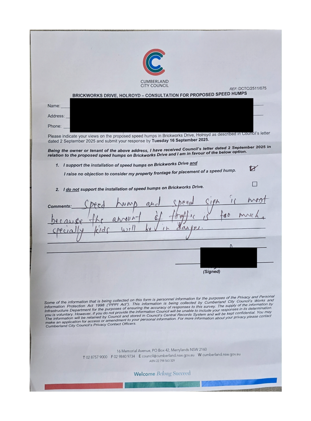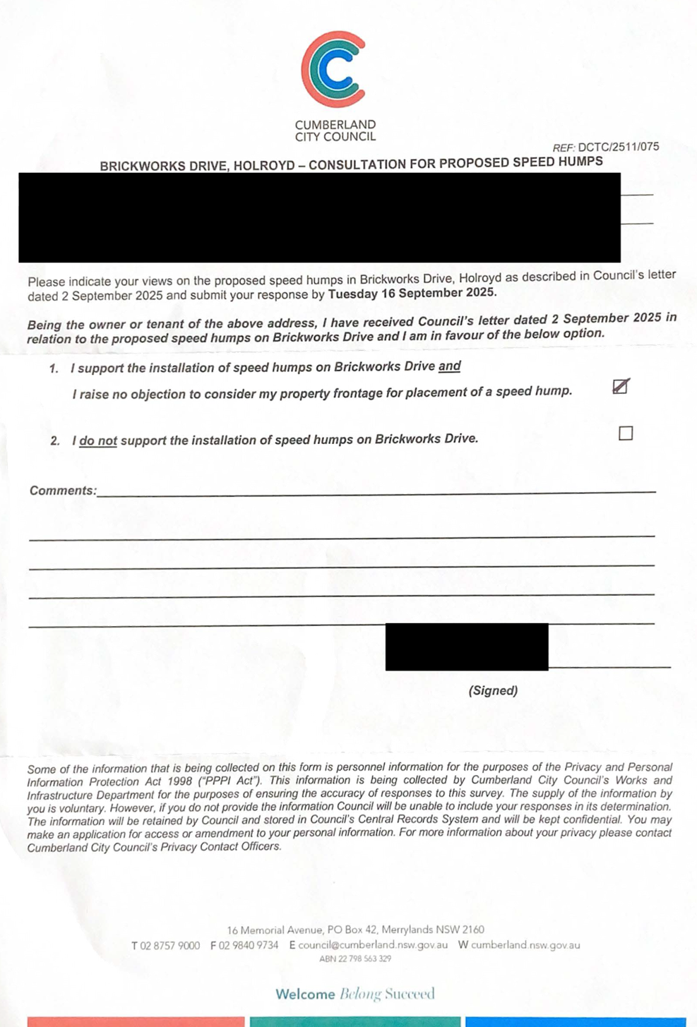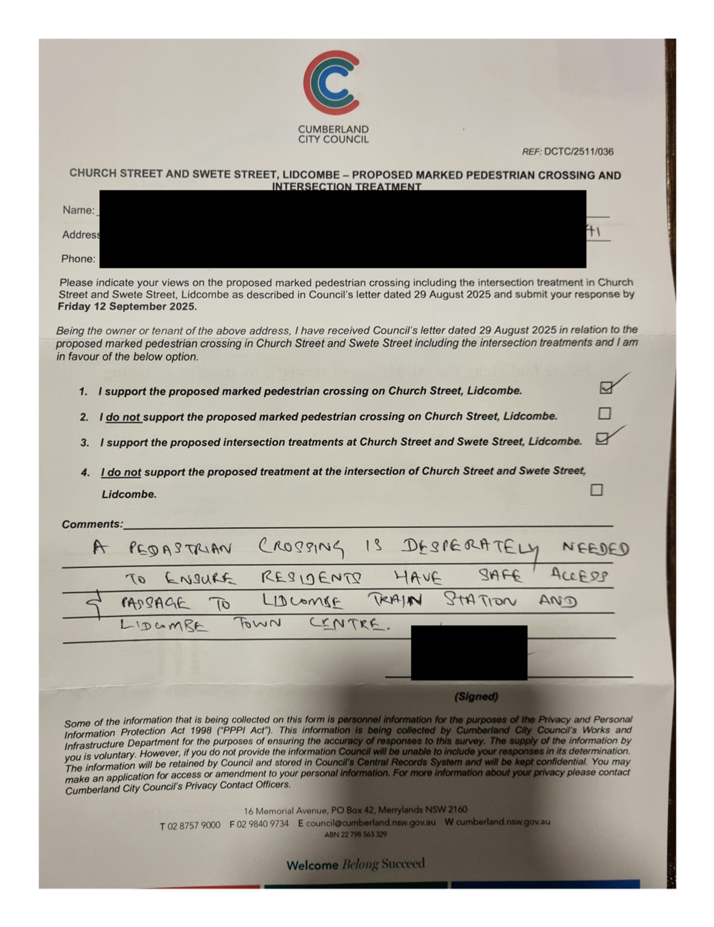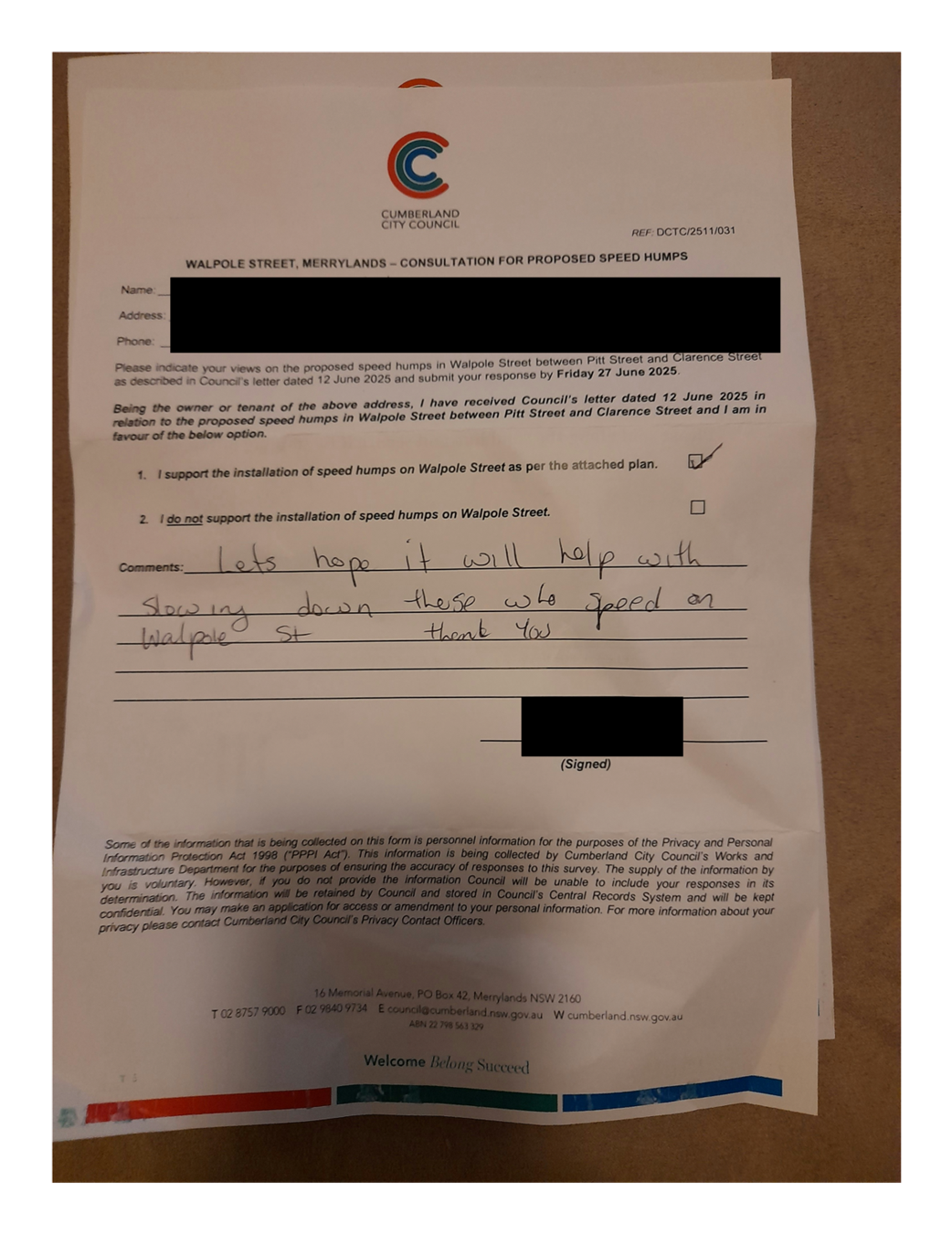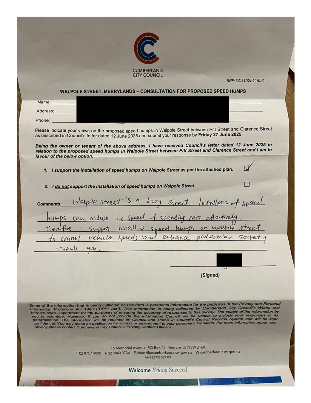 CLTF-25-205 HUNT STREET, GUILDFORD WEST - ROAD SAFETY CONCERNS – CONSULTATION RESULT