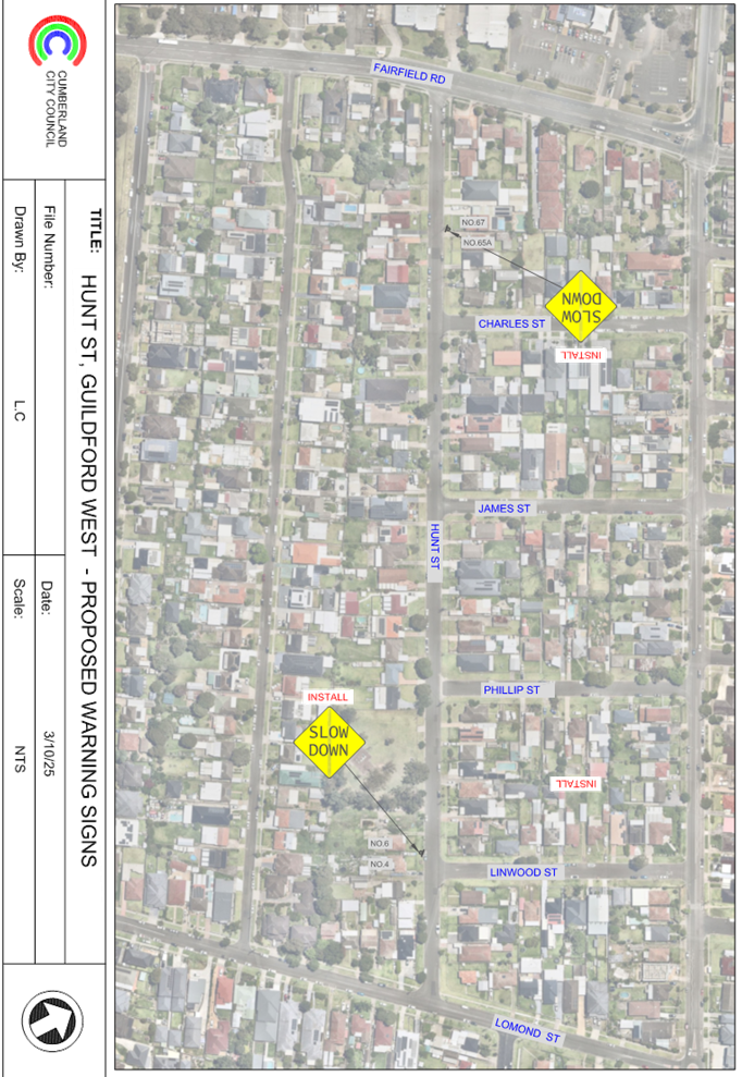 Attachment 3 Plan – Hunt Street, Guildford West– proposed warning signs............. 137