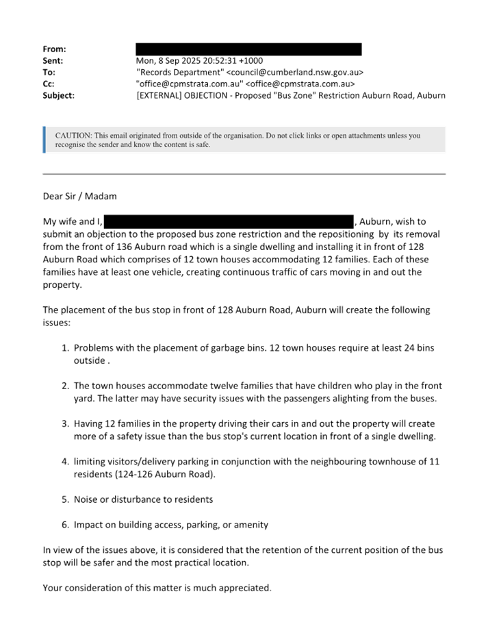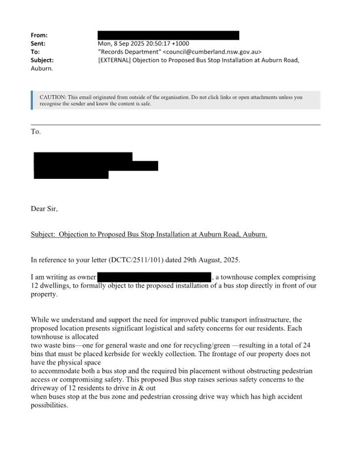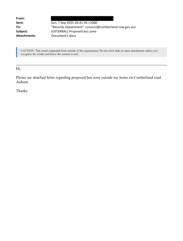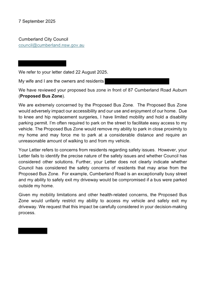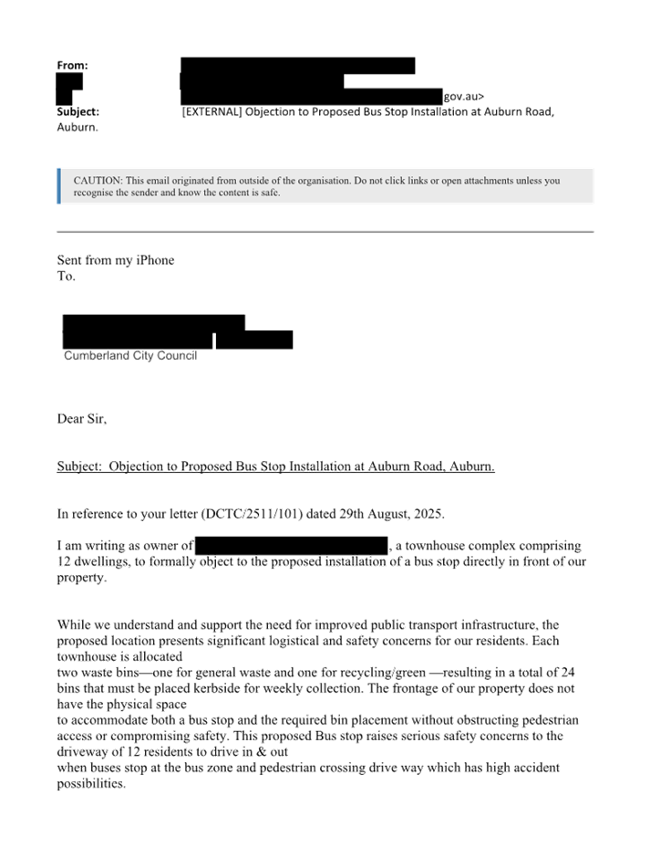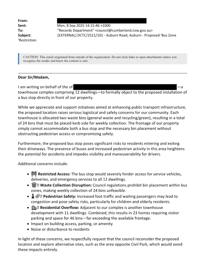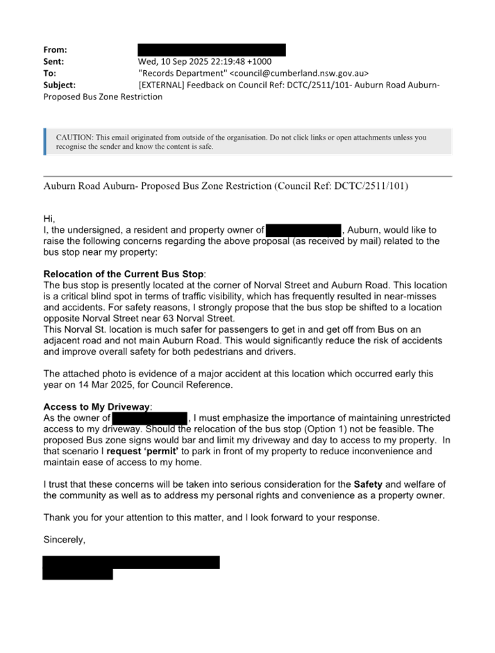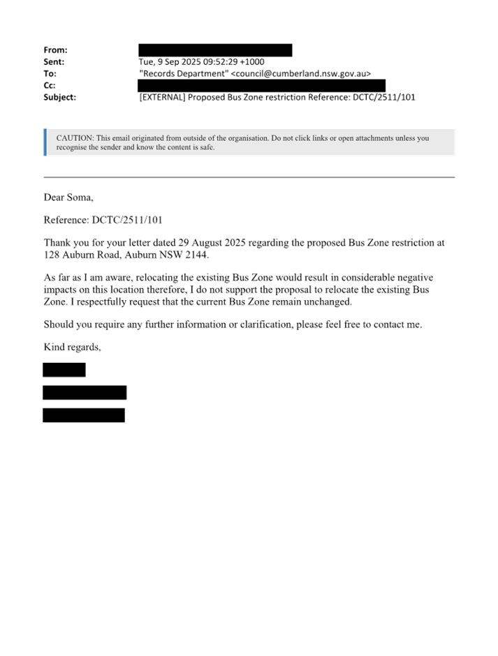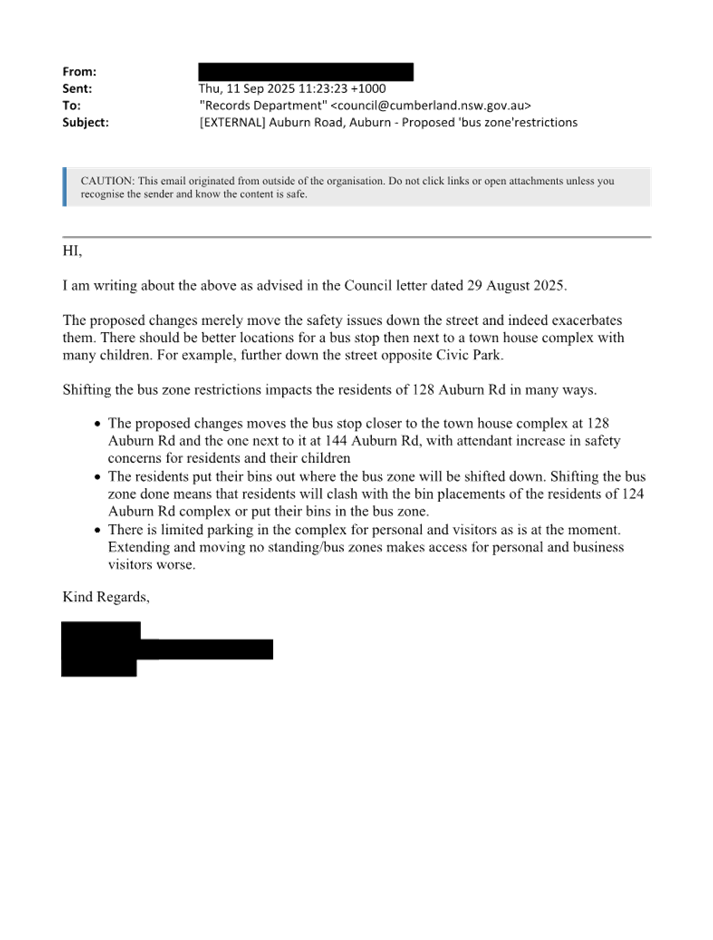 CLTF-25-206 AUBURN ROAD, AUBURN – PROPOSED ‘BUS ZONE’ SIGNAGE