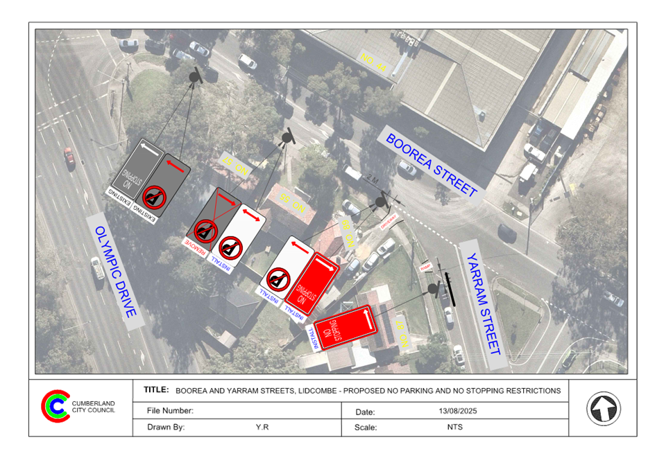 CLTF-25-207 BOOREA STREET AT YARRAM STREET, LIDCOMBE – PROPOSED ‘NO STOPPING’ AND 'NO PARKING' RESTRICTIONS