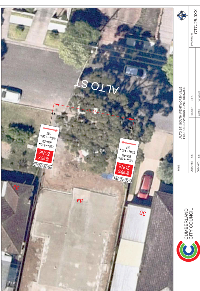 CLTF-25-208 ALTO STREET, SOUTH WENTWORTHVILLE – REQUEST FOR ‘WORKS ZONE’ SIGNAGE