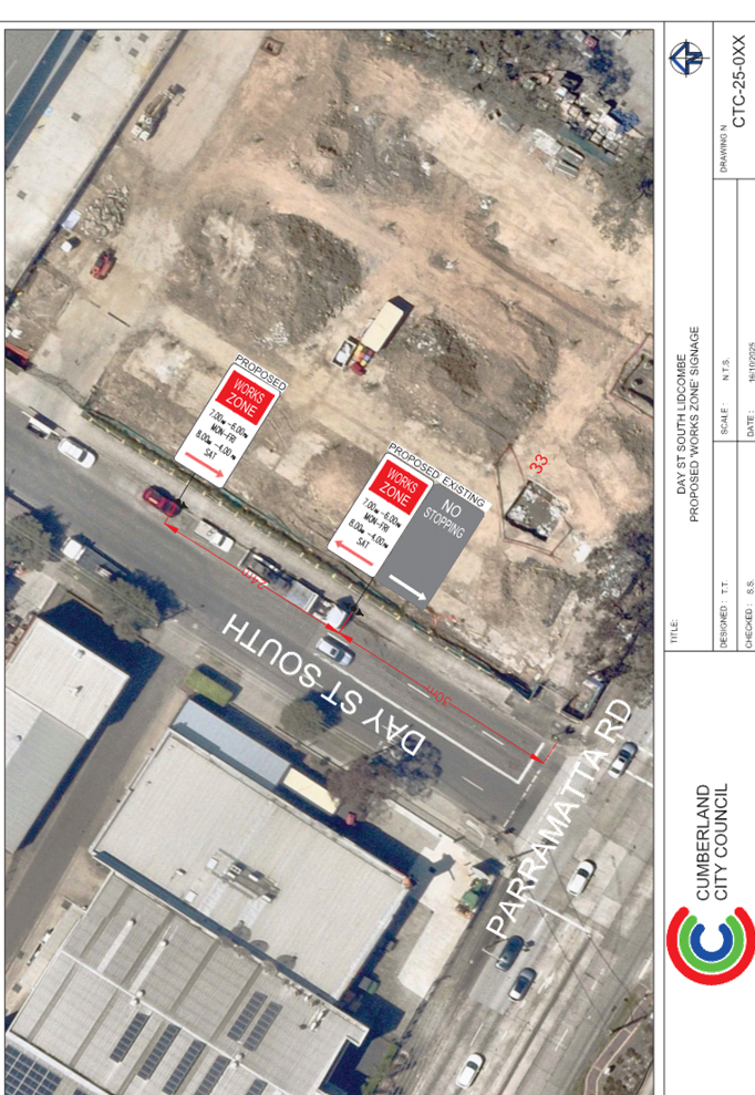 Plan – Day Street South, Lidcombe – Proposed Temporary ‘Works Zone’ signage
