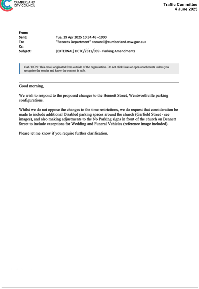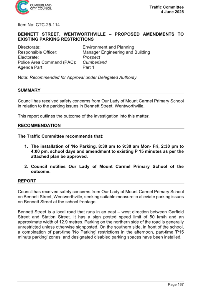 CLTF-25-211 BENNETT STREET, WENTWORTHVILLE – EXTENSION OF EXISTING PARKING RESTRICTIONS