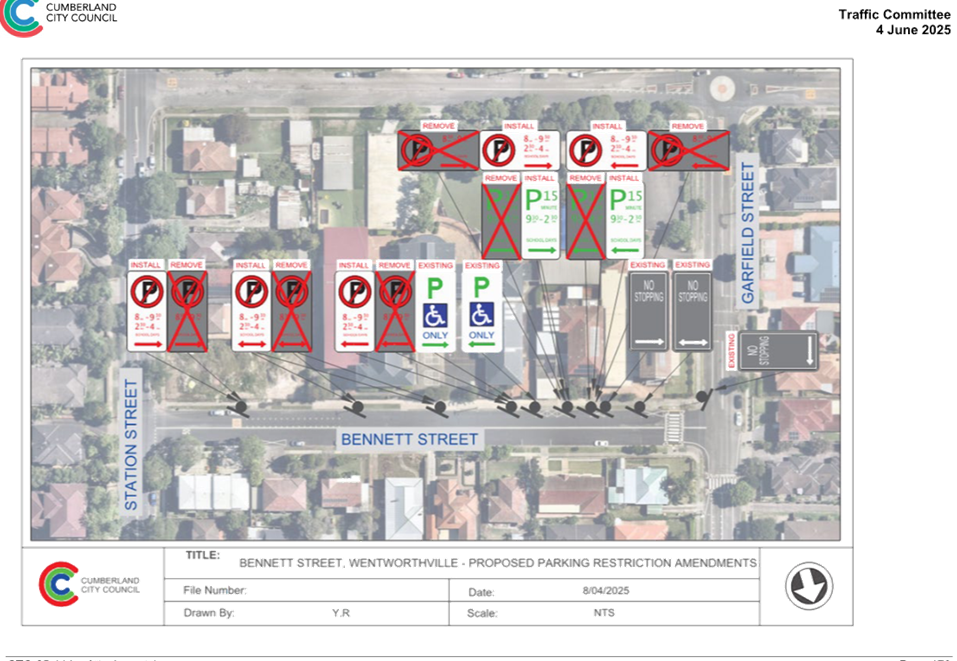 Plan – Bennett Street, Wentworthville – Proposed Parking Restrictions
